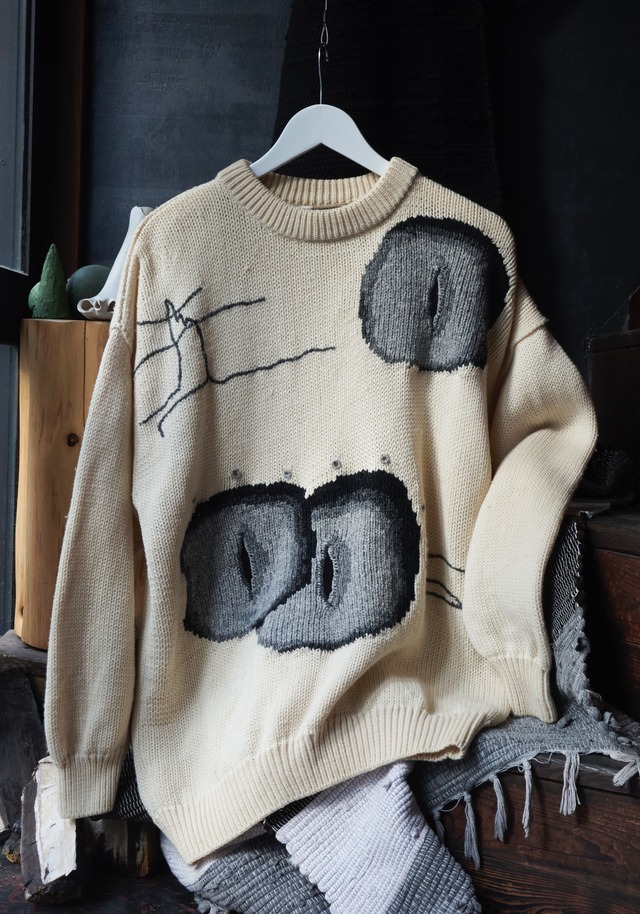 起業家としてのファッションに功績を残したウンベルト・ジノッキエッティ。 ジョルジオ・アルマーニ、ヴァレンティノ、イヴ・サンローラン、クリスチャン・ディオールなど様々なハイブランドと70年代から80年代にかけて製造やデザインで関係性を持ってきました。 そんなブランドの服は素材に特化されているアイテムが多く、本国イタリアから派遣されましたこちらのニットはあまり見た事ないアートパターン。 実寸:平置き 総丈 74cm 肩幅 60cm 身幅 60cm 袖丈 55cm 裄丈 85cm ブランド: Umberto Ginocchietti カラー:クリーム 生産国:イタリア 素材:ウール100% ※バック部分右下に1cm程汚れがございます。 洗濯は行っております。 画像最後2枚をご確認、ご了承の上ご購入くださいませ。 プライスは通常の金額より少しお安めに設定しています。