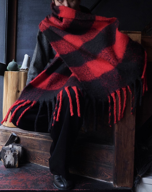 実寸:平置き 全長 128cm 横幅 31cm ブランド:vintage euro カラー:チェック 生産国:euro 素材:モヘヤ100%