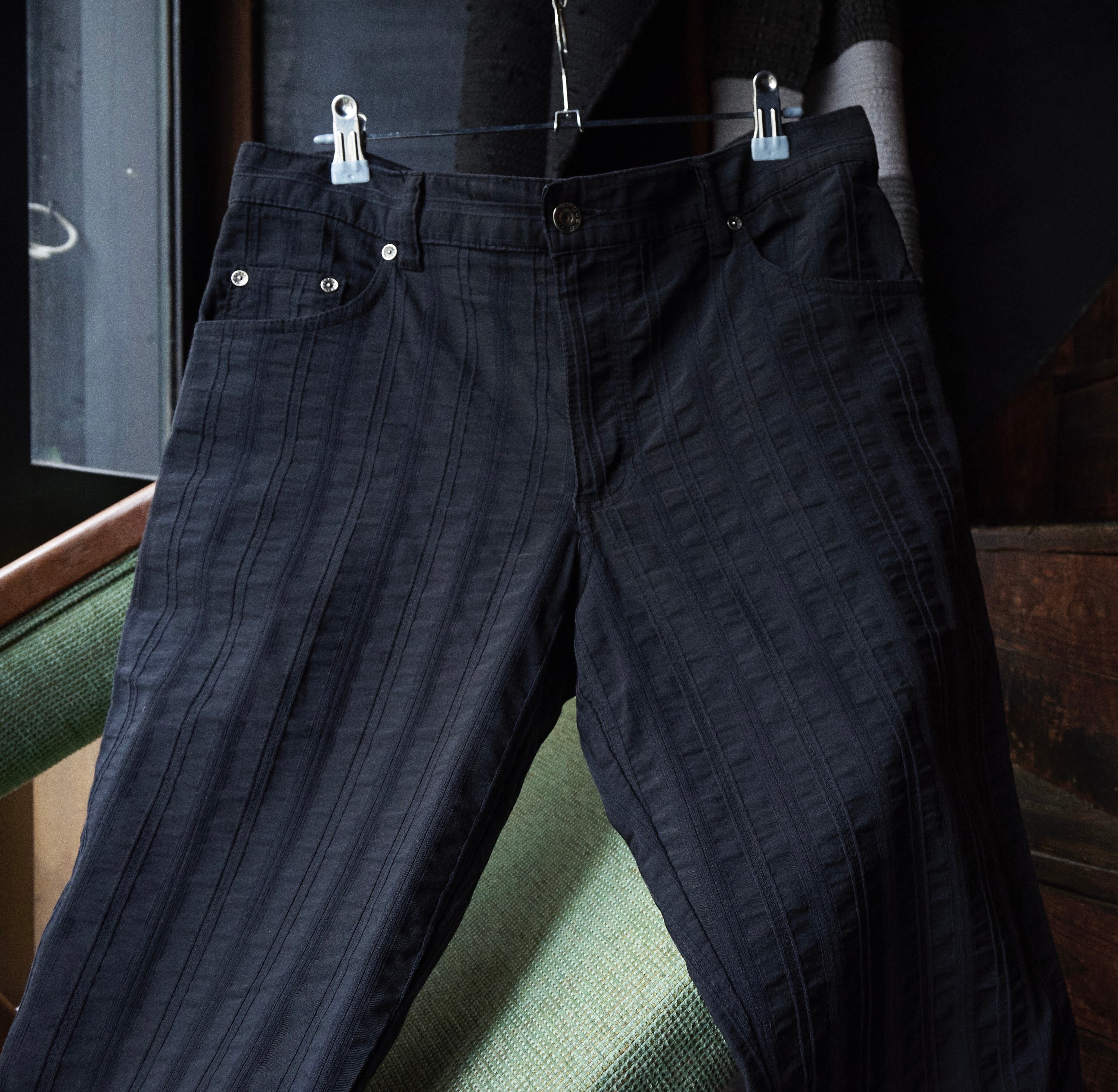 2000s euro textured cotton rayon fabric black straight pants
