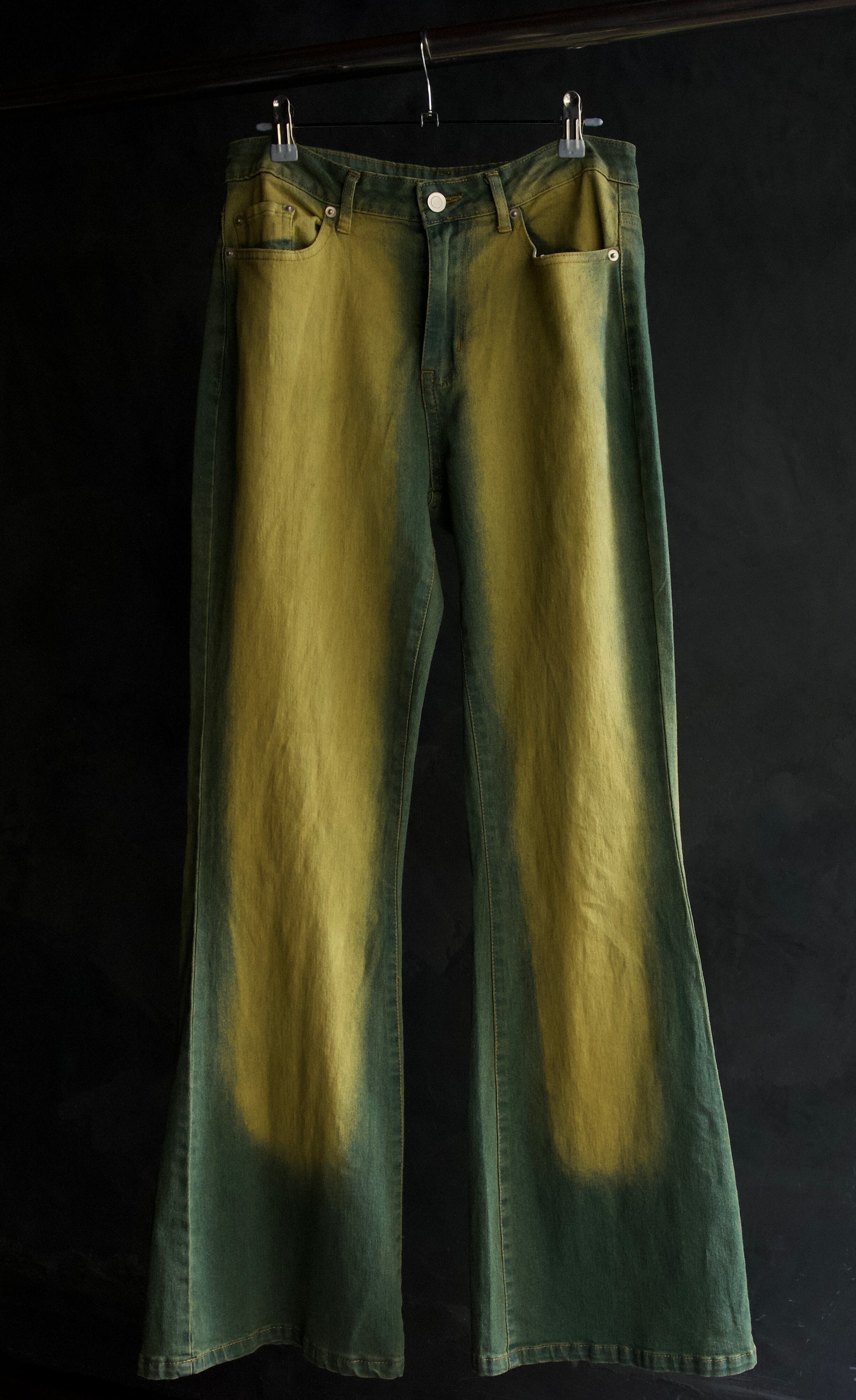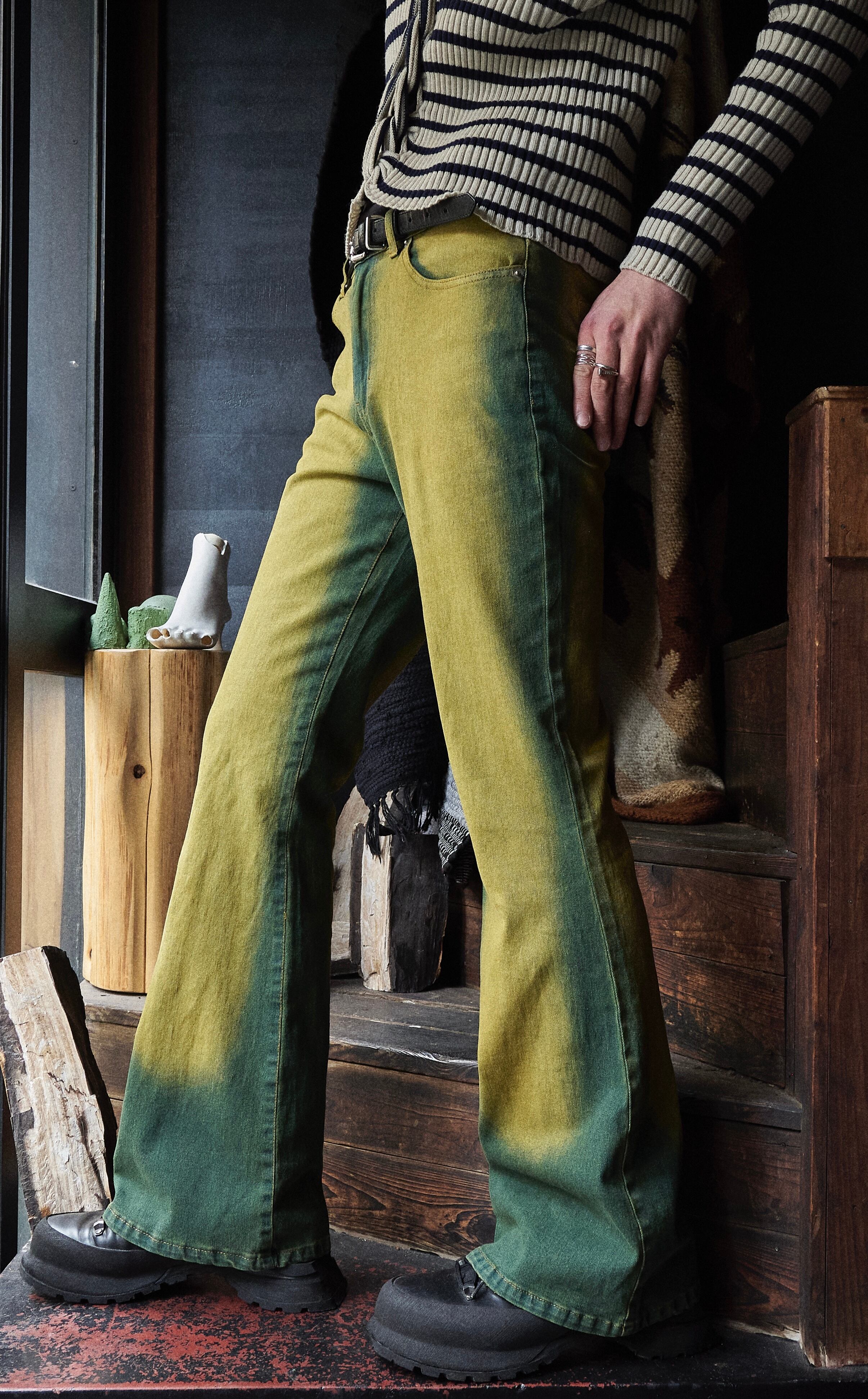 US Mustard x Blue Fade Gradient Flare Denim