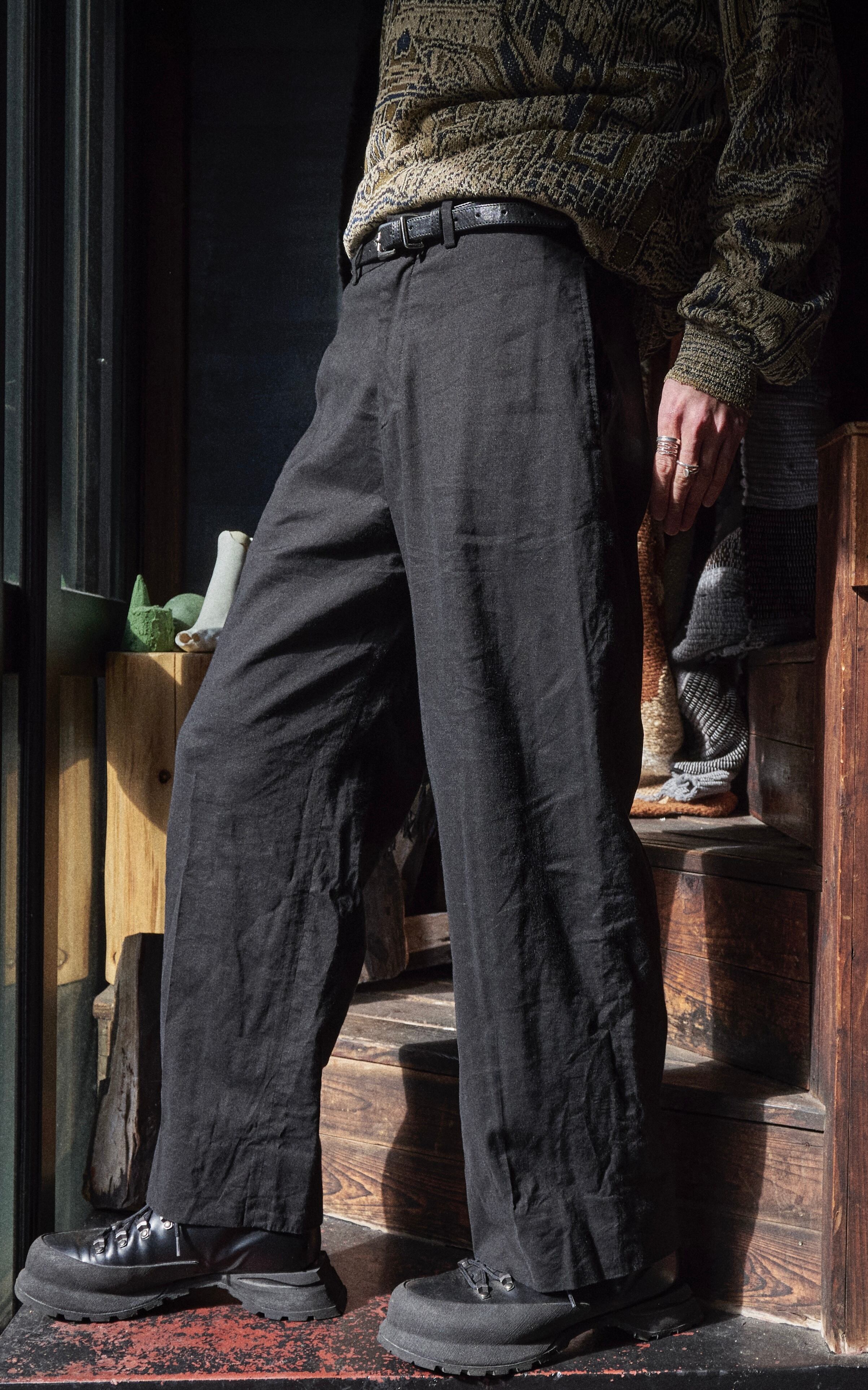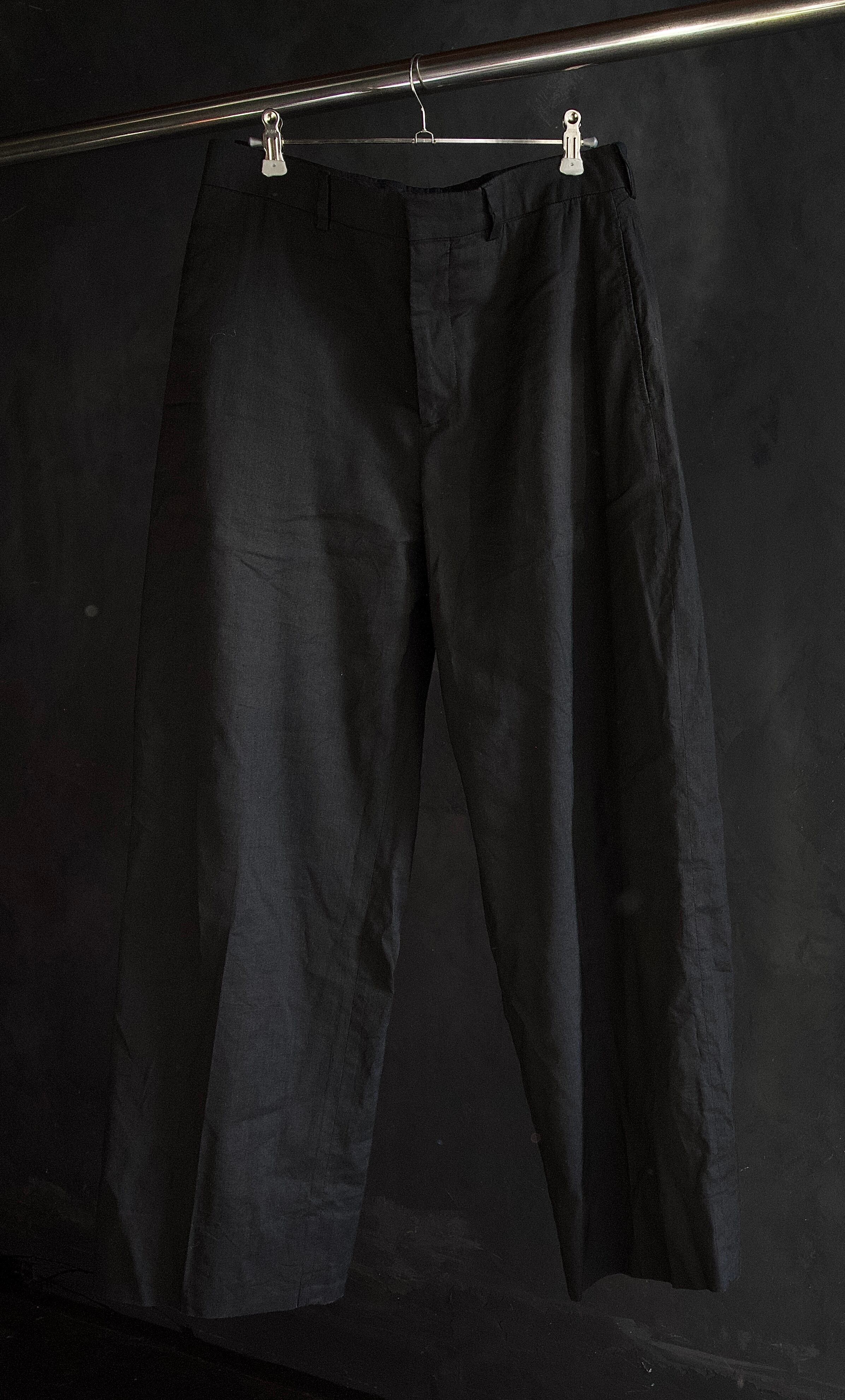 HERMES Linen×Wool×Rayon fabric Black no pleat straight slacks