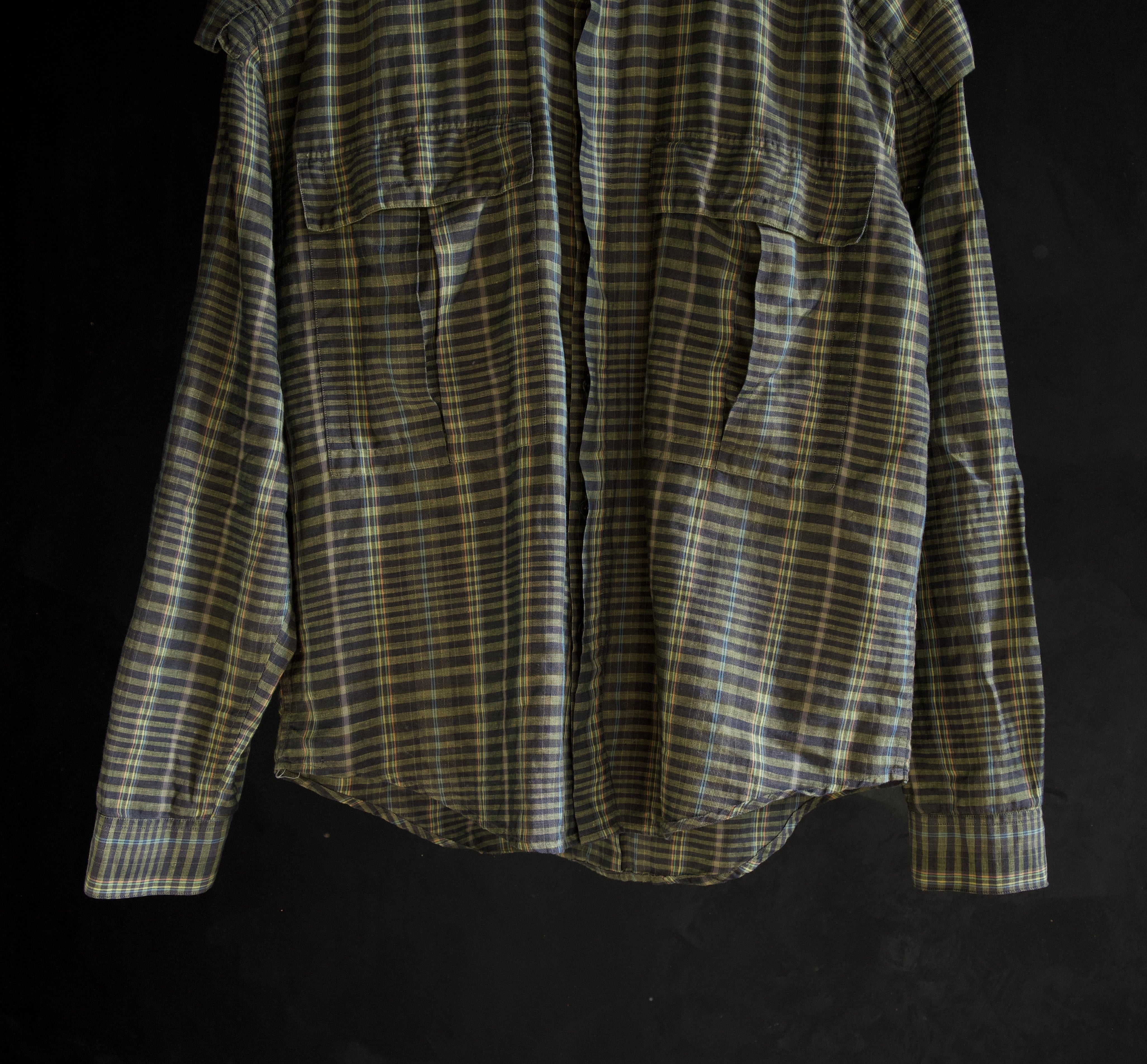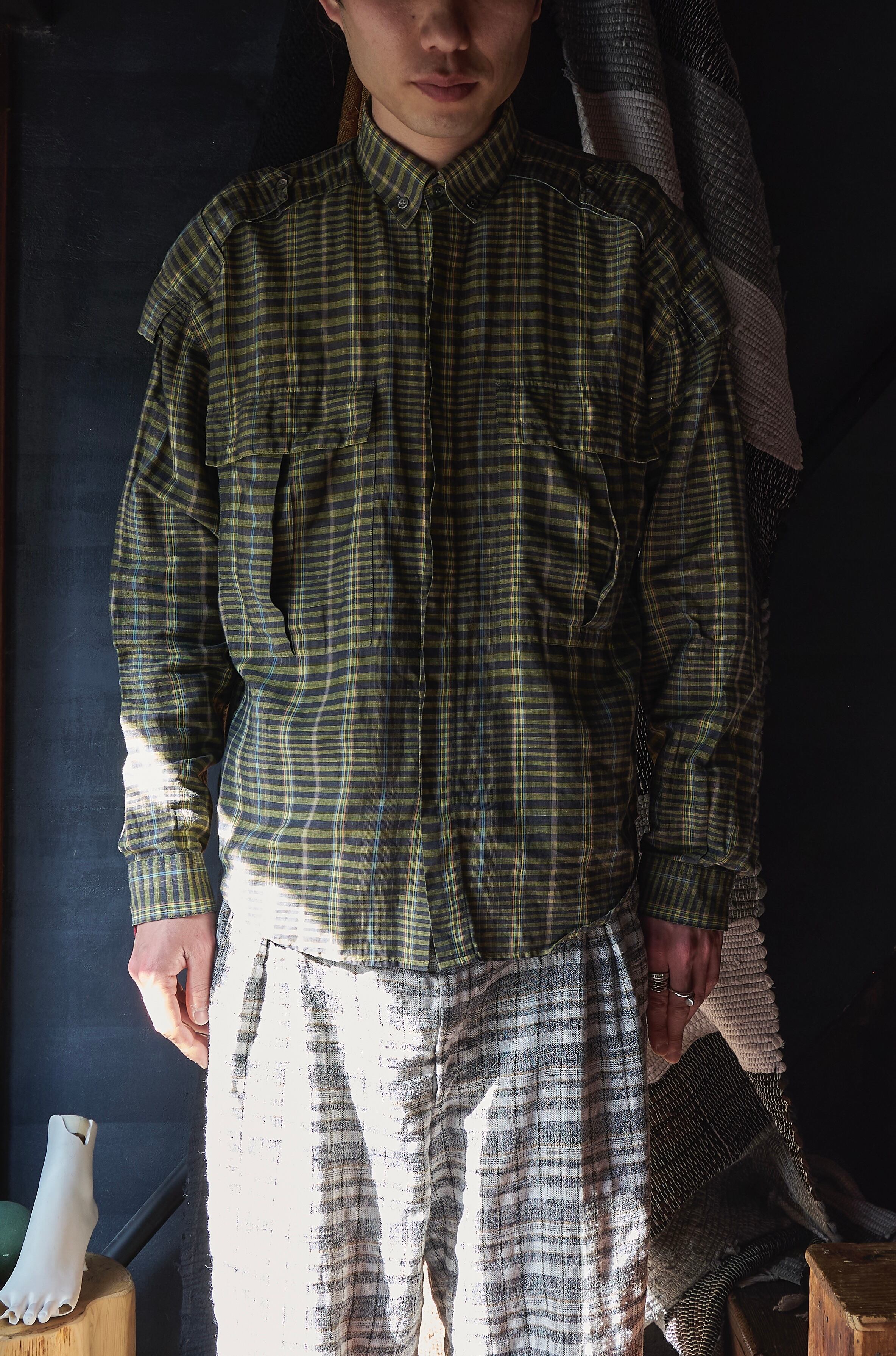 80s PAL ZILERI Inverted pleated pocket epo red pattern linen x cotton shirt