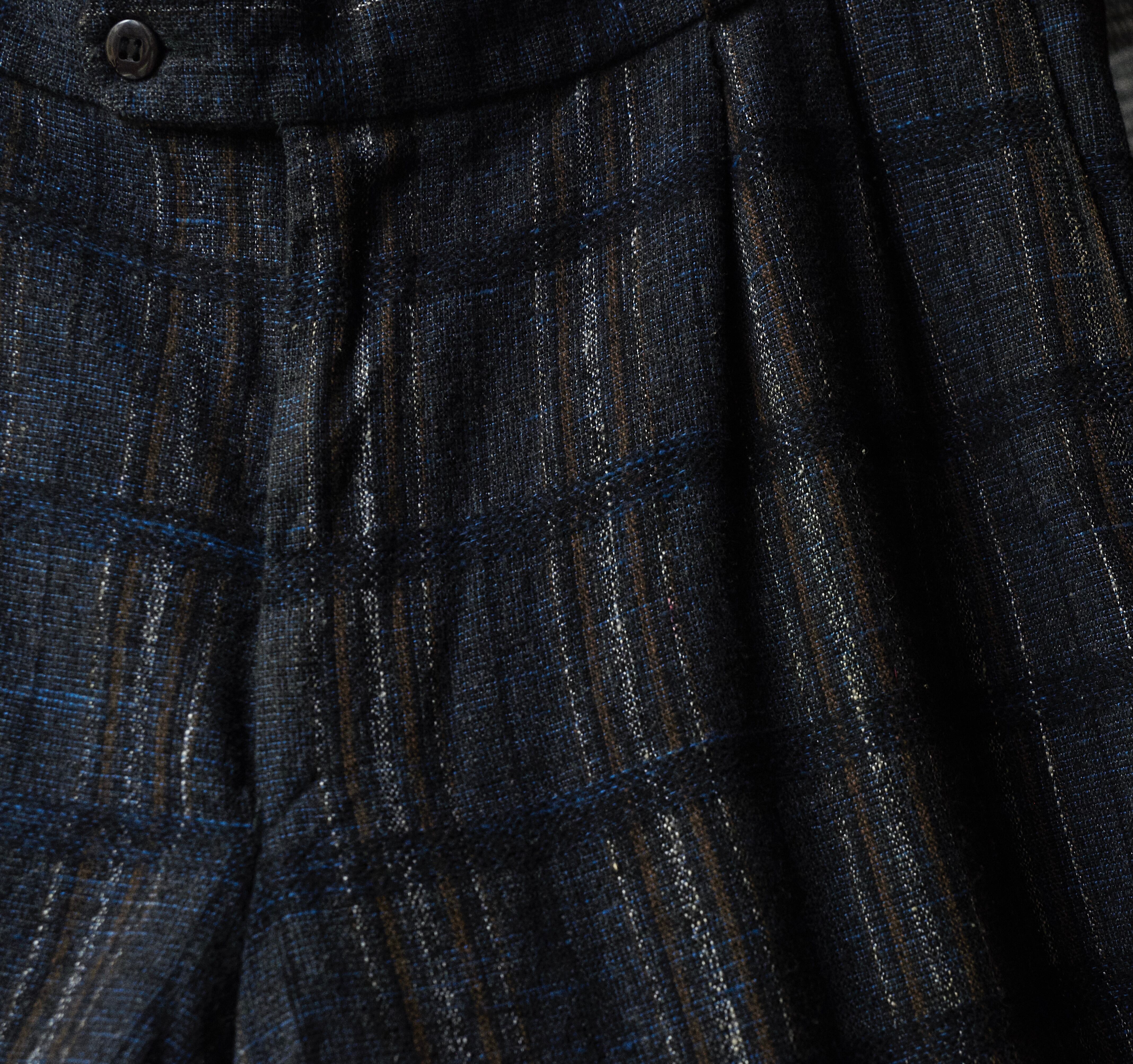 80s euro Woven fabric blue base check slacks