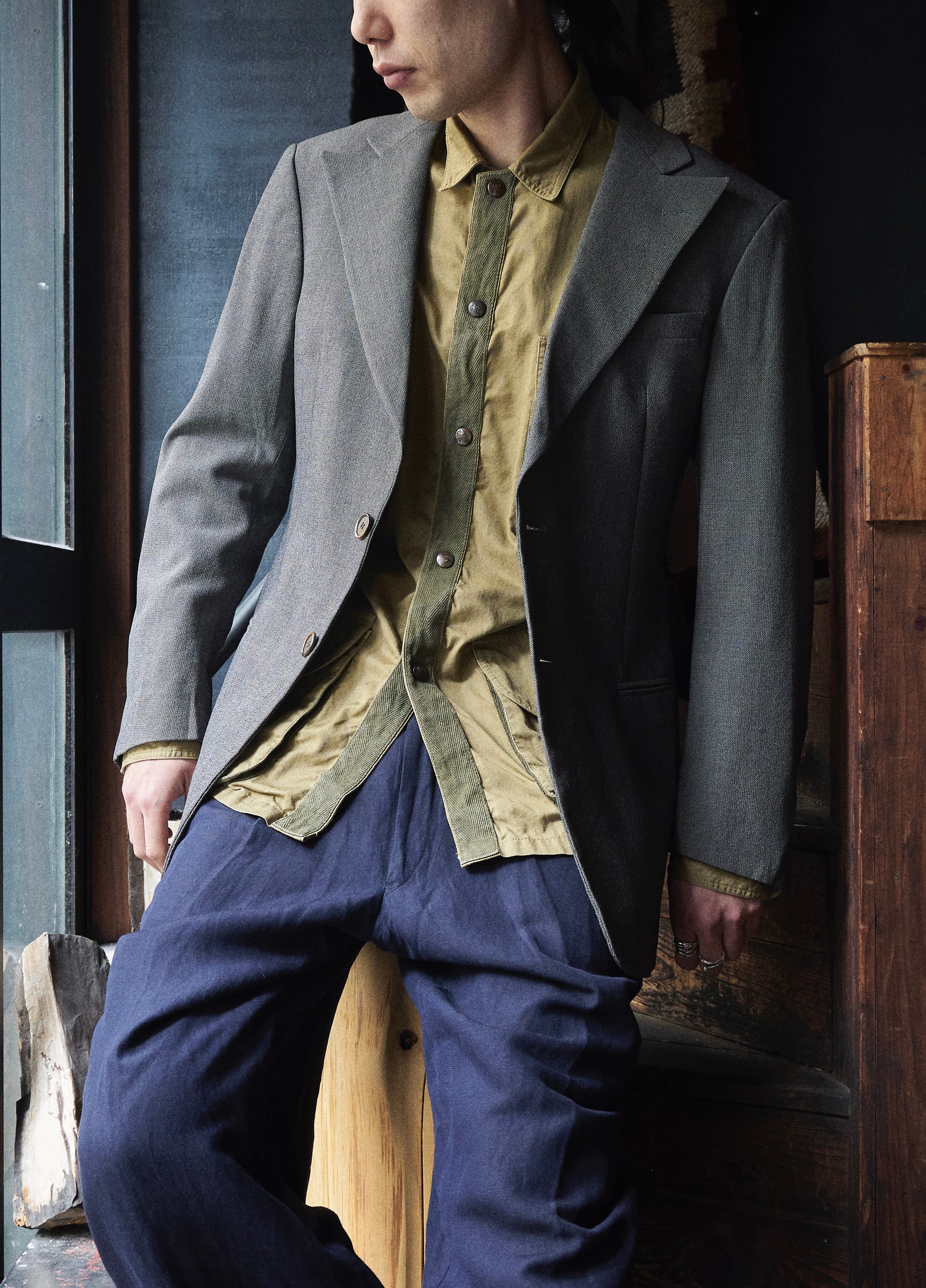 EMPORIO ARMANI Single Breasted Big Lapel Wool Gabardine Tailored Jacket