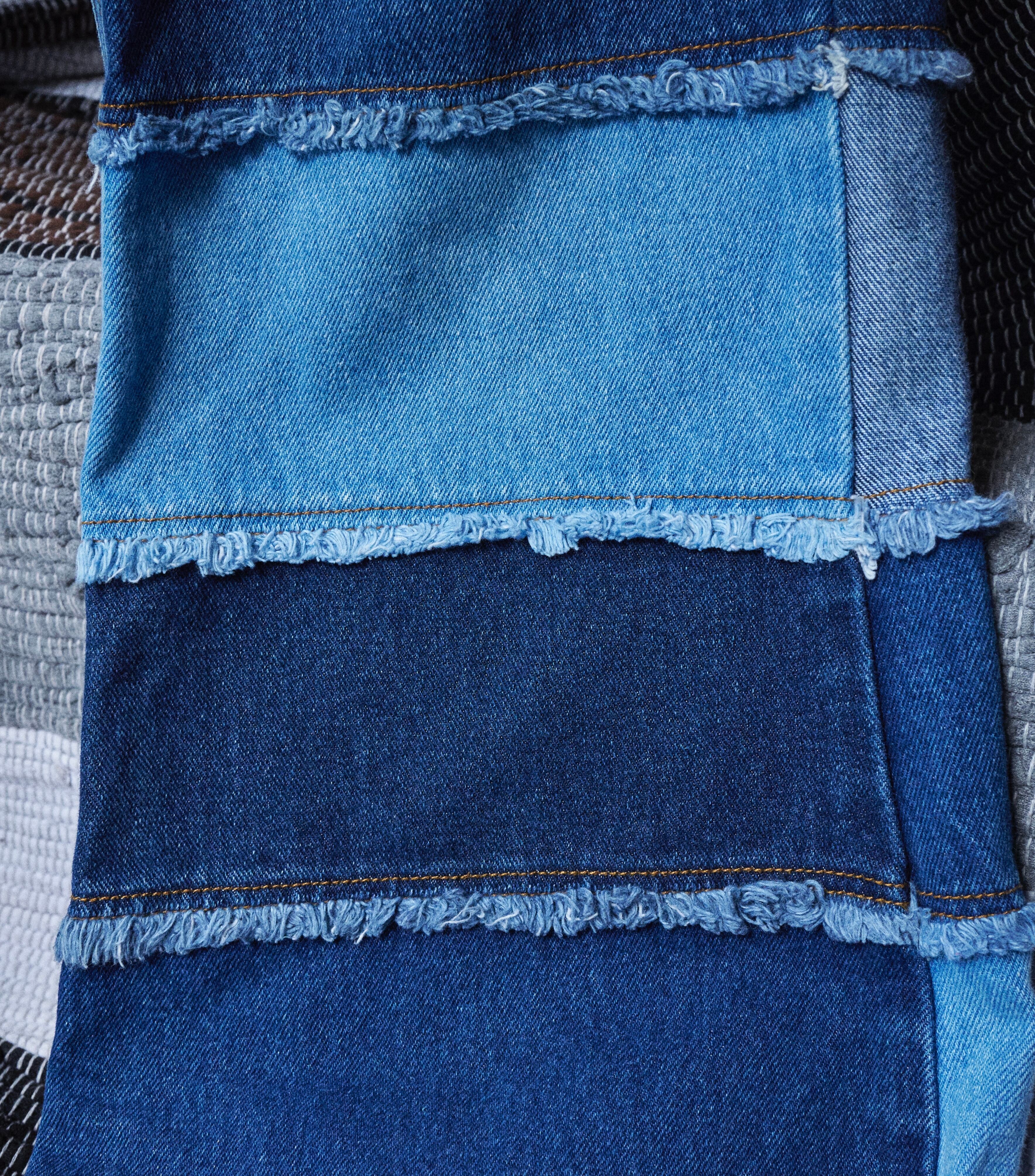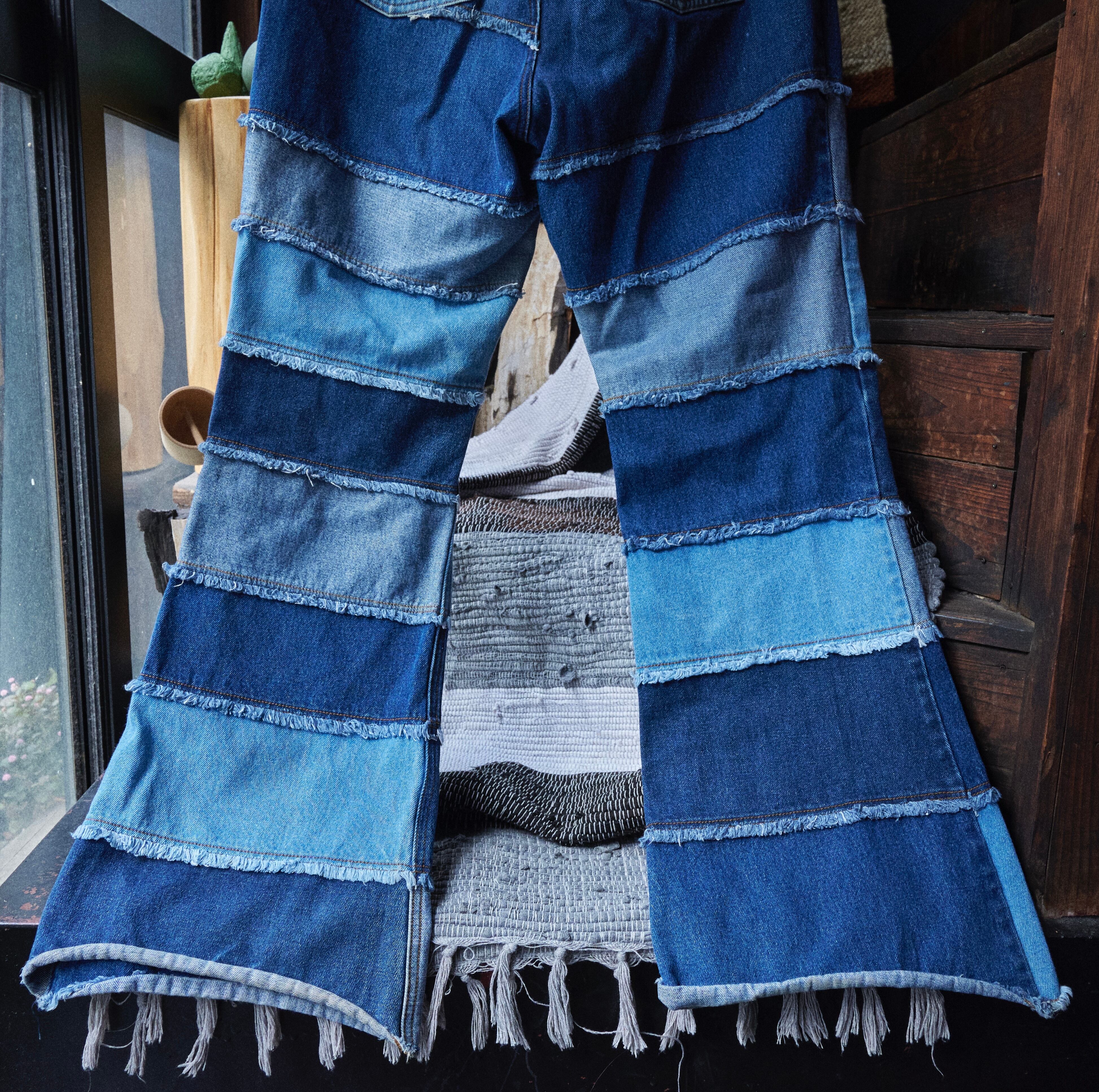 US 2000s Denim vertical patchwork flare pants
