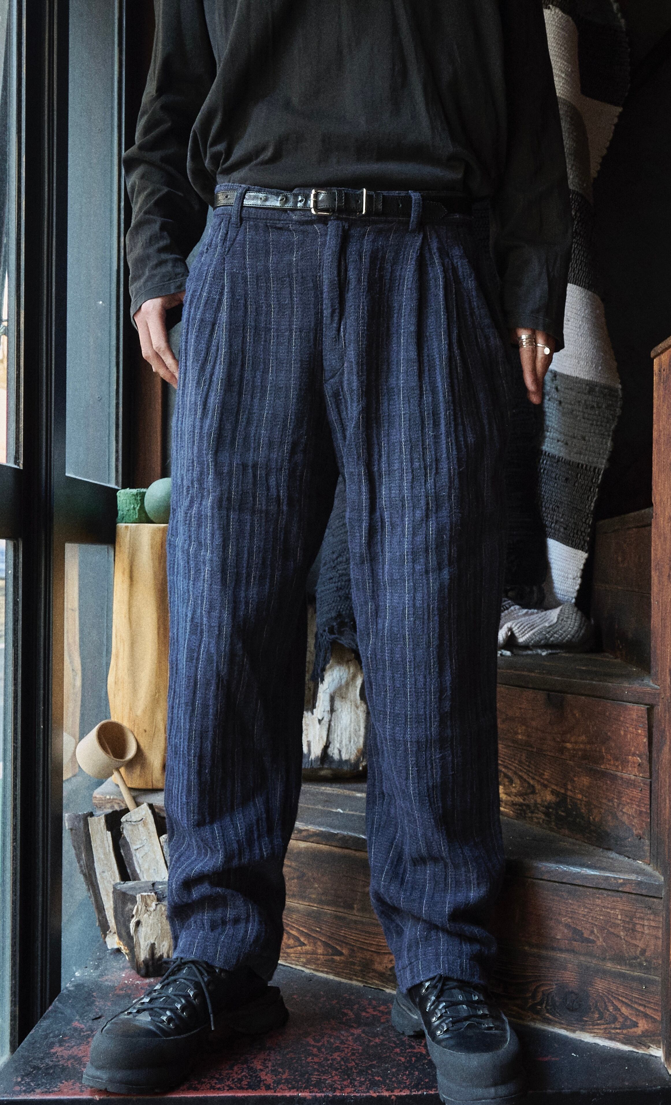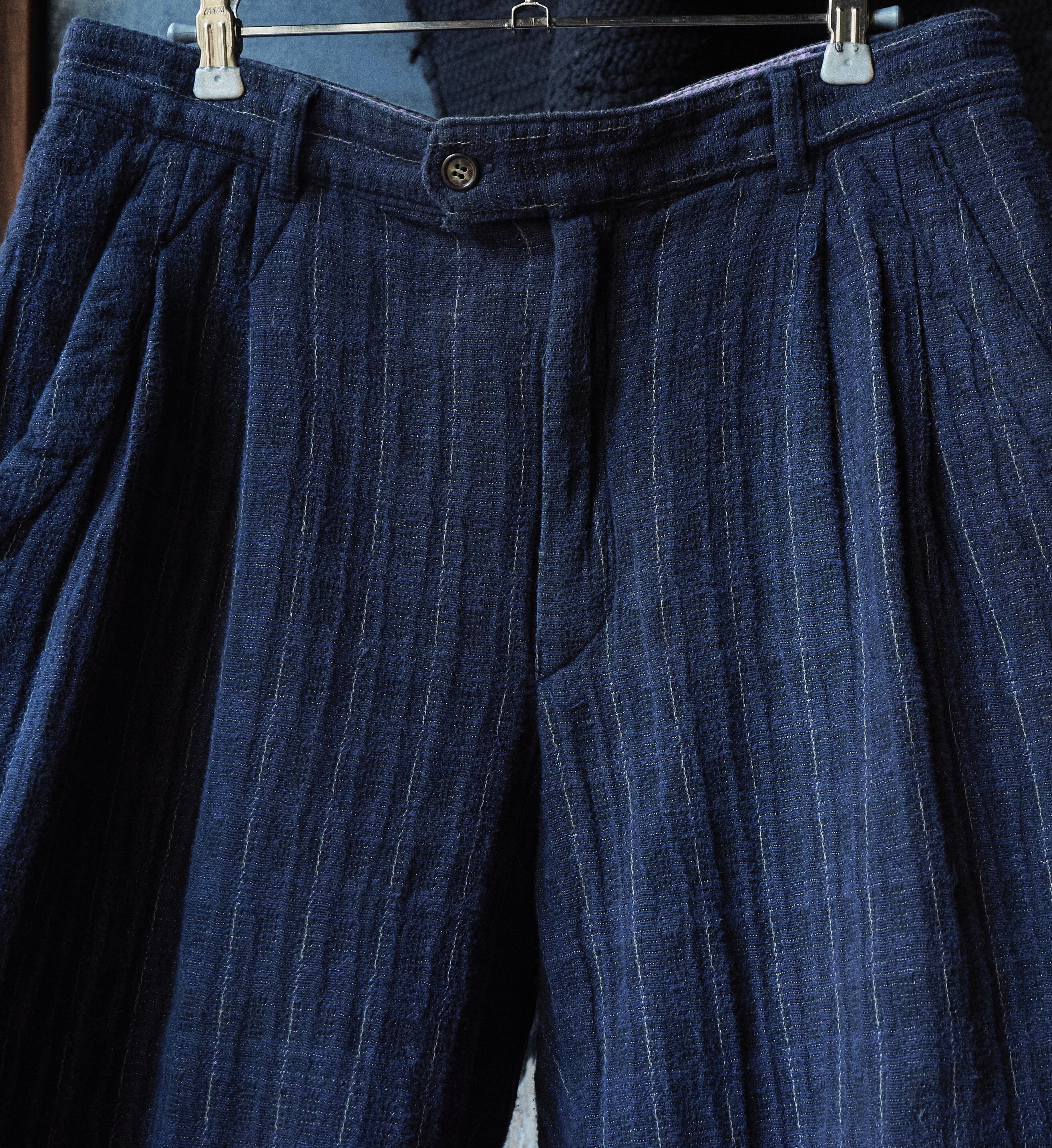 80s euro Navy woven cotton×rayon fabric slacks