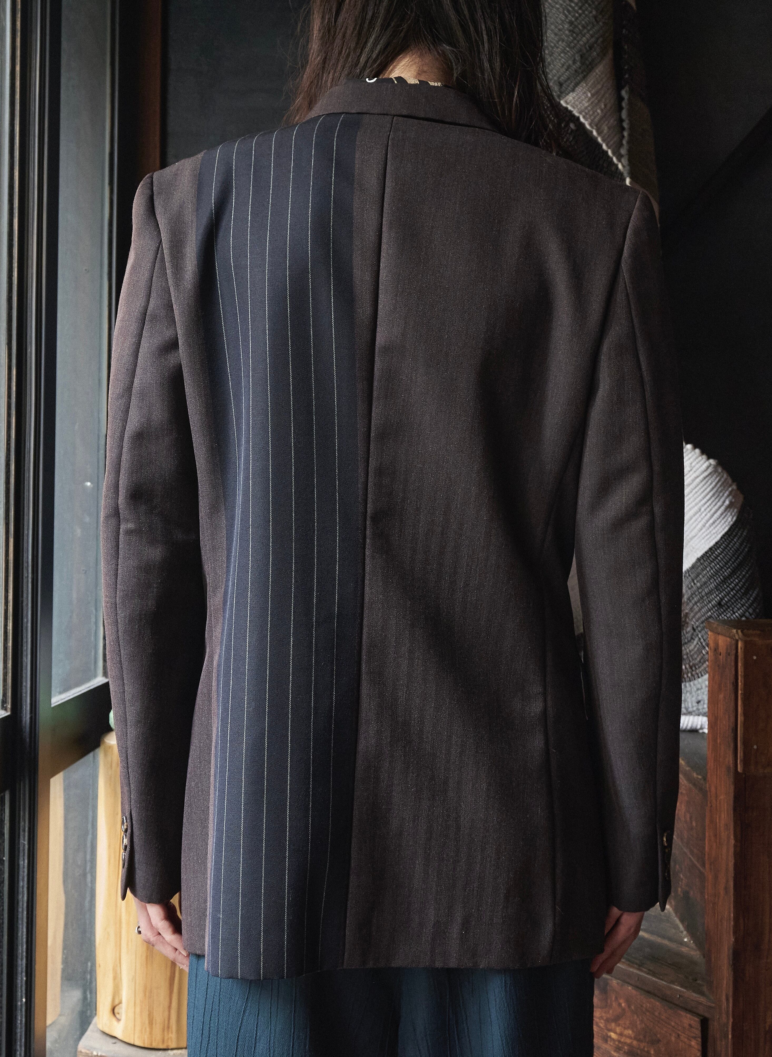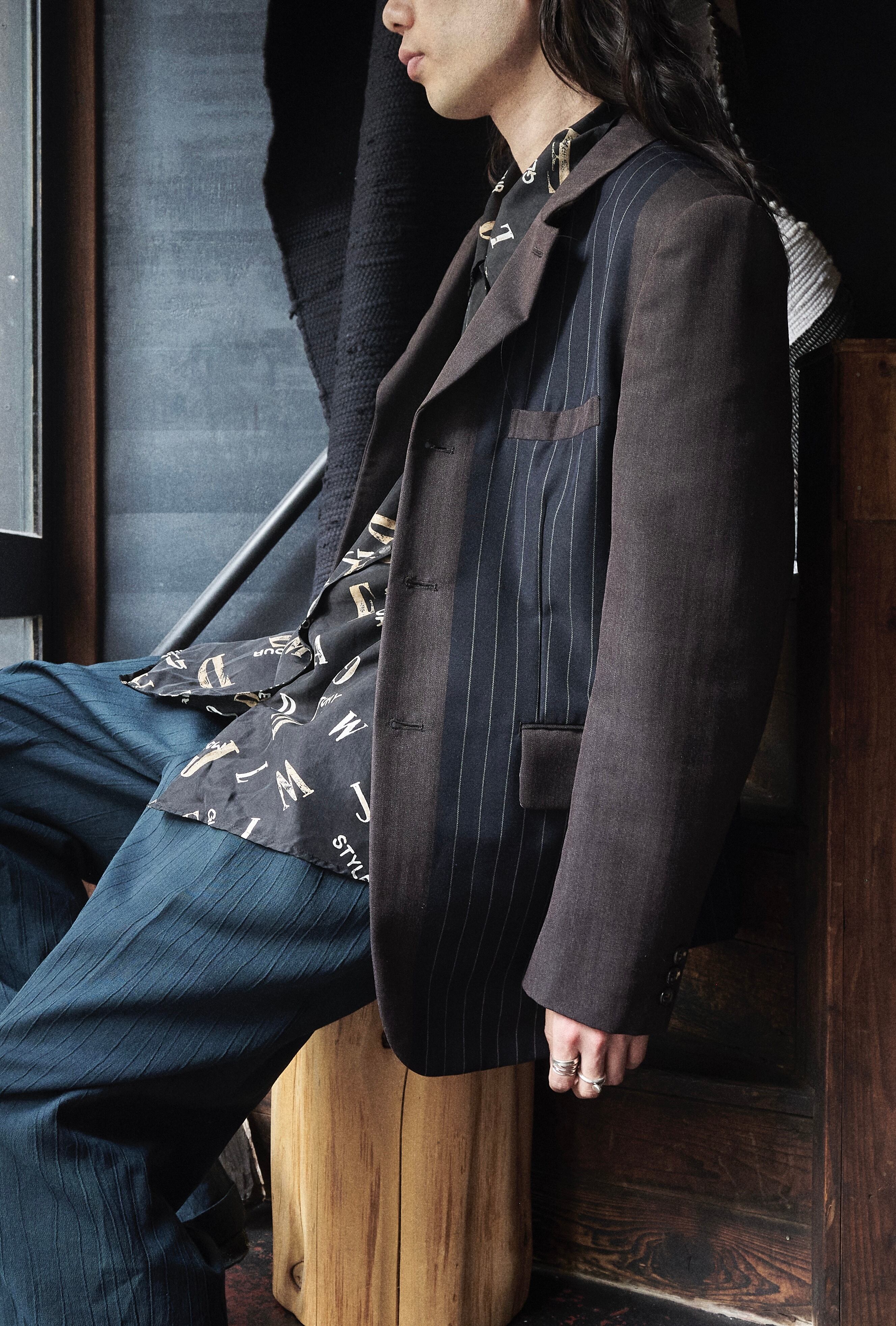 Comme des Garçons Homme Plus 2001's Wool mohair herringbone x stripe patchwork tailored jacket