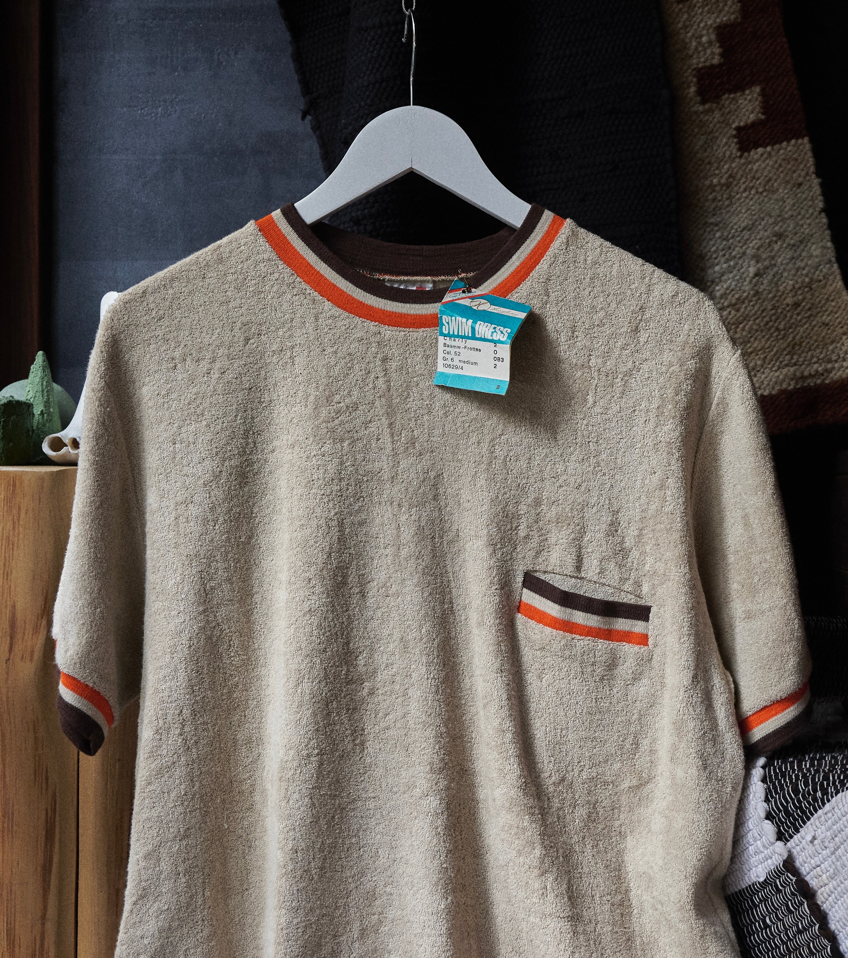 80s West Germany deadstock pile fabric neck striped T-shirt