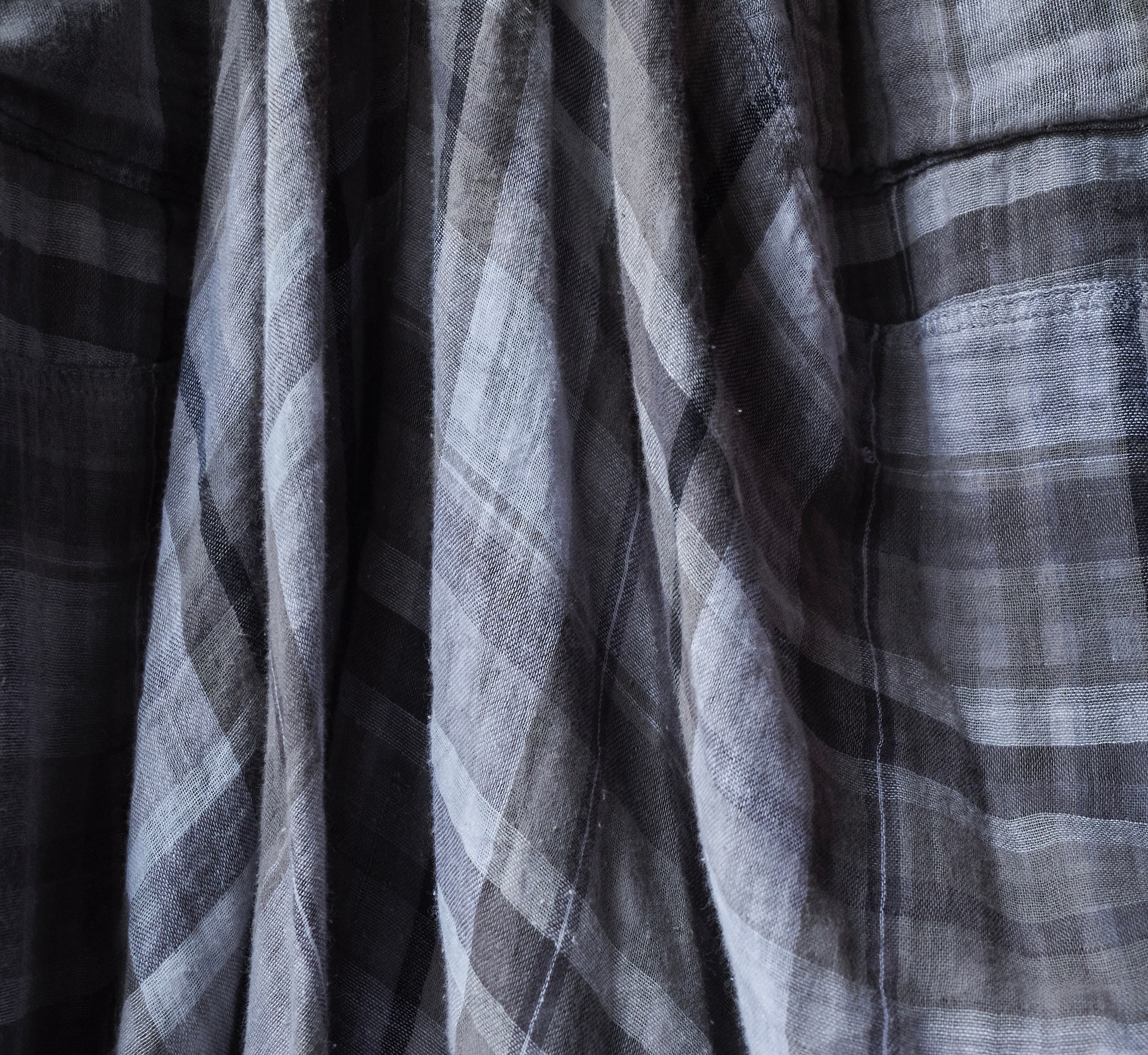 2000s euro Check Wide, irregular skirt that resembles thick gauze cotton pants