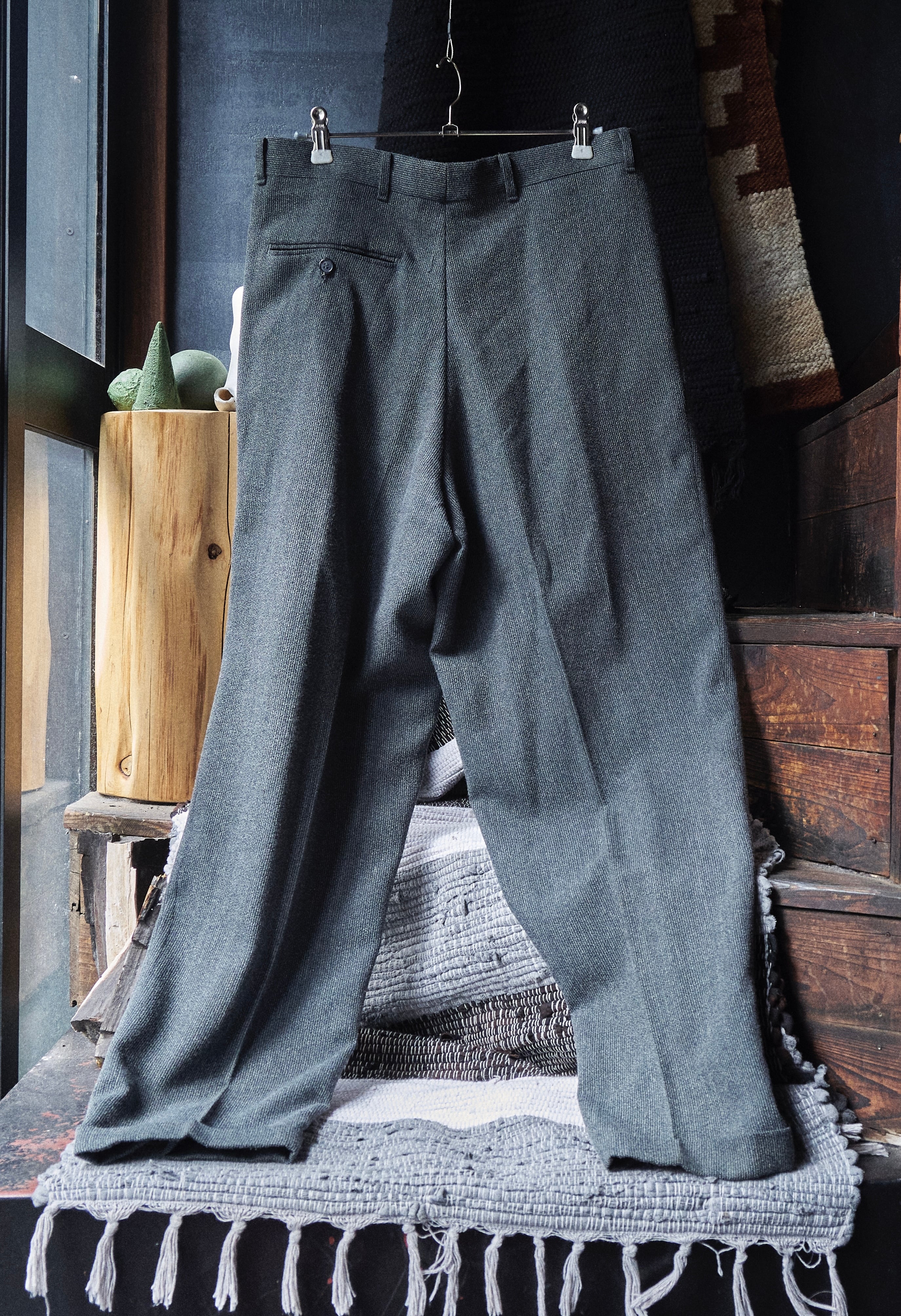 US 2000s Sesame-colored polyester x rayon wide slacks