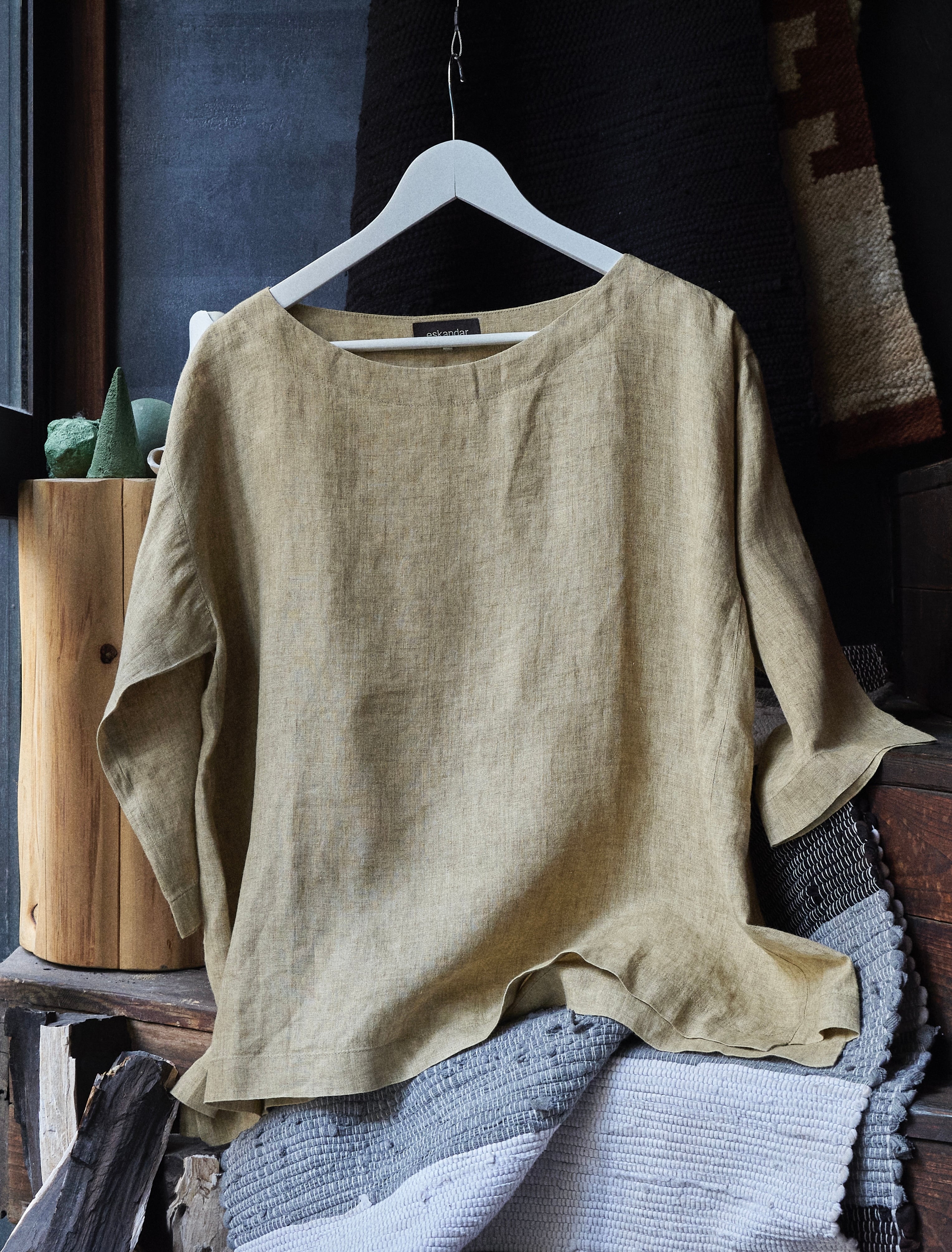 eskandar Wide pattern half sleeve linen pullover