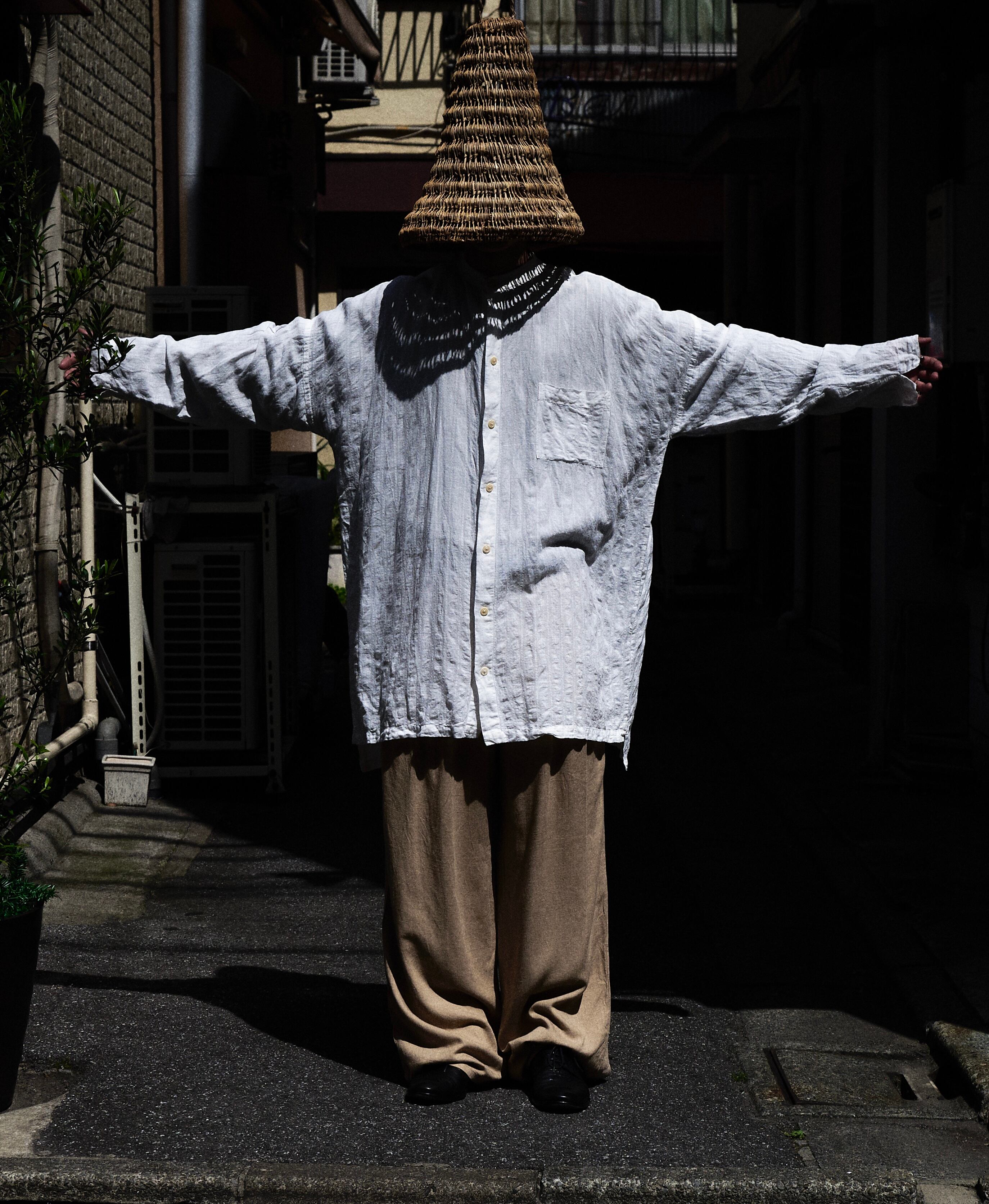 SHIRIN GUILD Linen x cotton super wide kaftan shirt Made in England