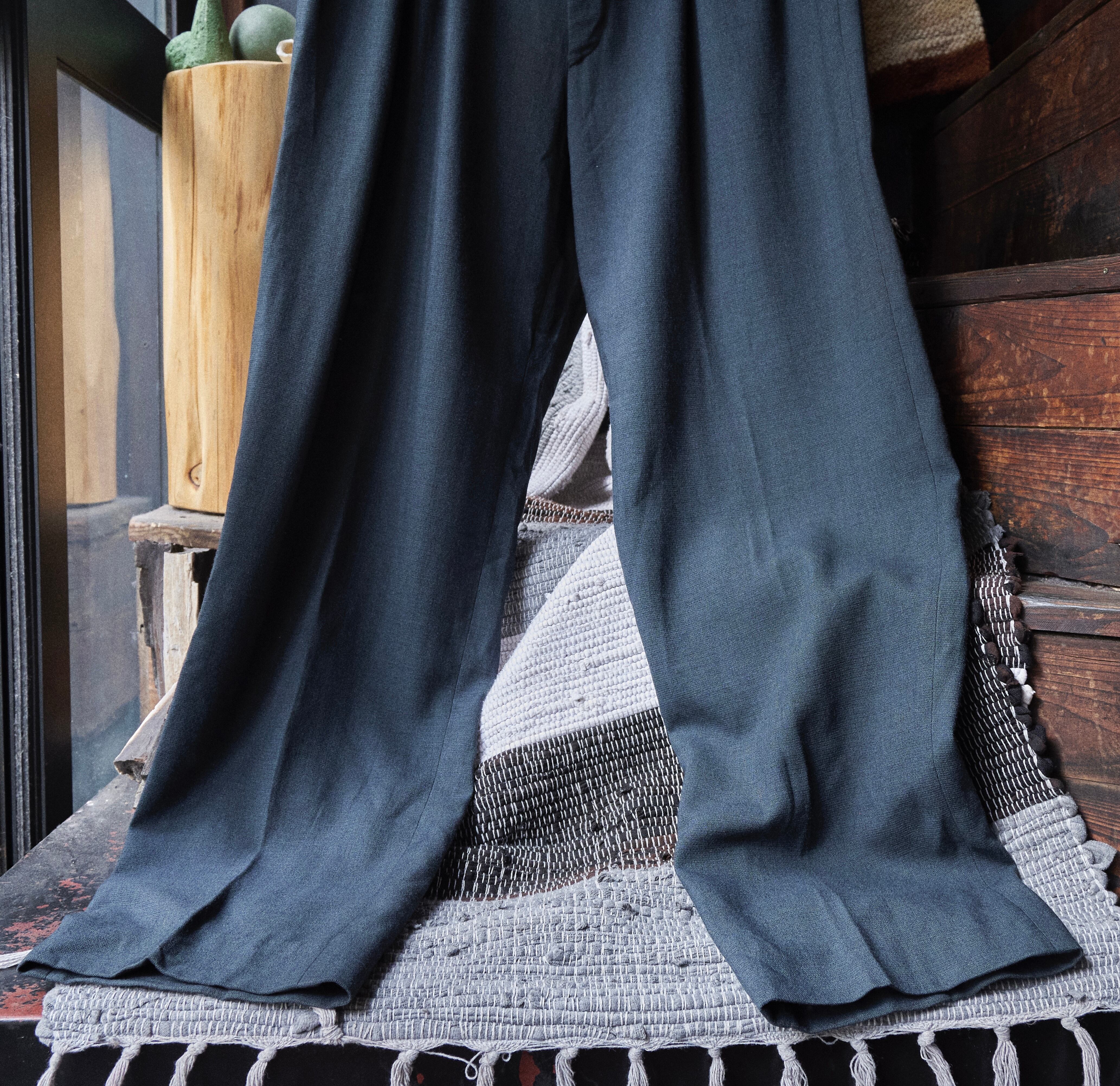 80s ITALY Wool × rayon fabric tarnished green wide slacks