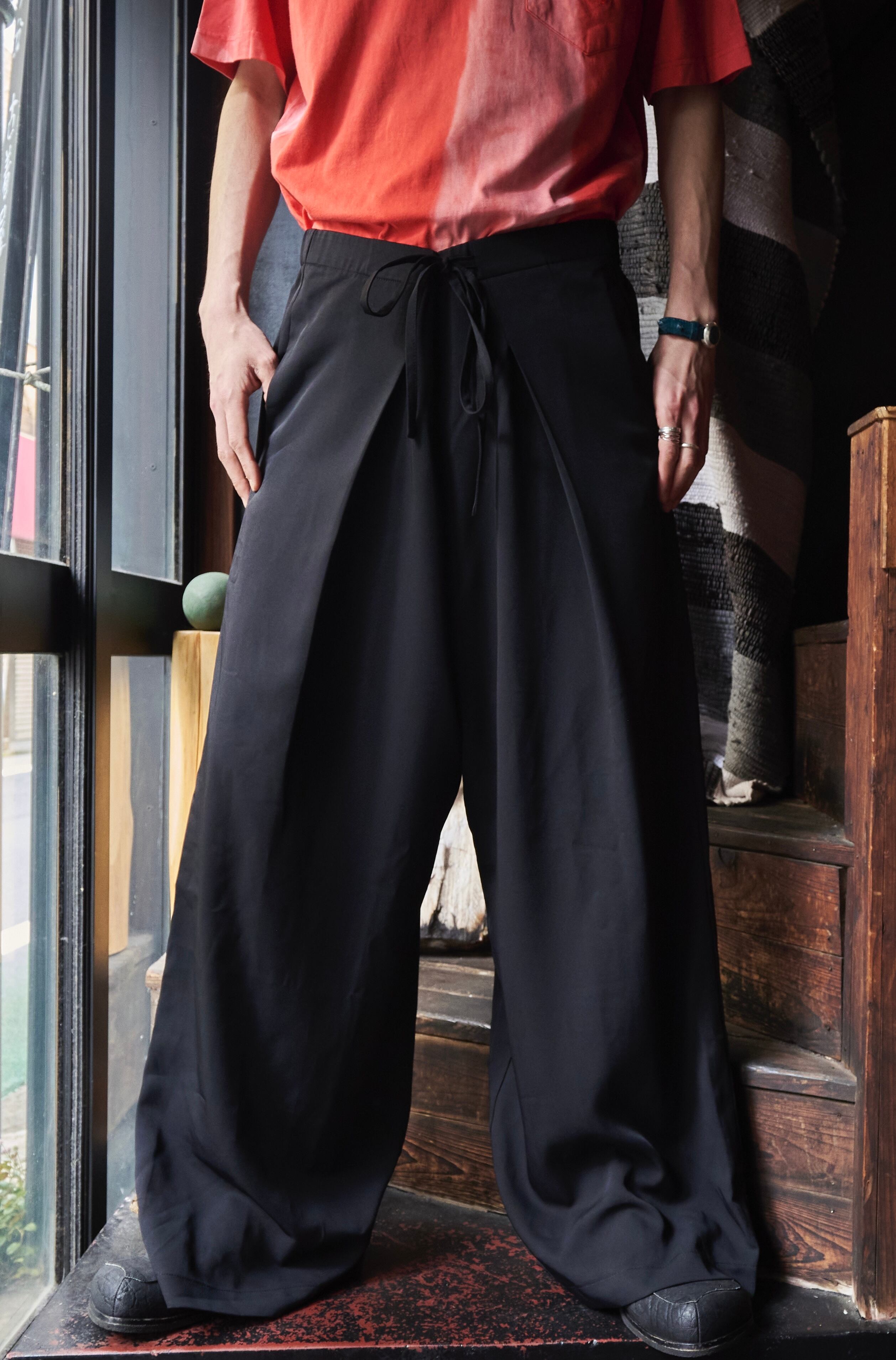 US 2010s〜 Center wrap pattern super wide drawstring slacks