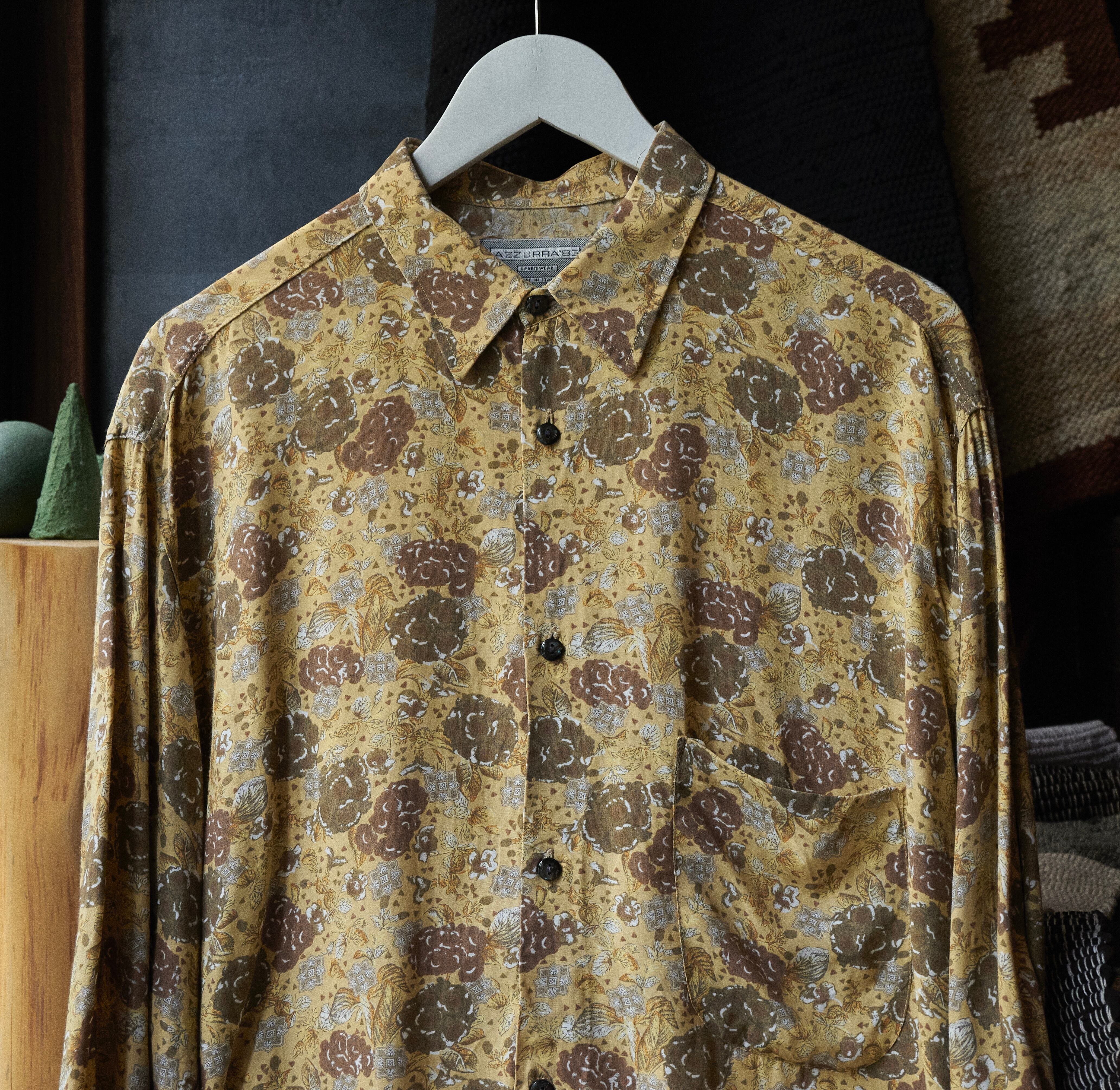 80s ITALY flower print rayon shirt