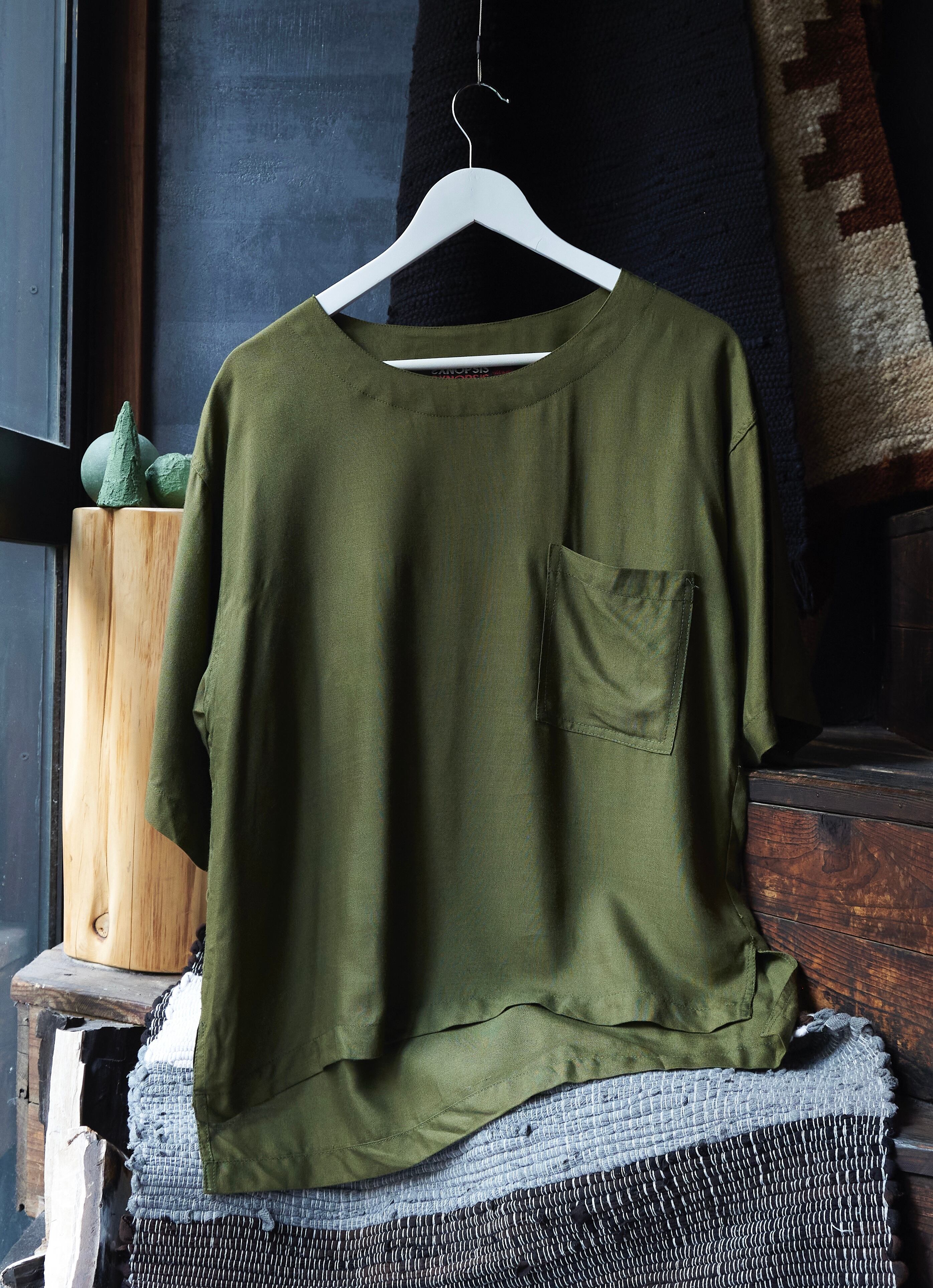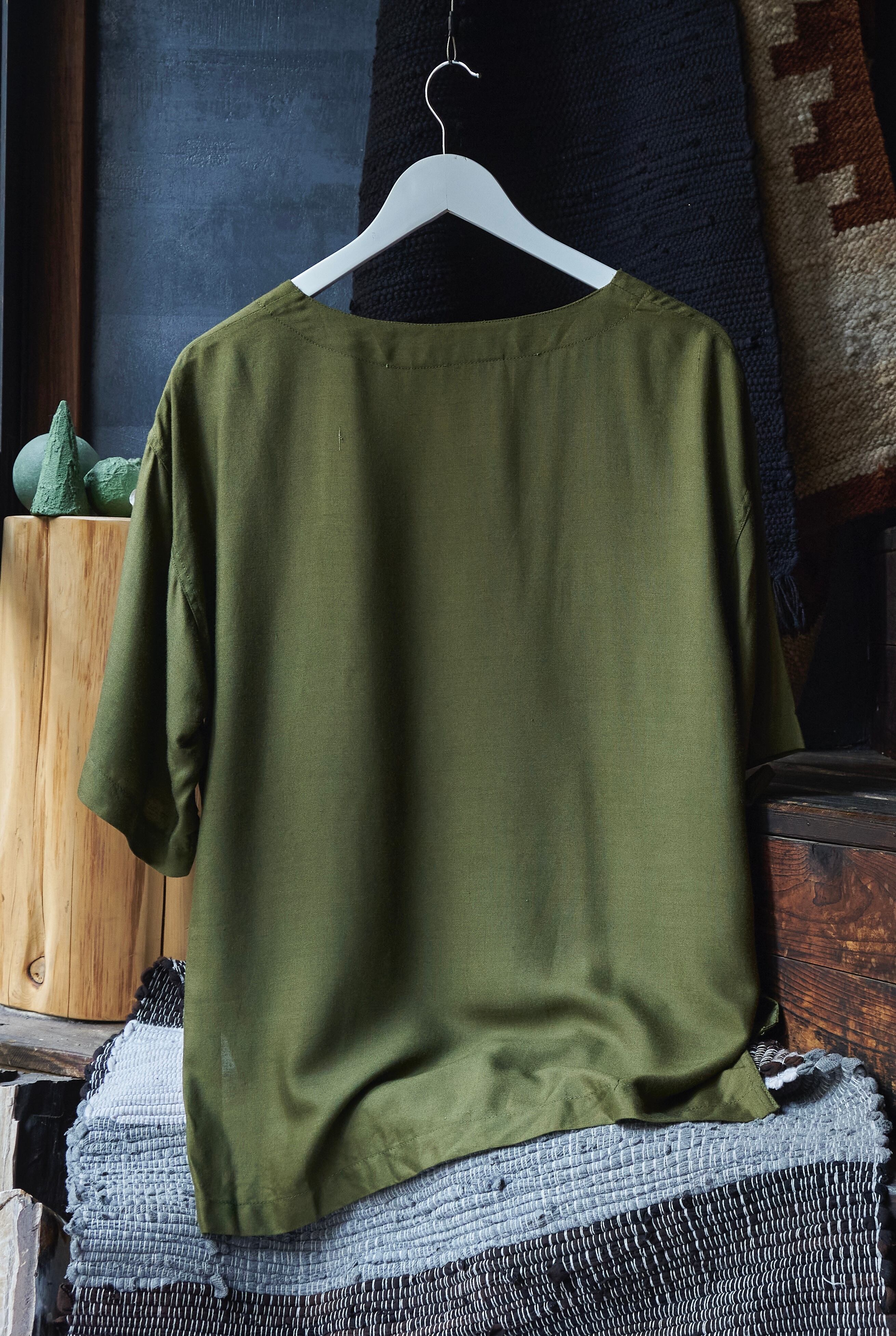 US 2000s Green Pocket T Pattern Half Sleeve Rayon Pullover