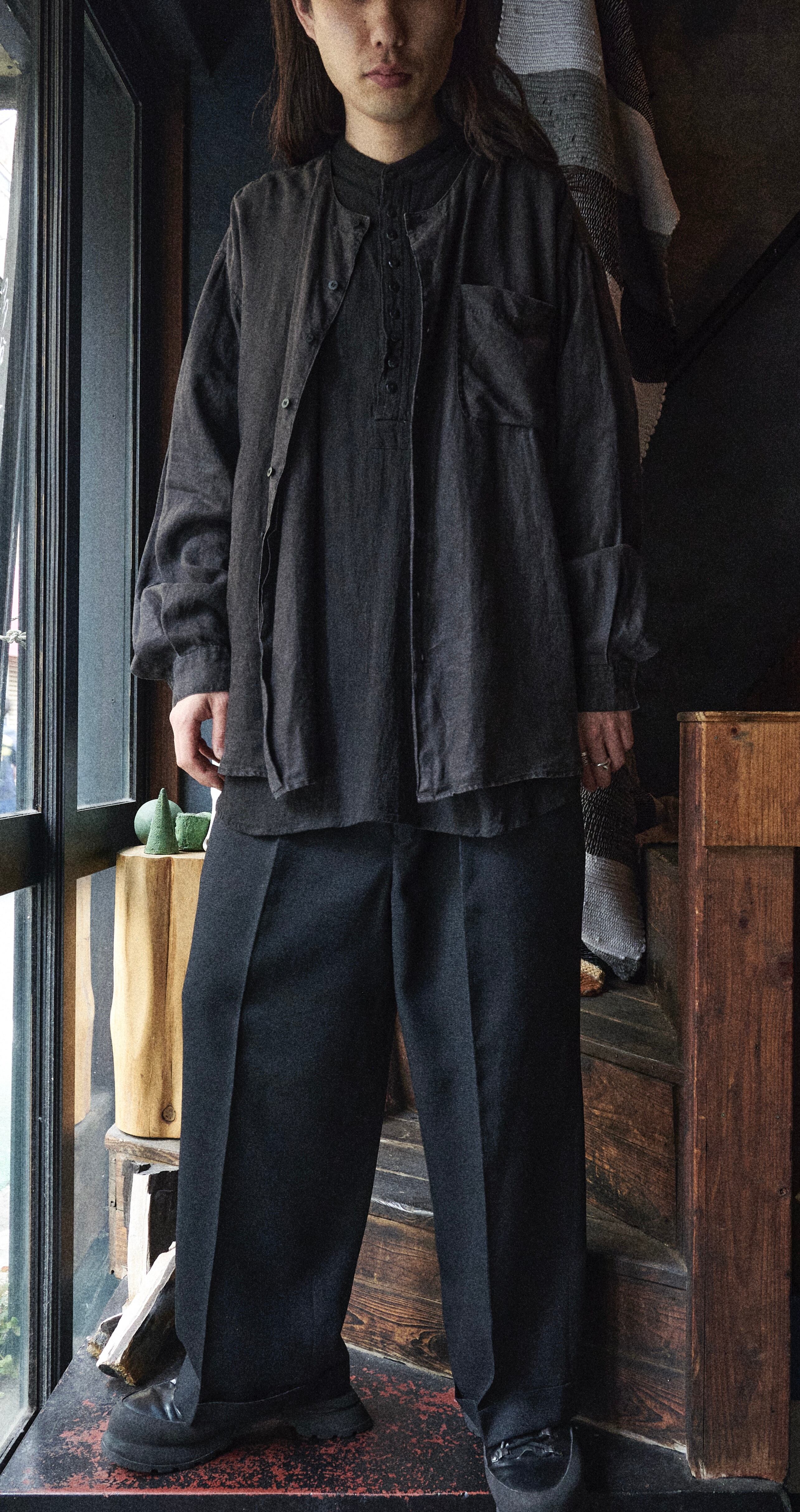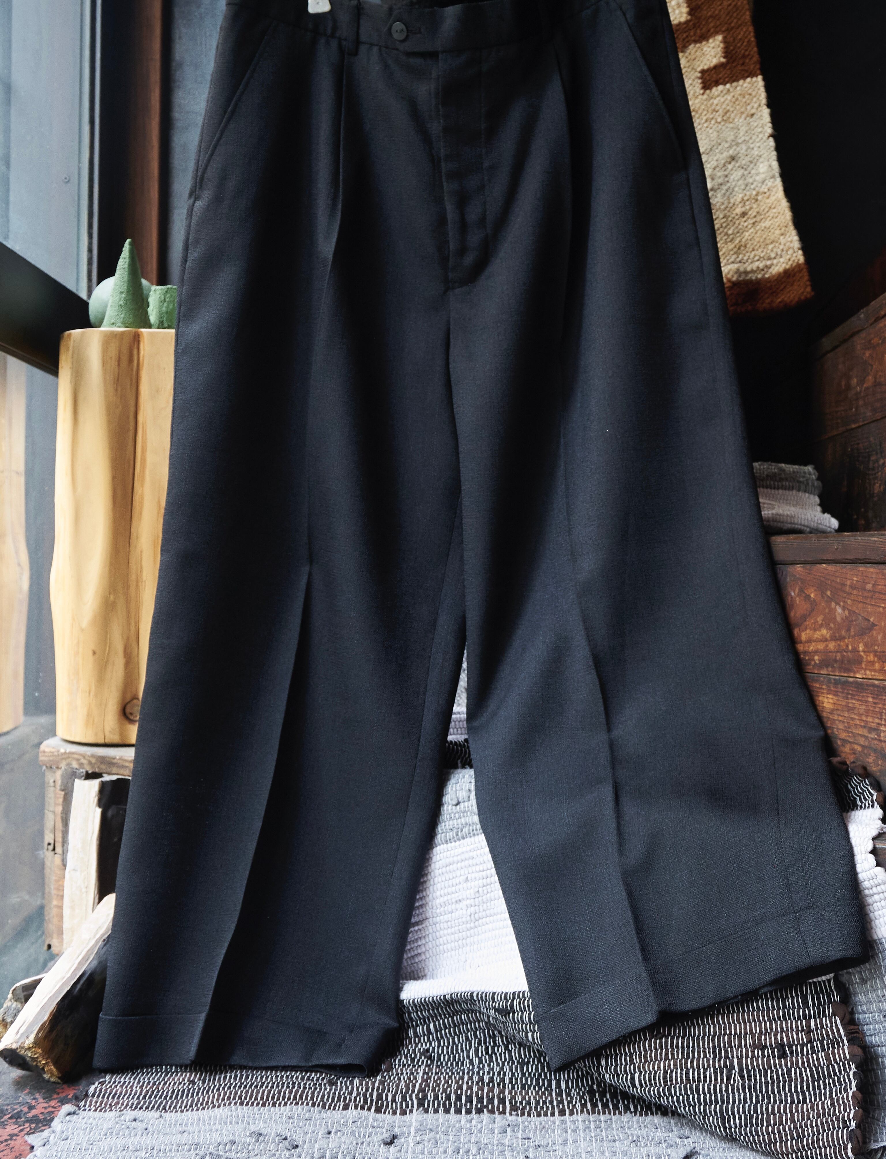 US 2000s Shiny linen x rayon x nylon fabric black wide slacks