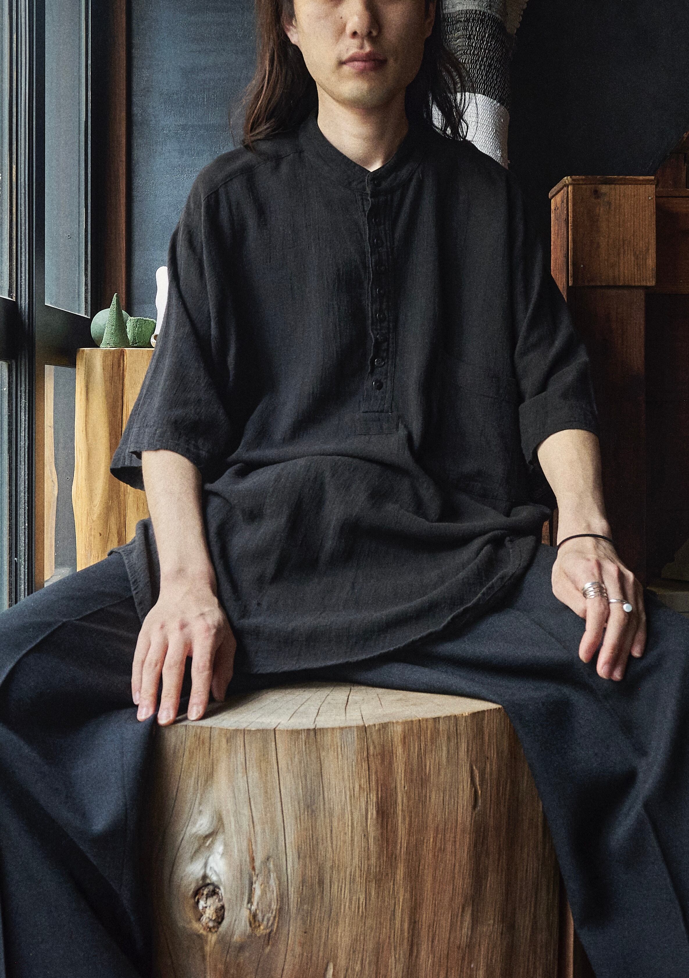 US 2000s oversized henley neck half sleeve kaftan shirt