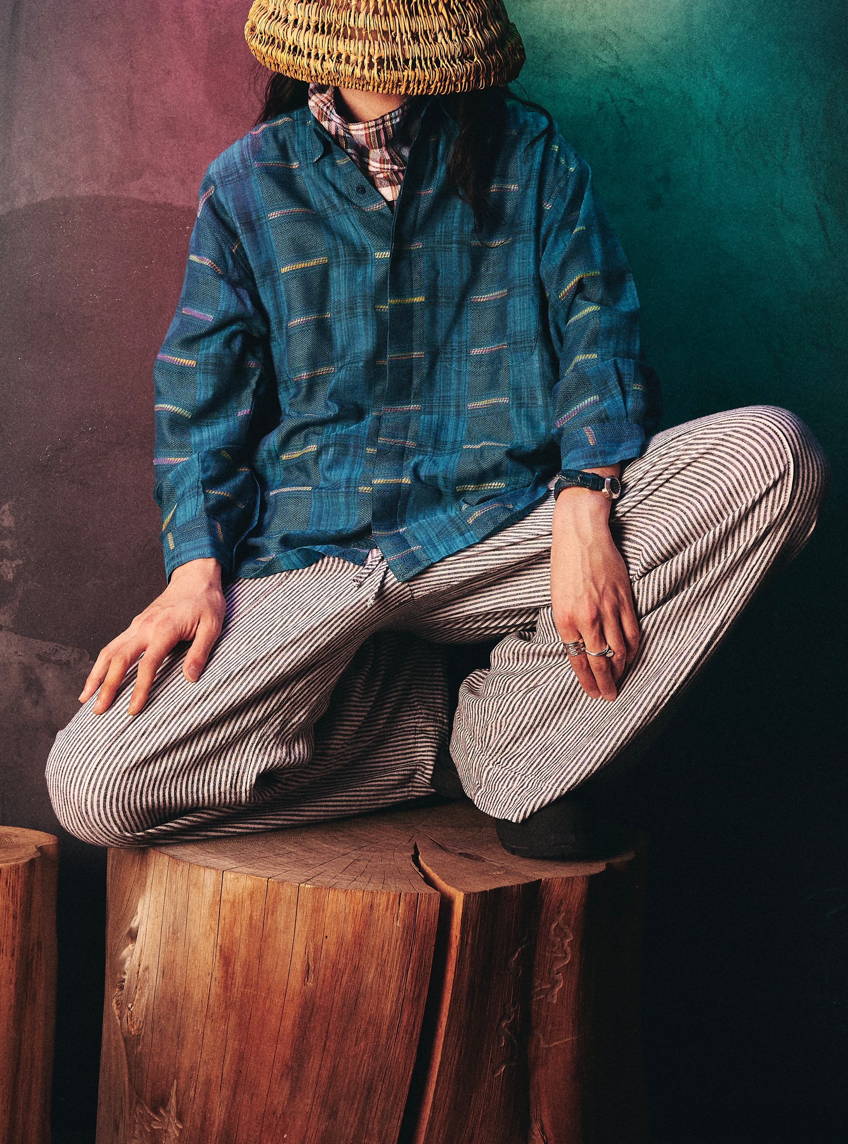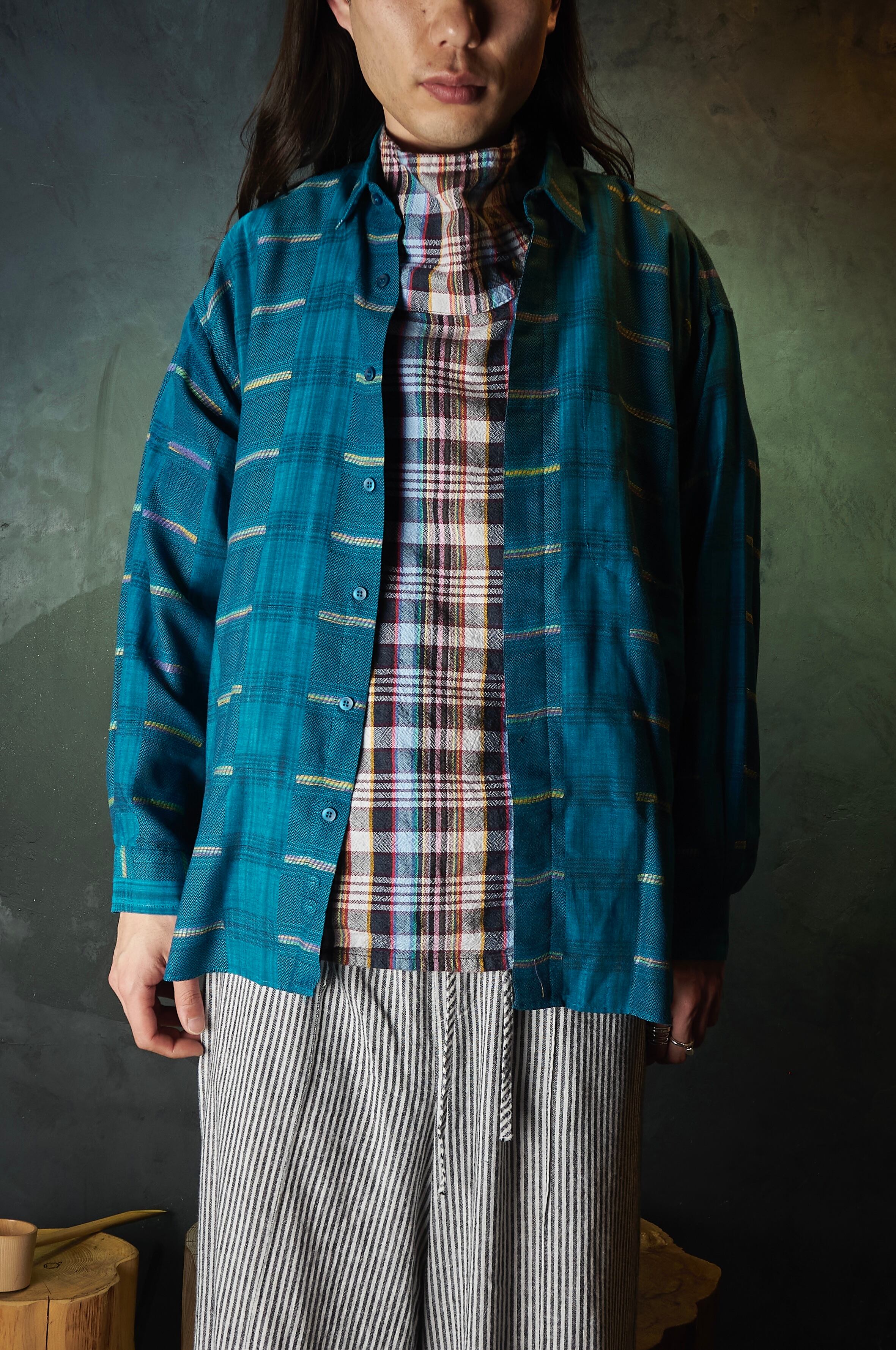 US 2000s Woven Polycotton Blue Base Colorful Collar Shirt