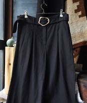 US 2010s〜 Black linen rayon belted baggy pattern slacks