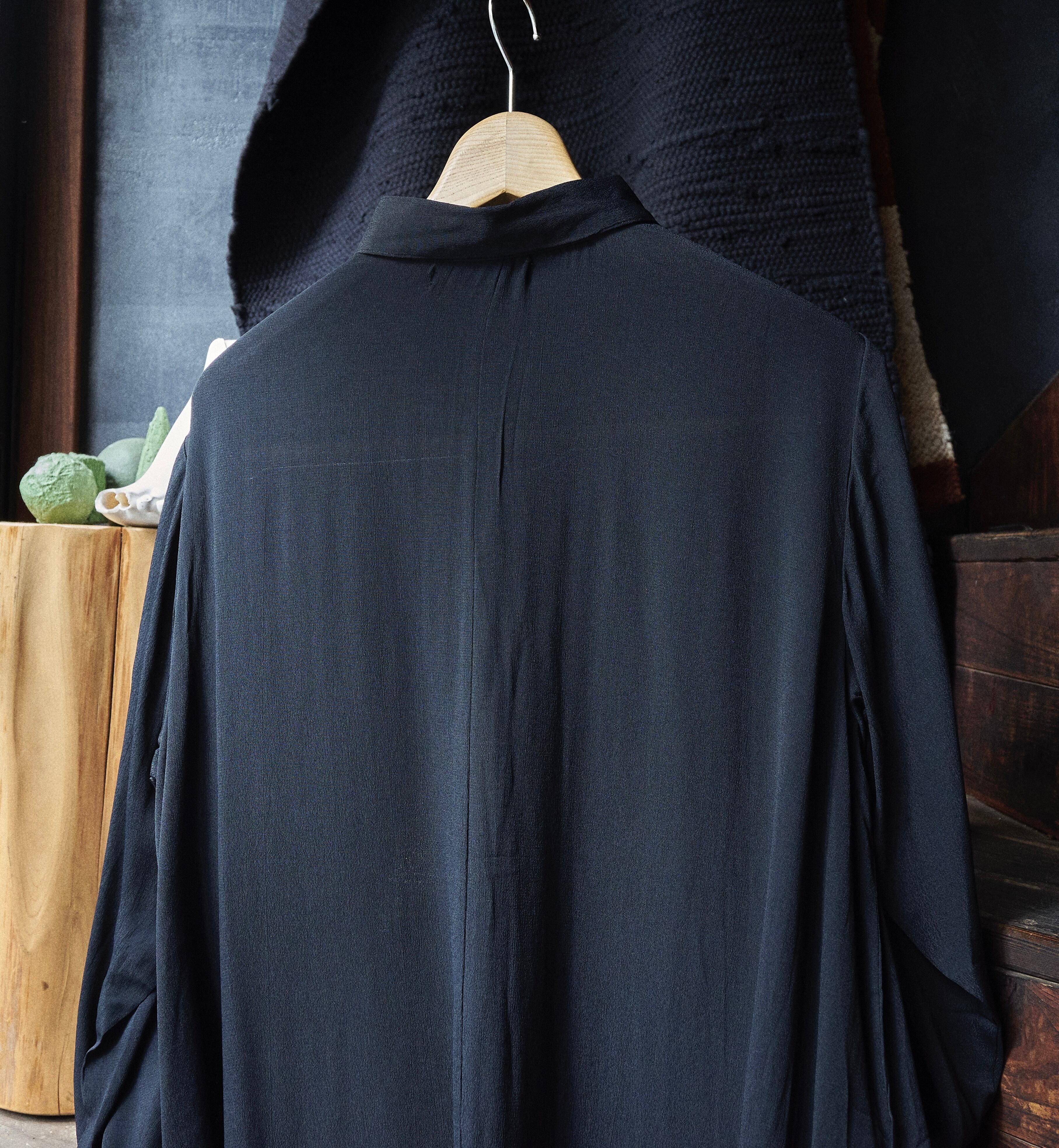 2000s euro 11 button sleeve modified pattern rayon shirt with pocket