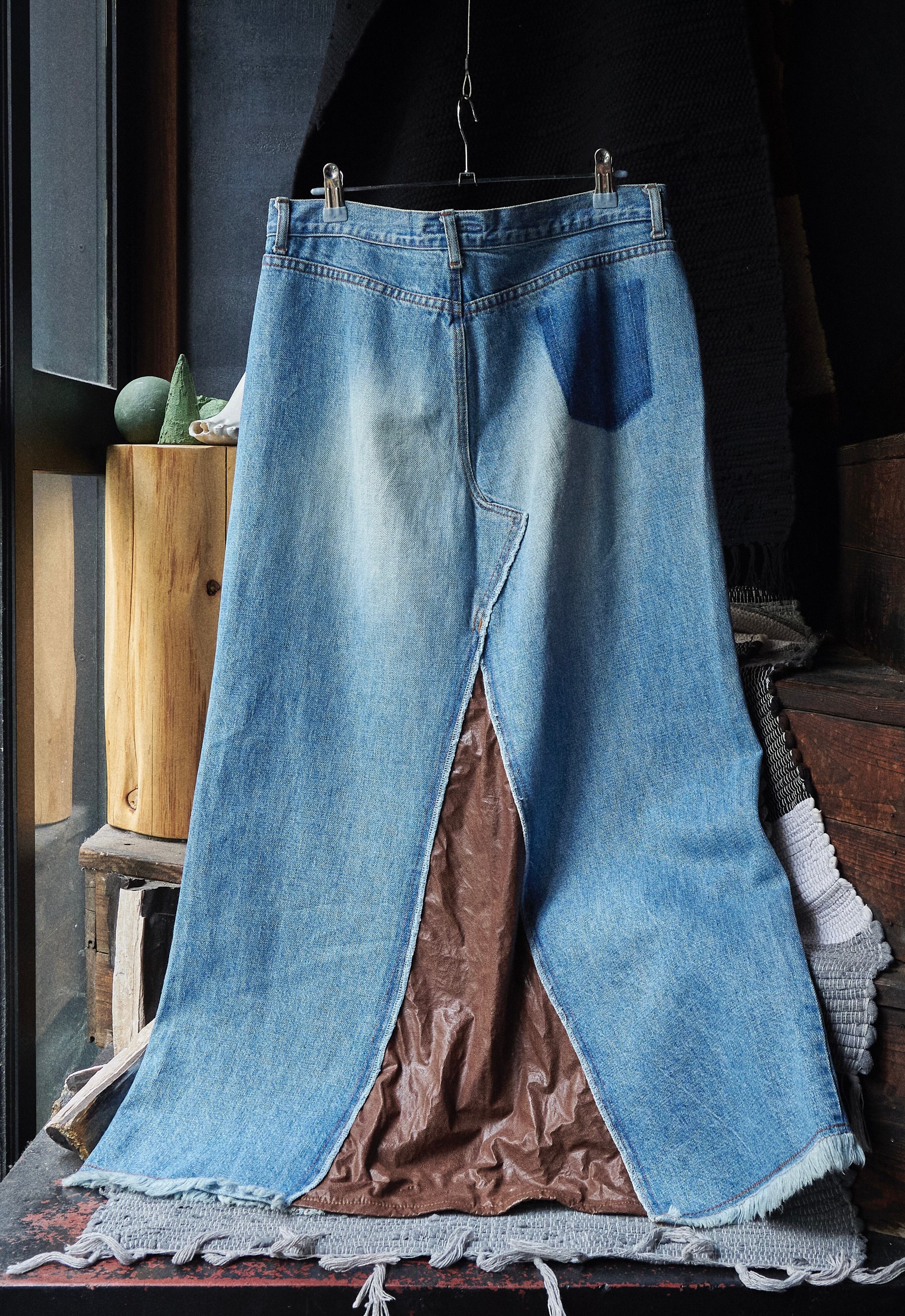 2000s euro faded indigo long length denim skirt