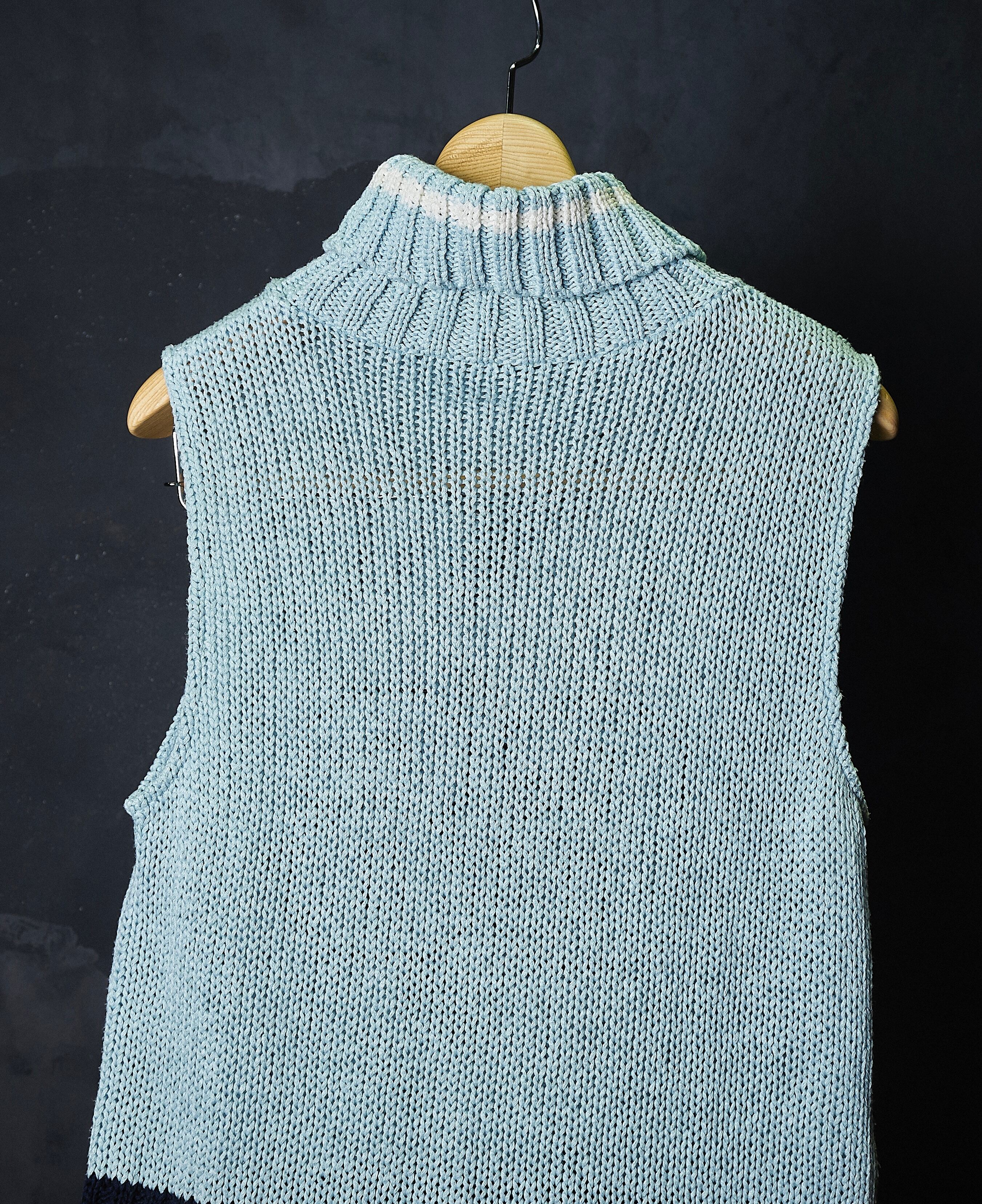 2000s euro cotton linen fabric turtleneck knit tank