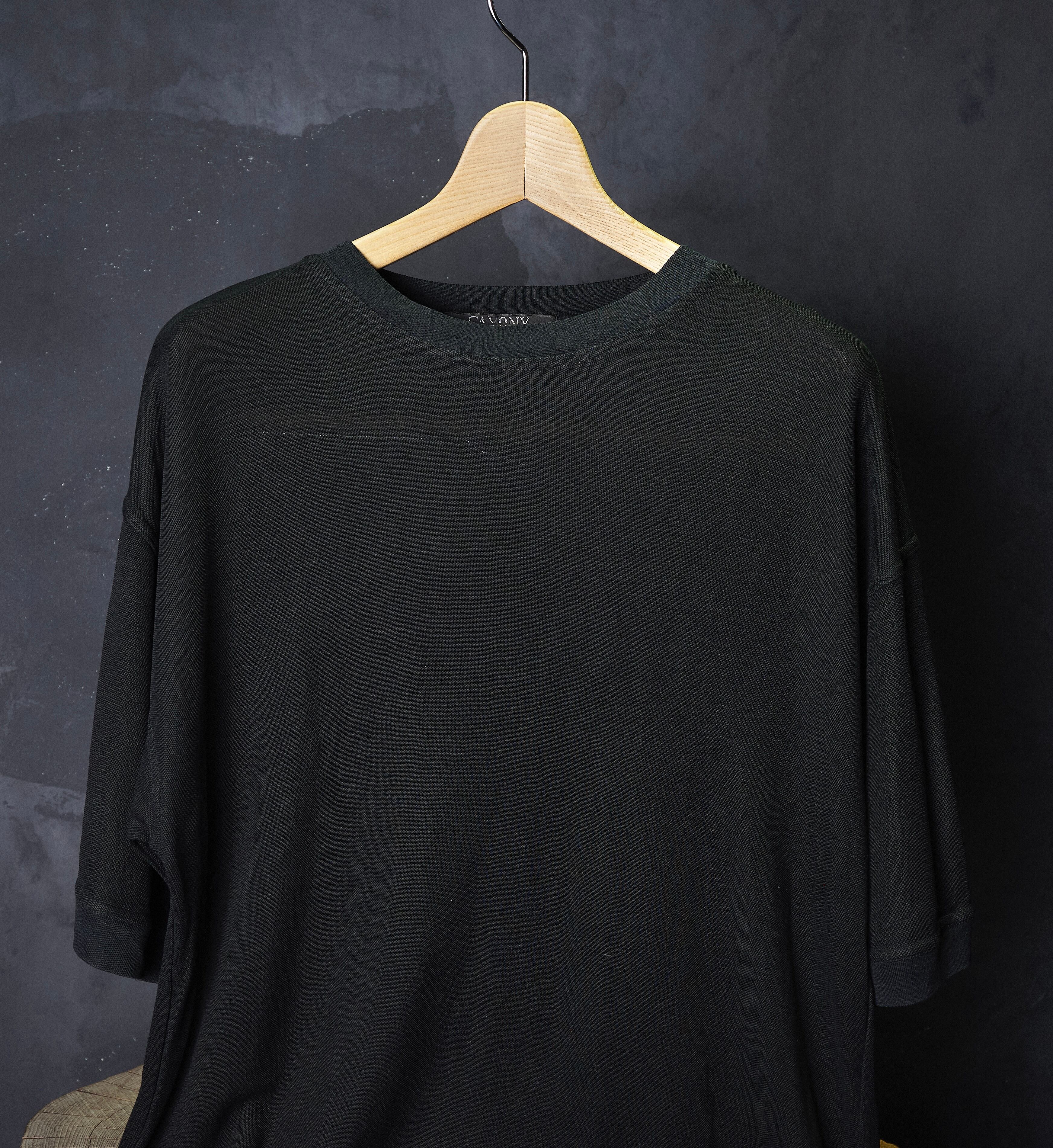 ニットウェアブランド、サクソニーによる総シルク素材を使用したニットTシャツ。