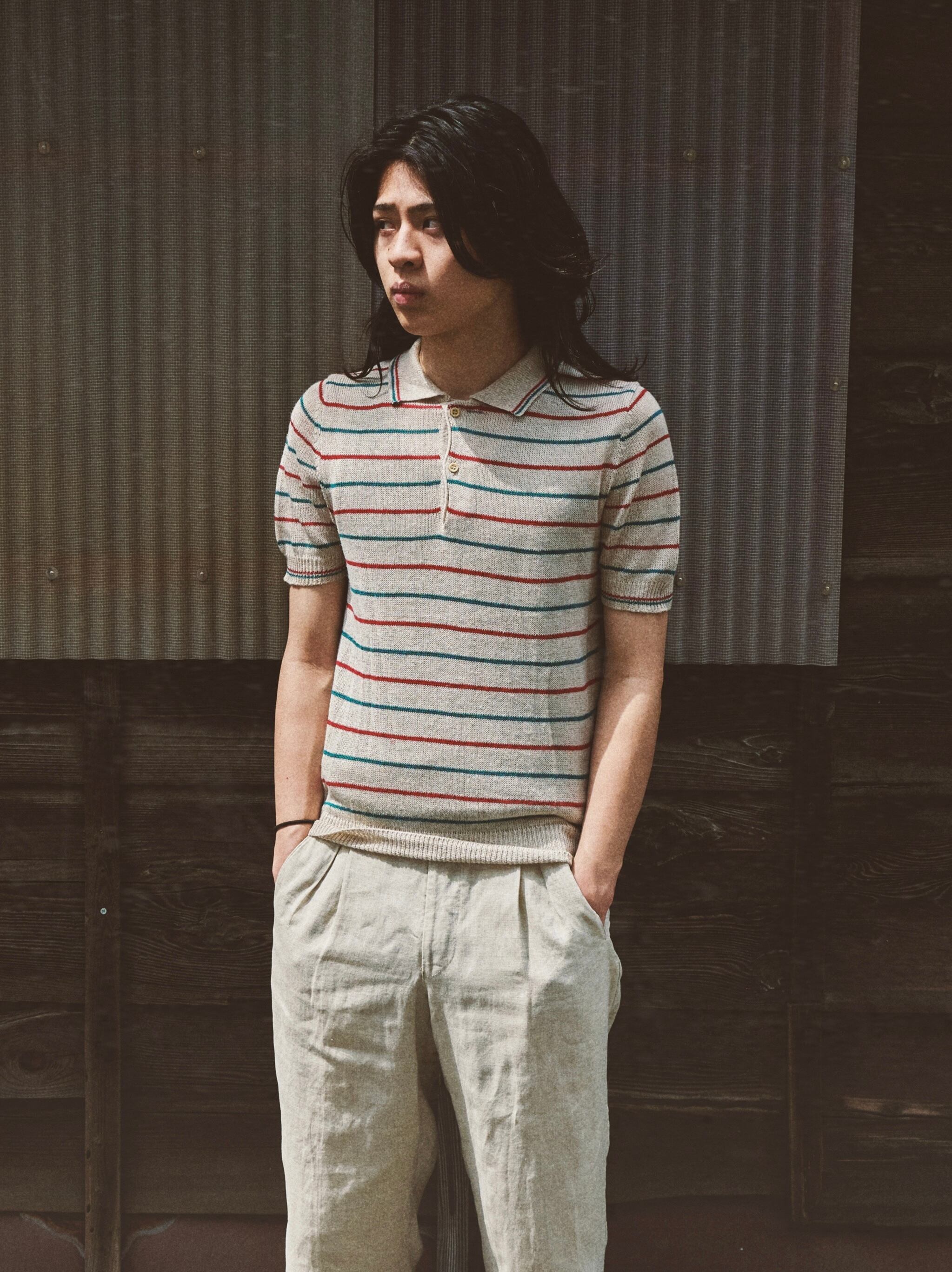 80s euro Half Sleeve Cotton Striped Knit Polo