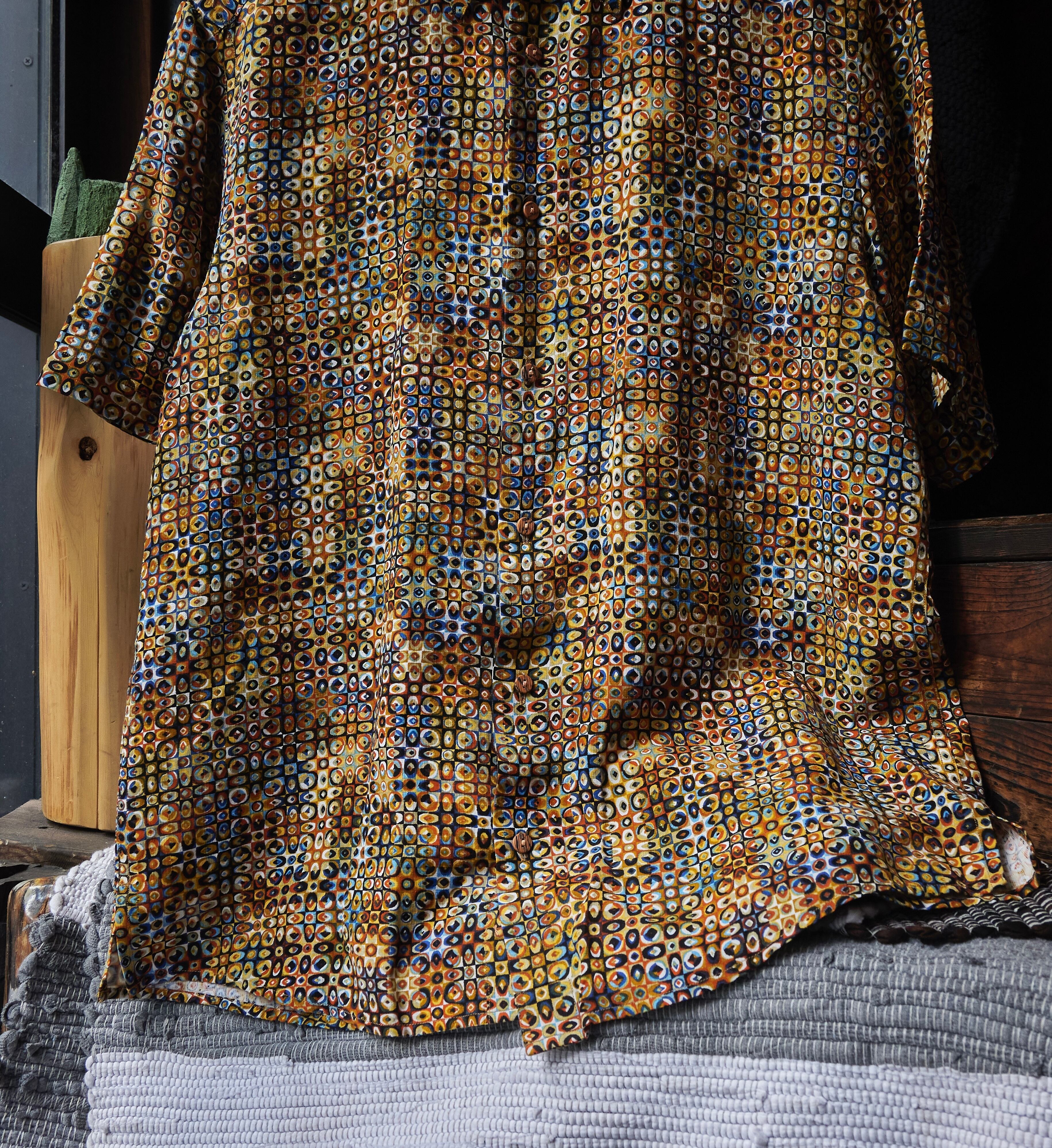 JHANE BARNES Woven silk x linen fabric patterned half sleeve shirt