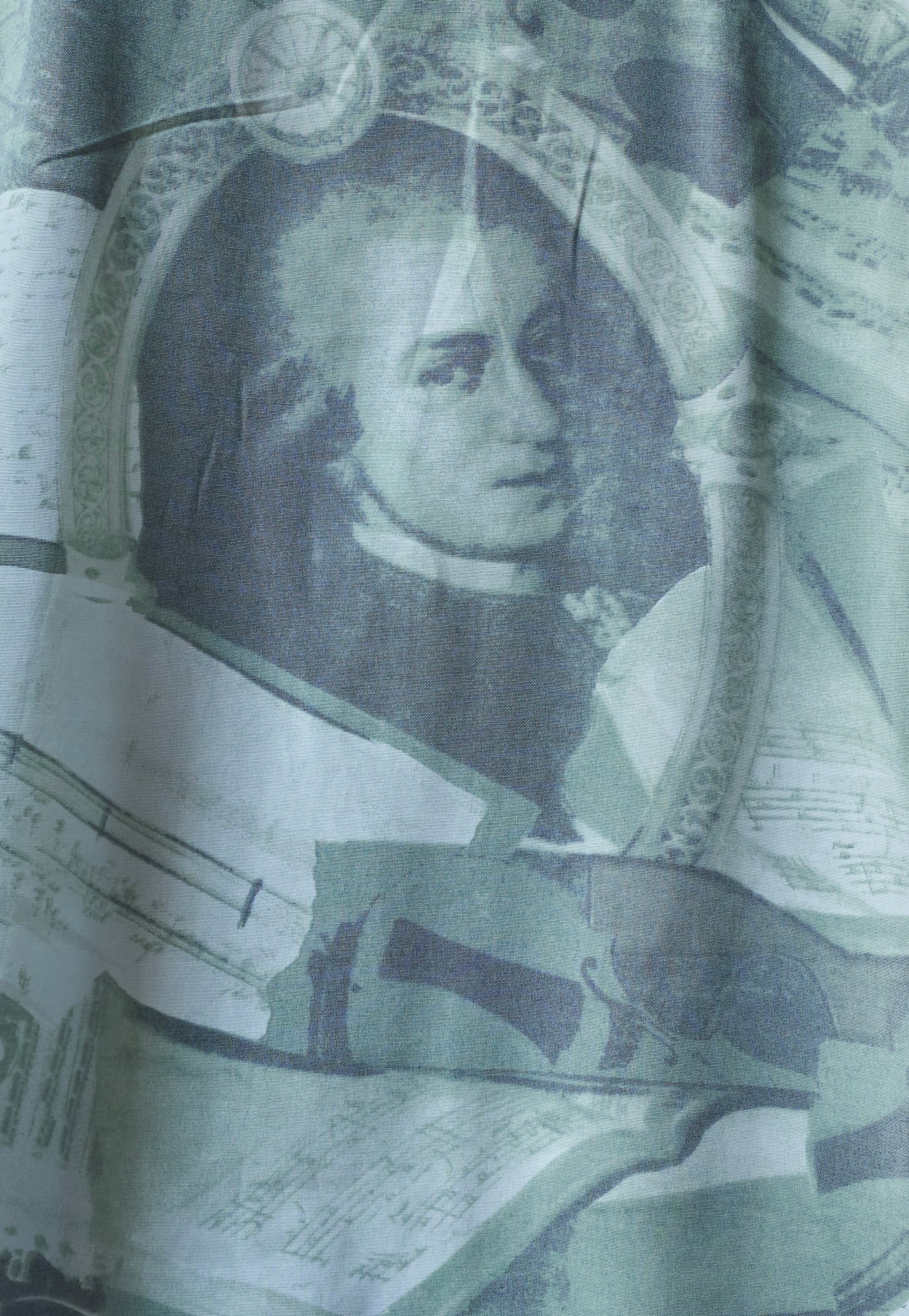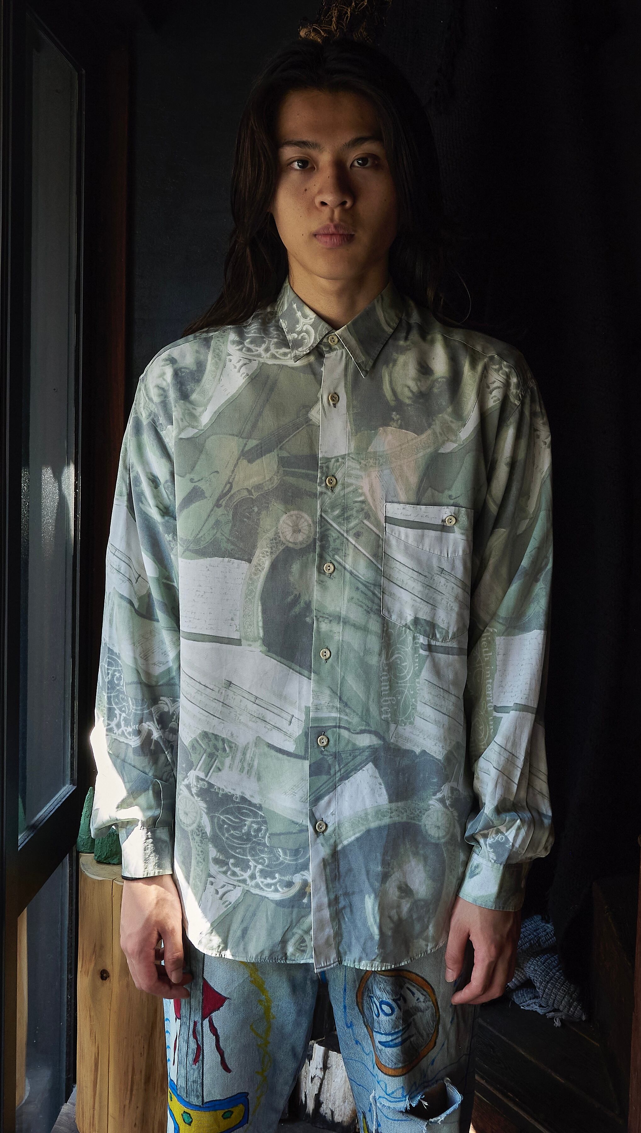 80s ITALY all-over print of human design rayon polyester shirt