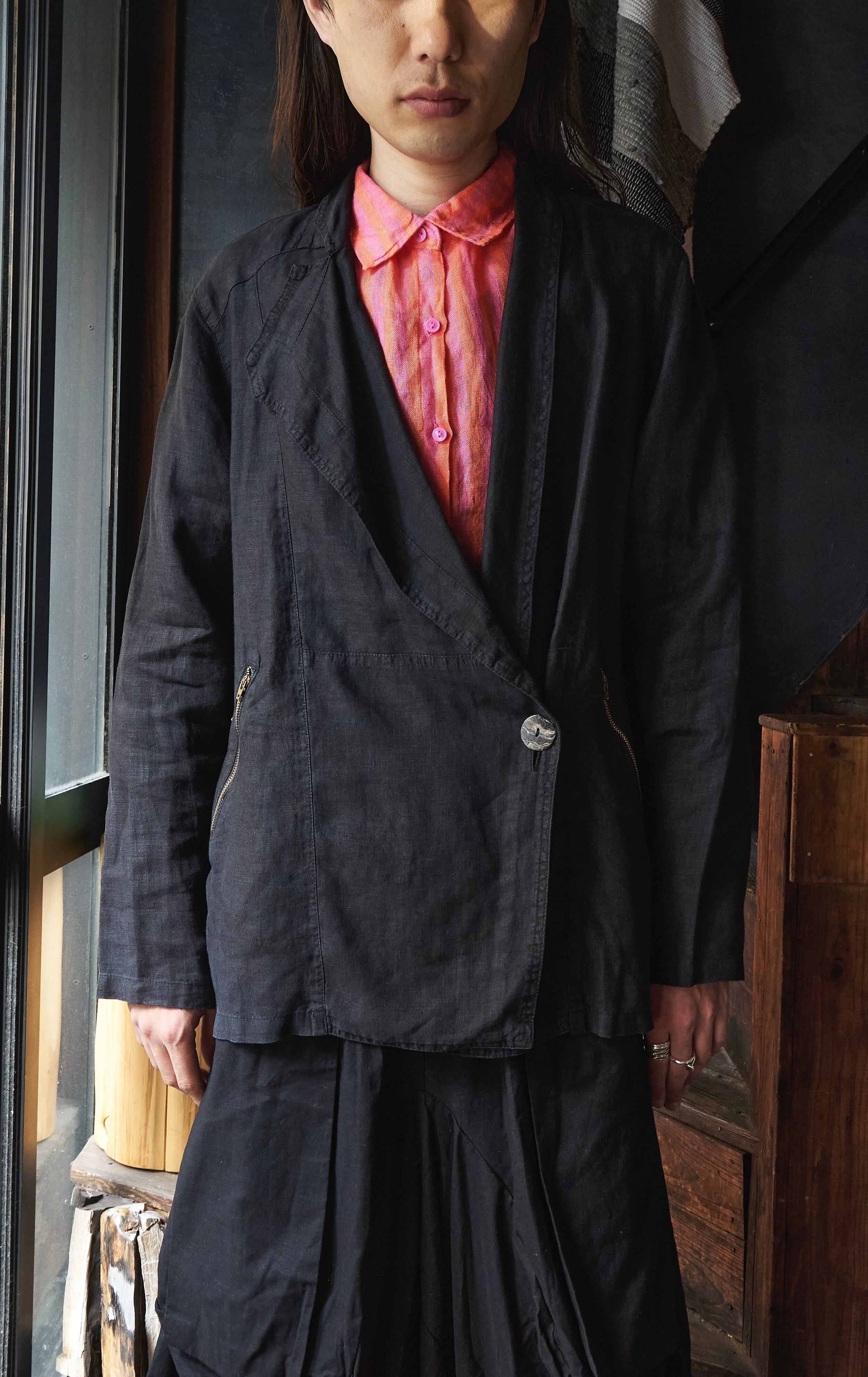 US 2000s Deformed Patterned black linen jacket