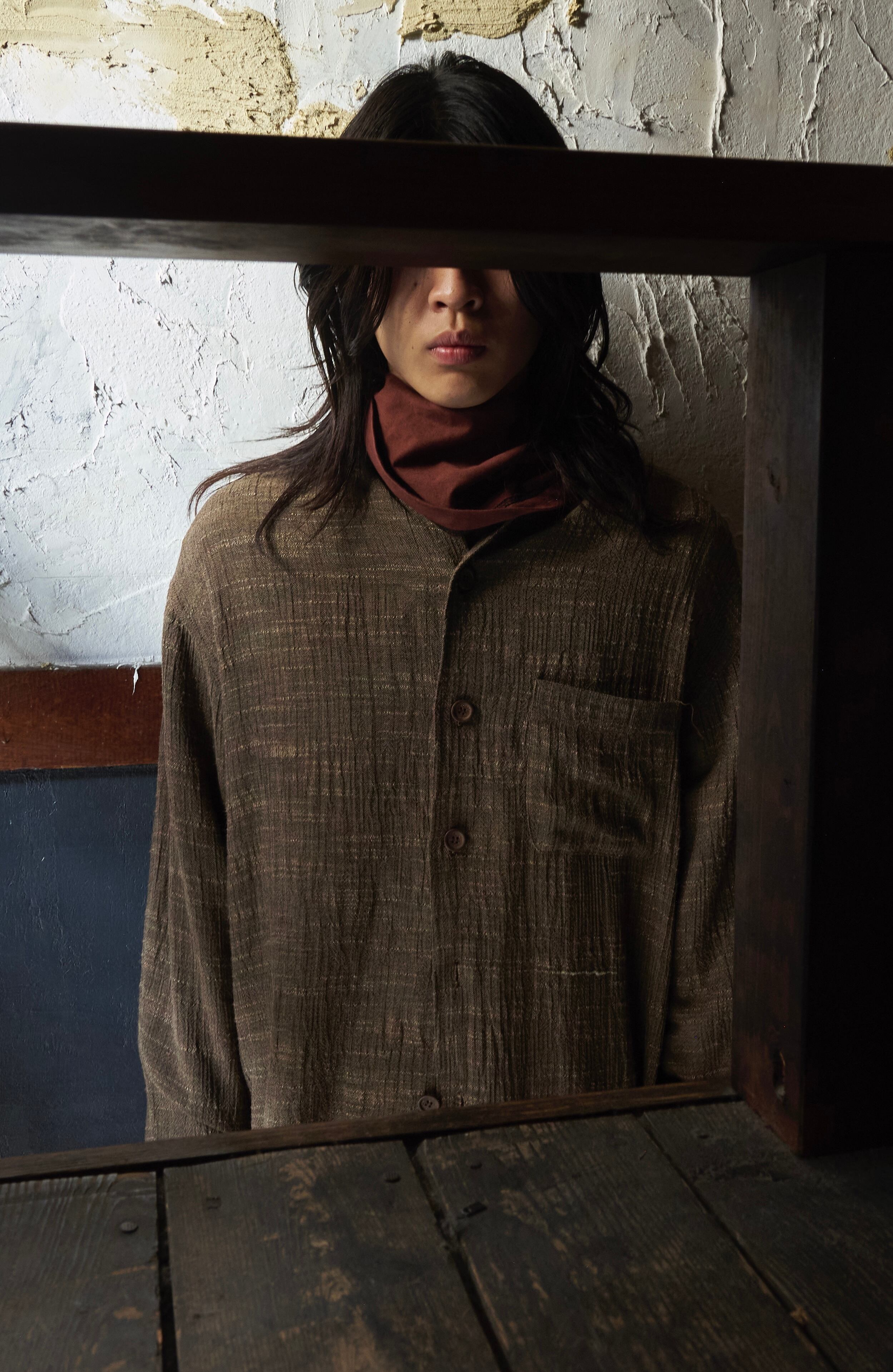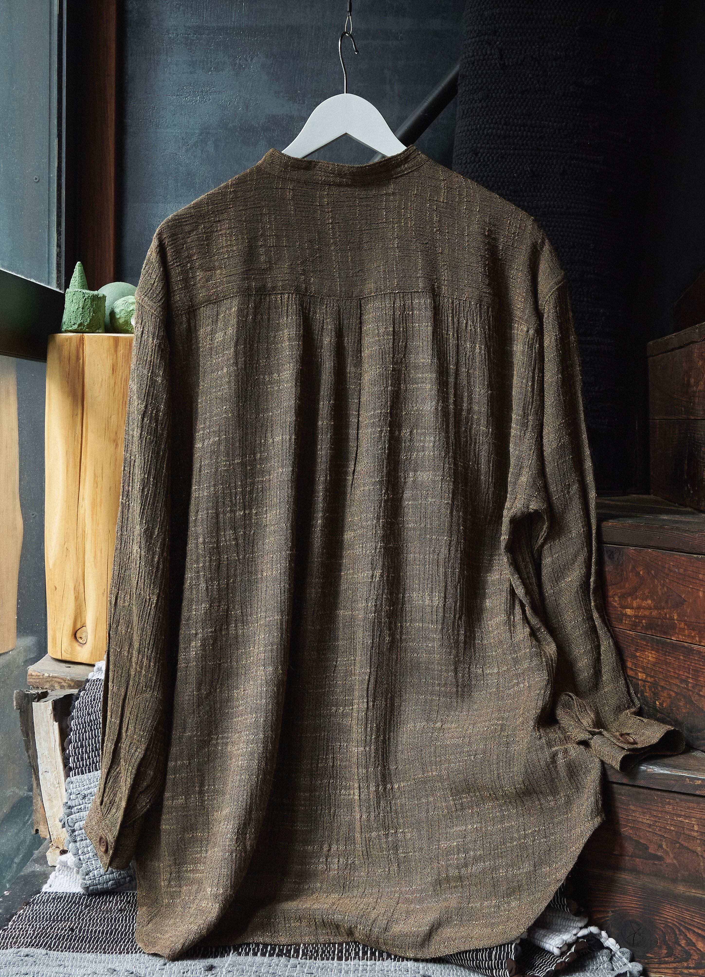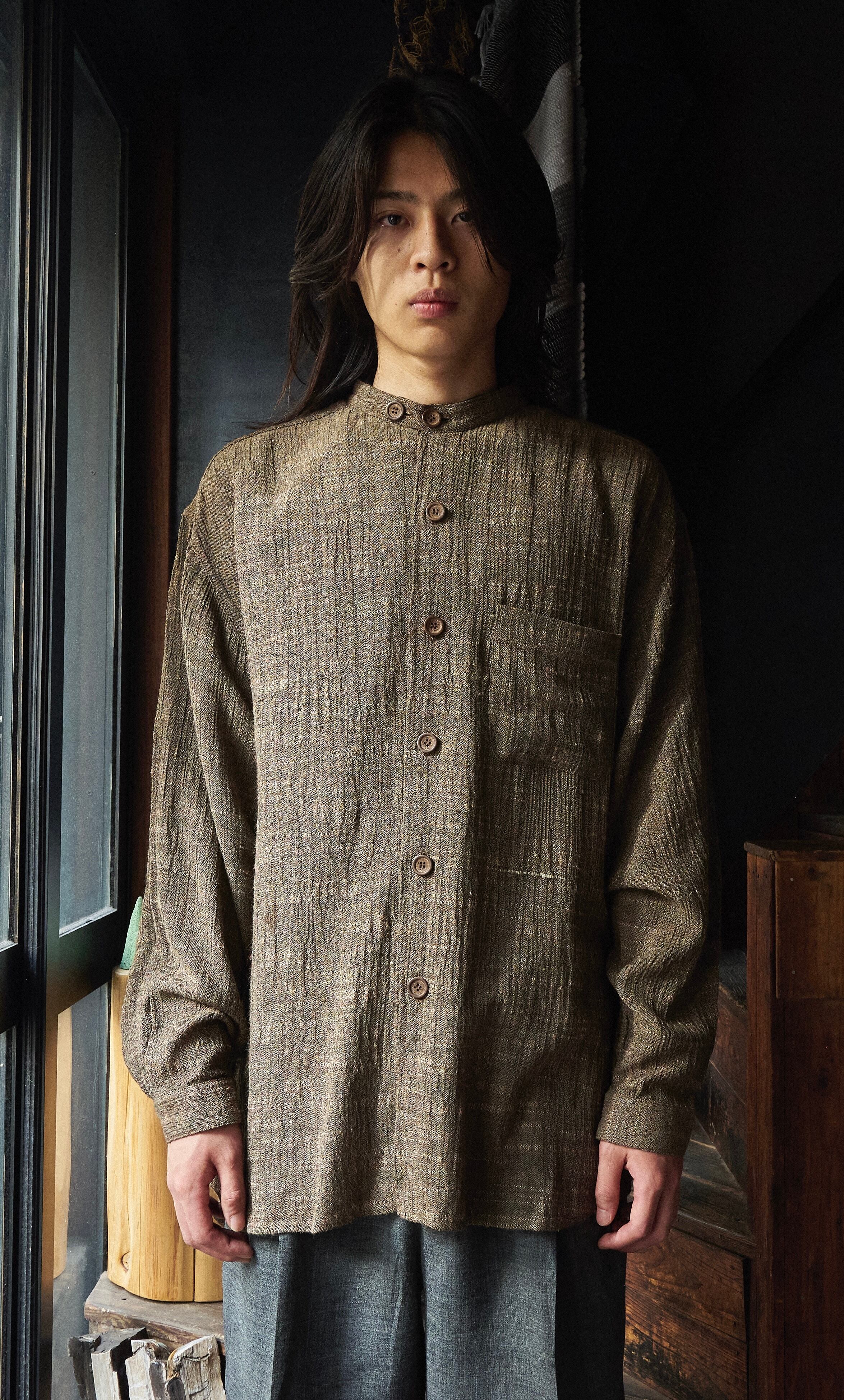 2000s Euro Mixed Woven Fabric Stand Collar Shirt