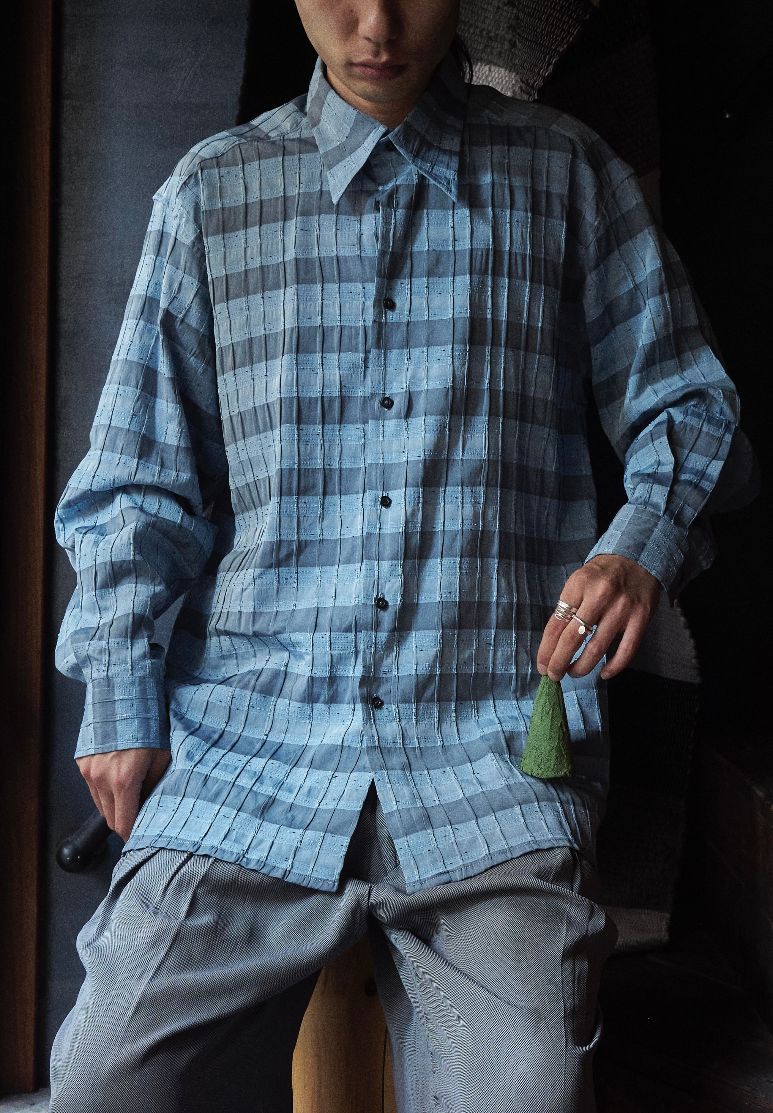 US 2000s woven fswitching pattern rayon polyester fabric shirt