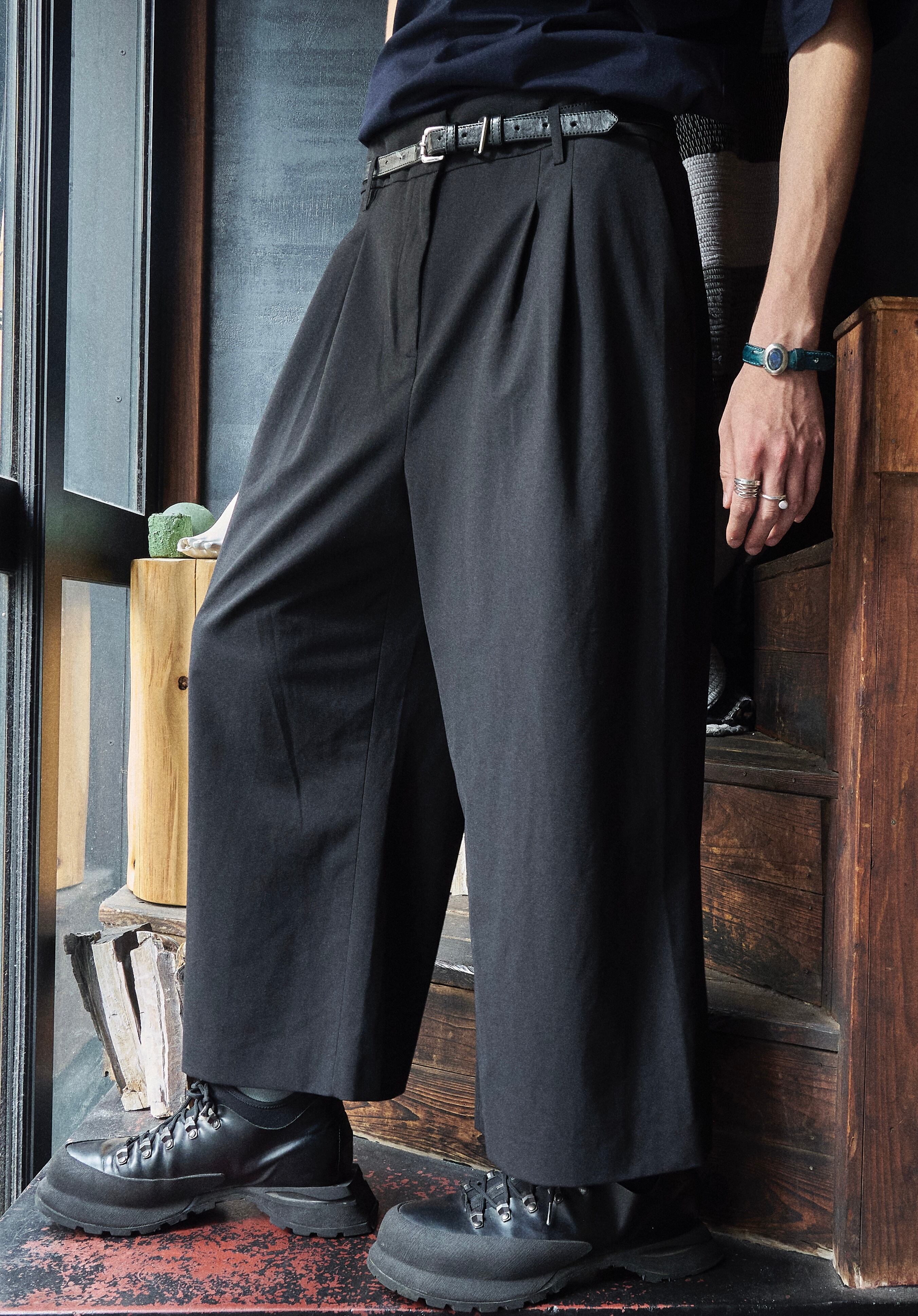 US 2010s〜 Black wide-cropped polyester and rayon slacks