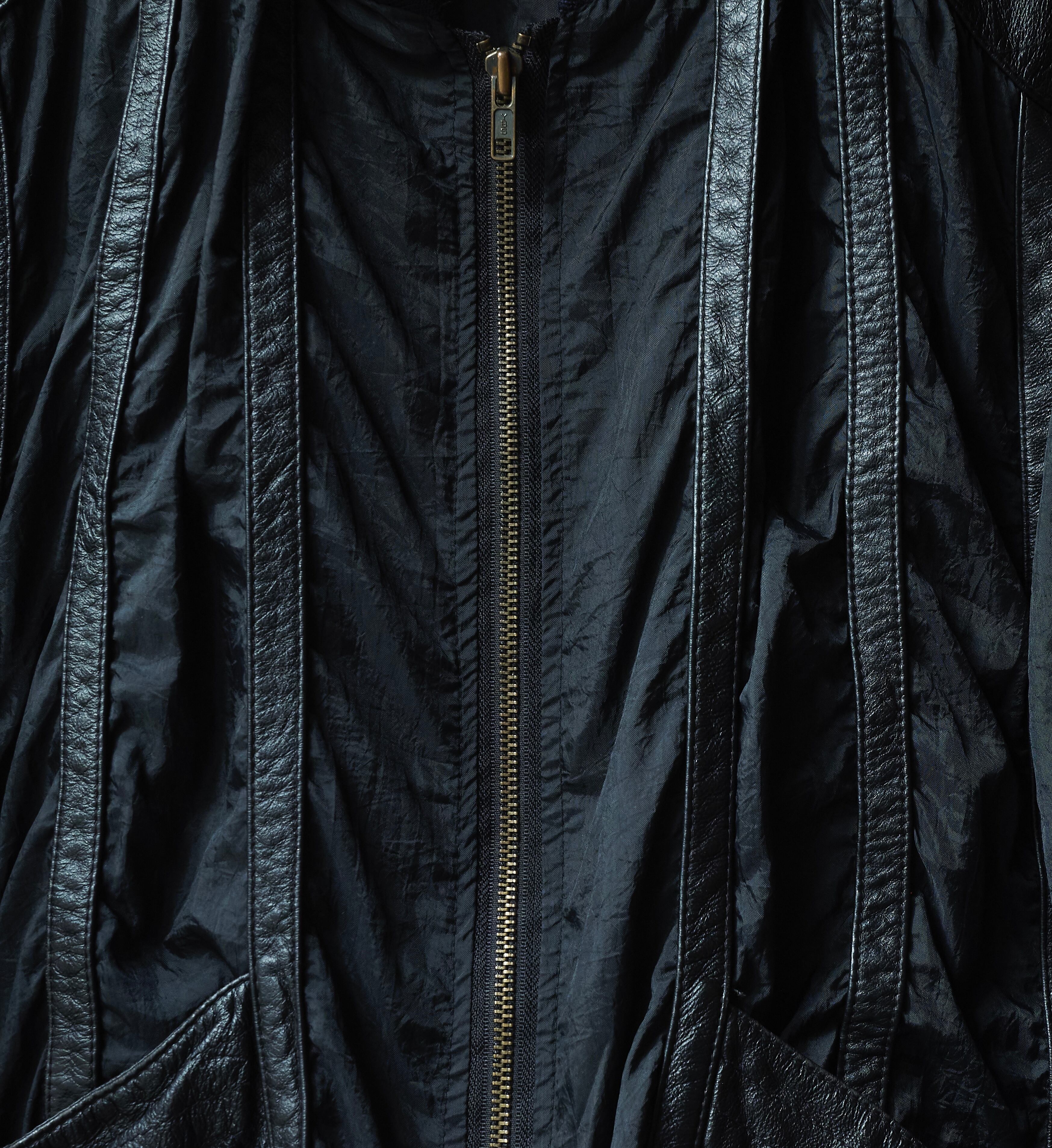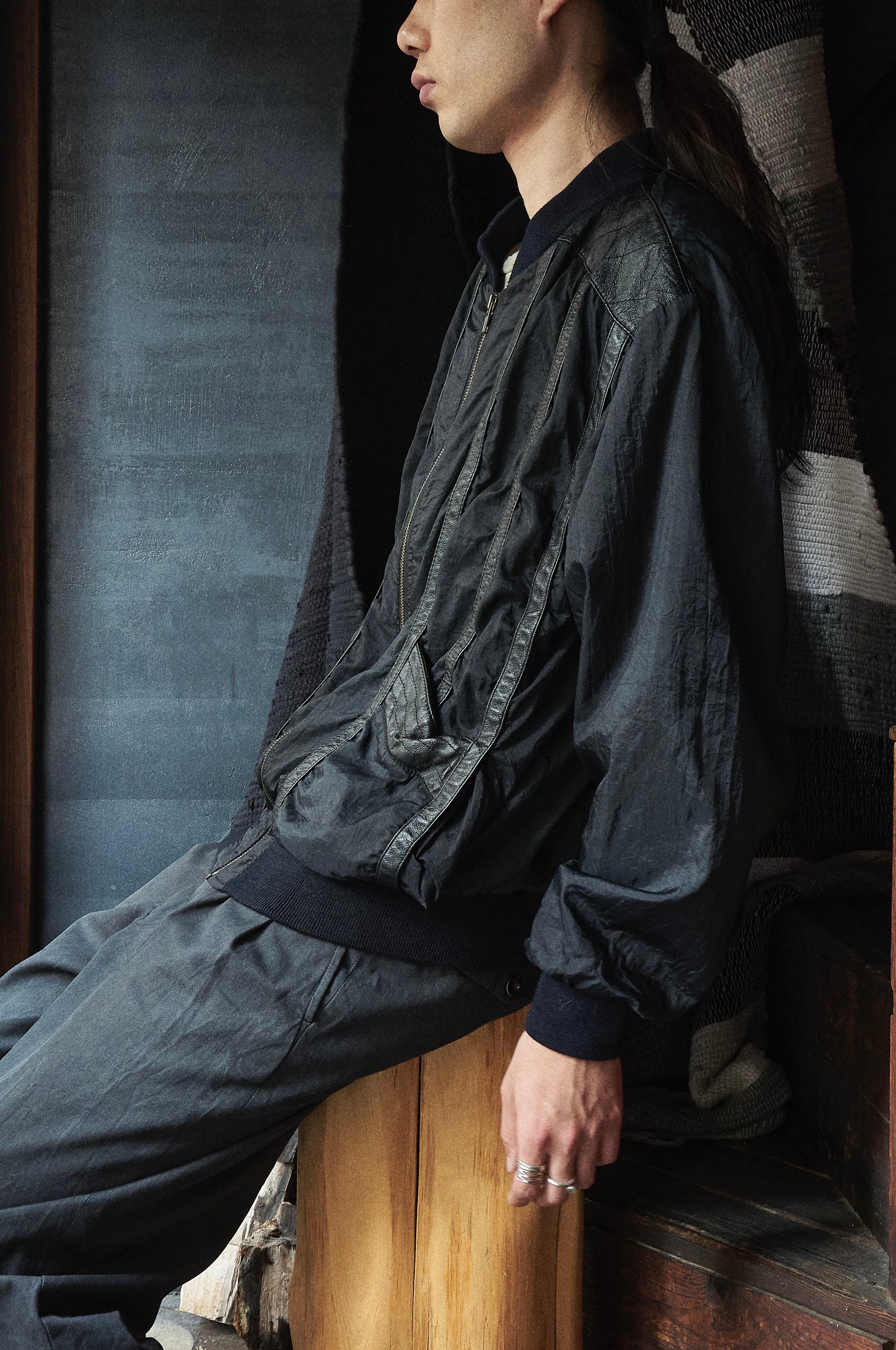 US 2000s Nylon × Leather fabric Lightweight bomber jacket