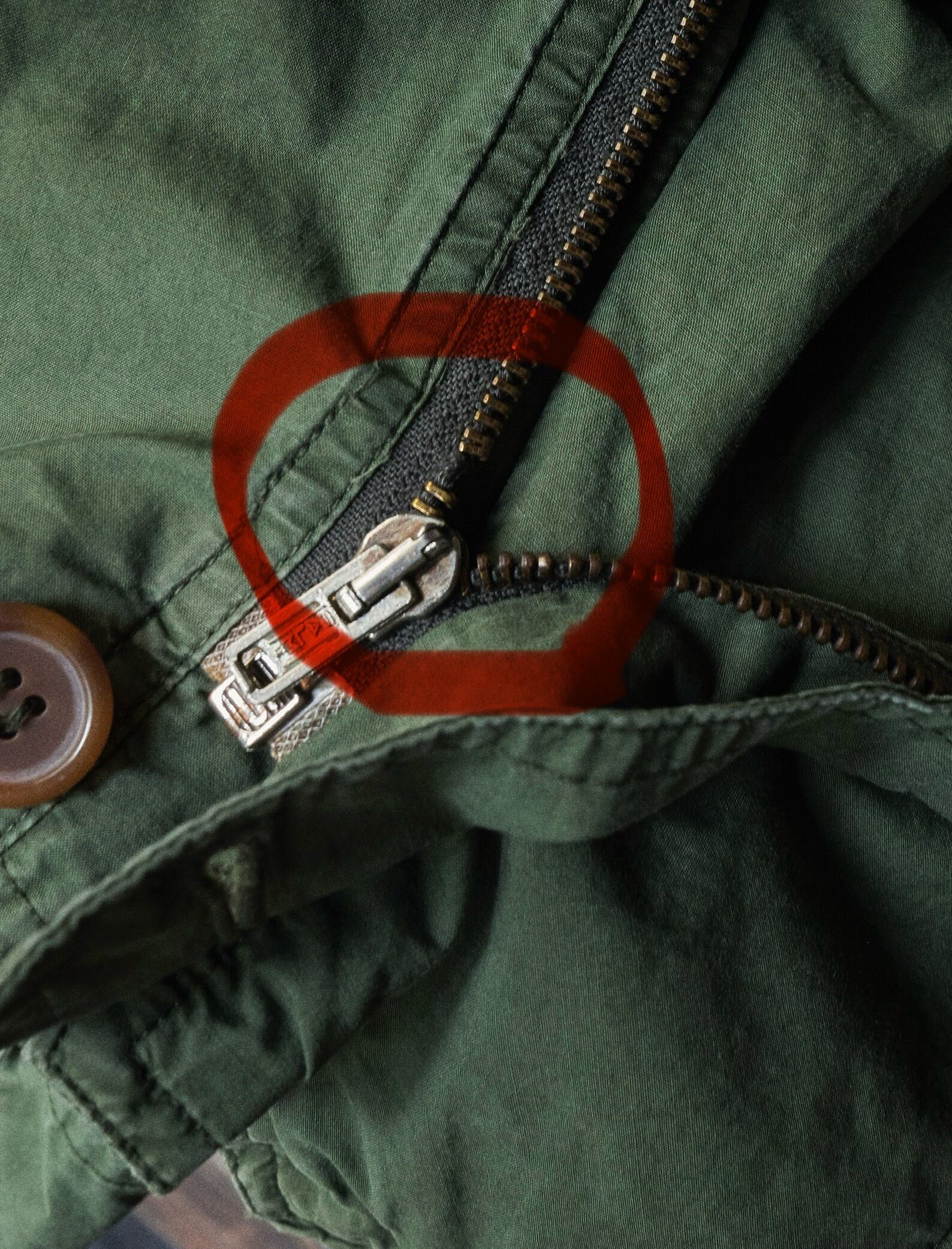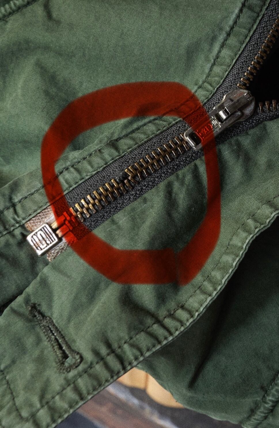 ジップ下部。受け子部分。歯抜けが2コ程ございます。使用には、問題なく動作確認済みです。