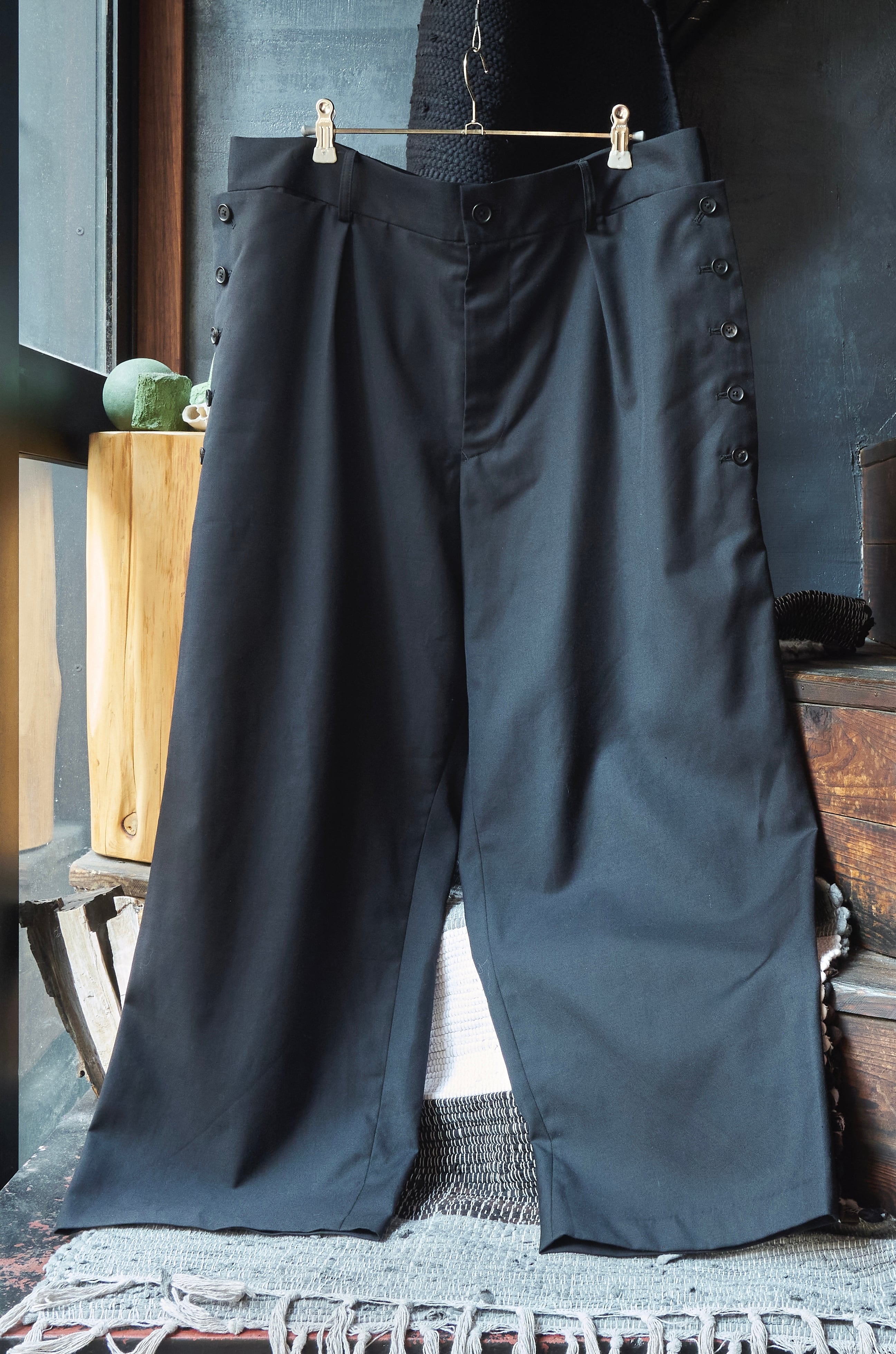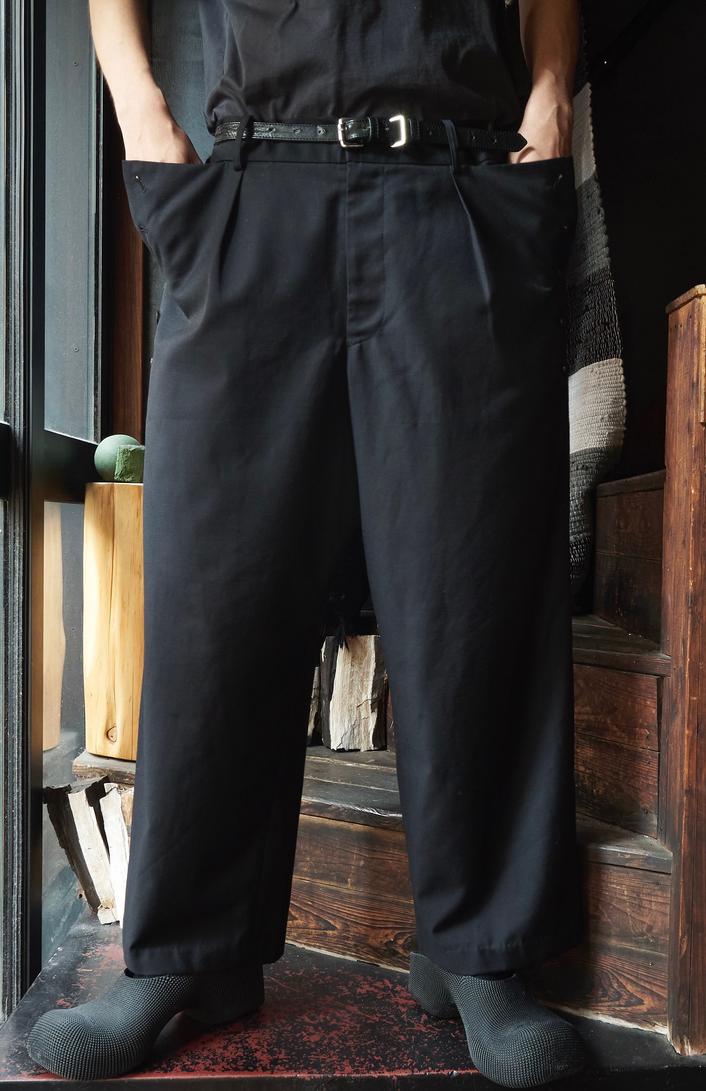 S'YTE Yhoji Yamamoto planning Dept. Gabardine wool polyester fabric pocket button design wide slacks
