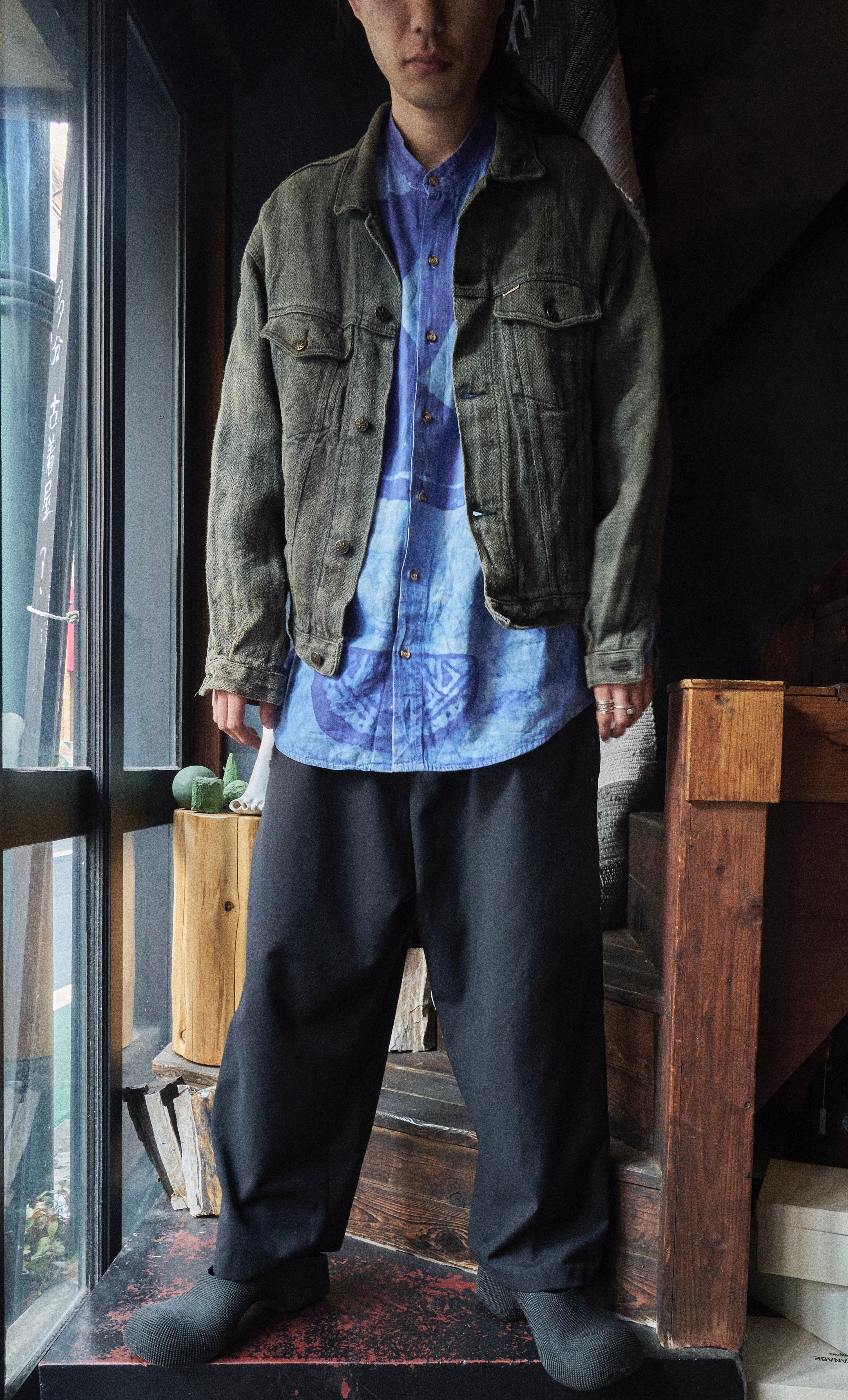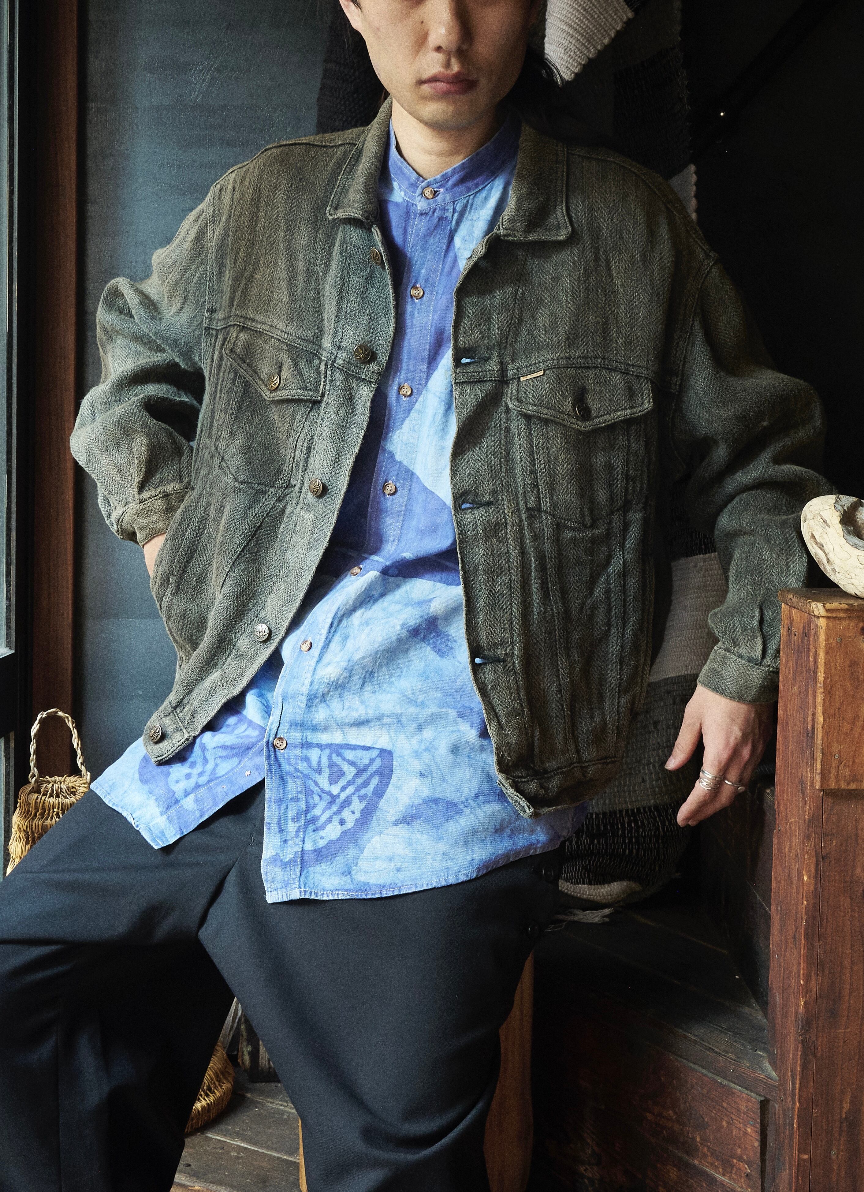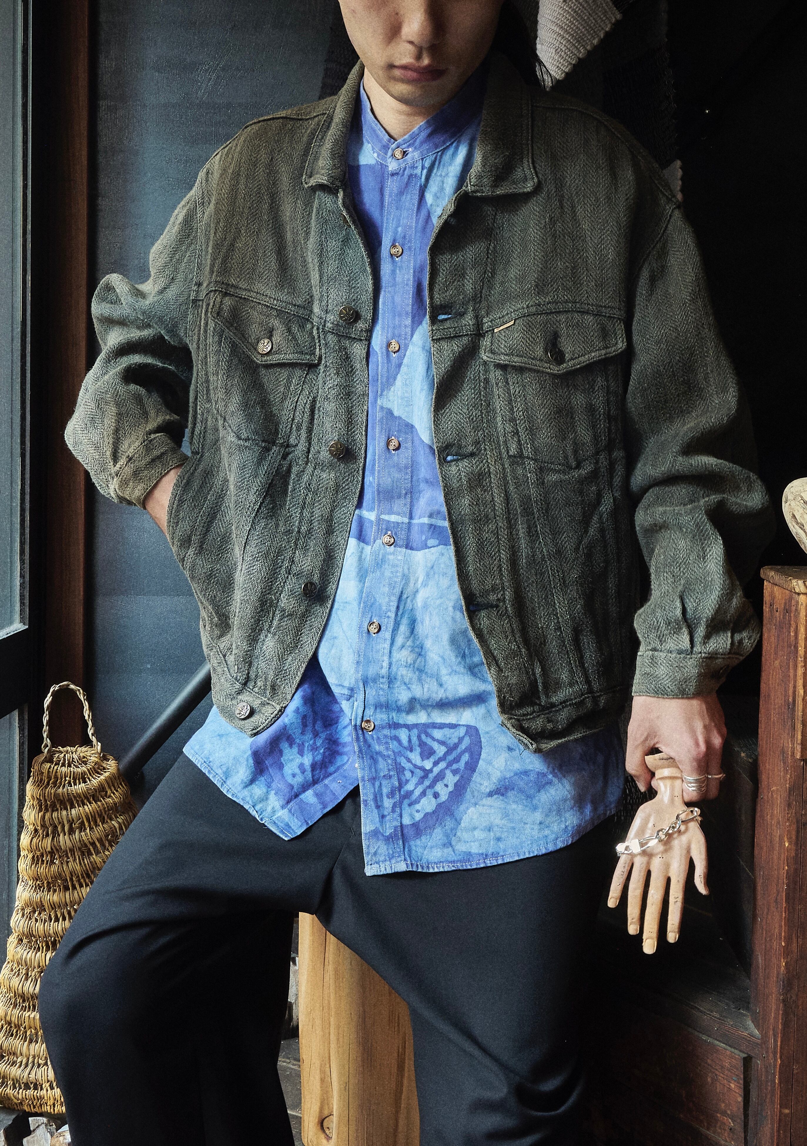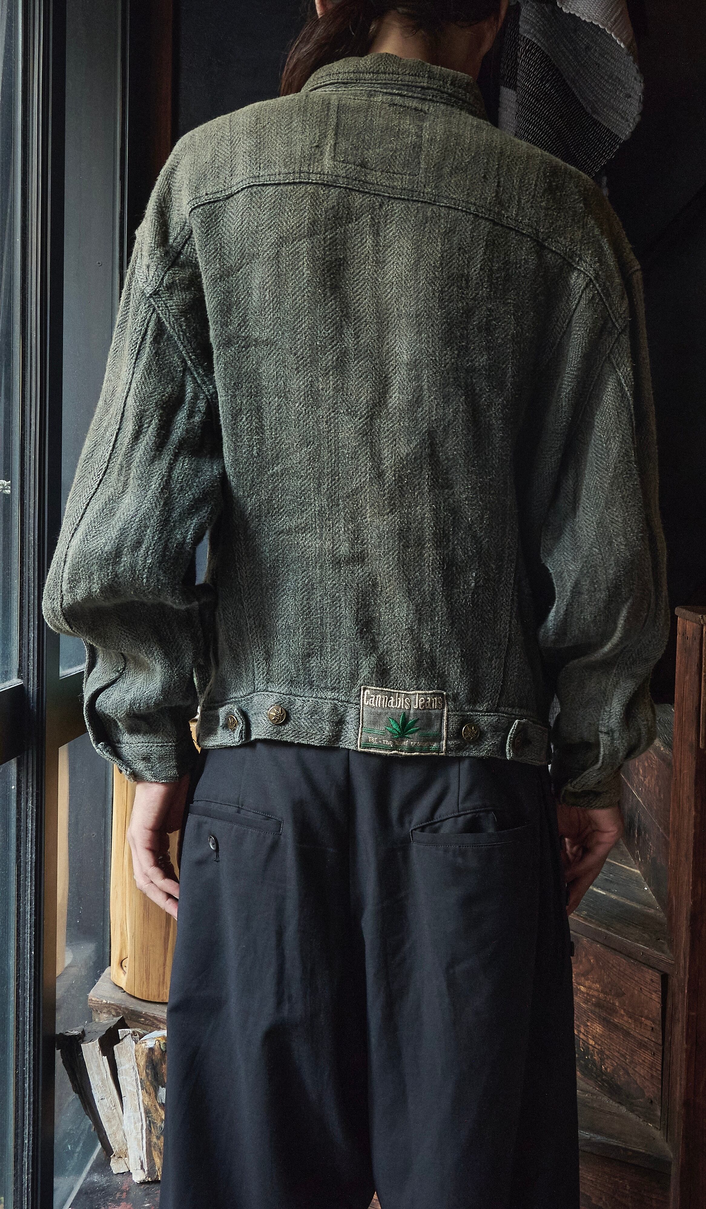 80s euro Faded Black Hemp fabric Trucker Jacket