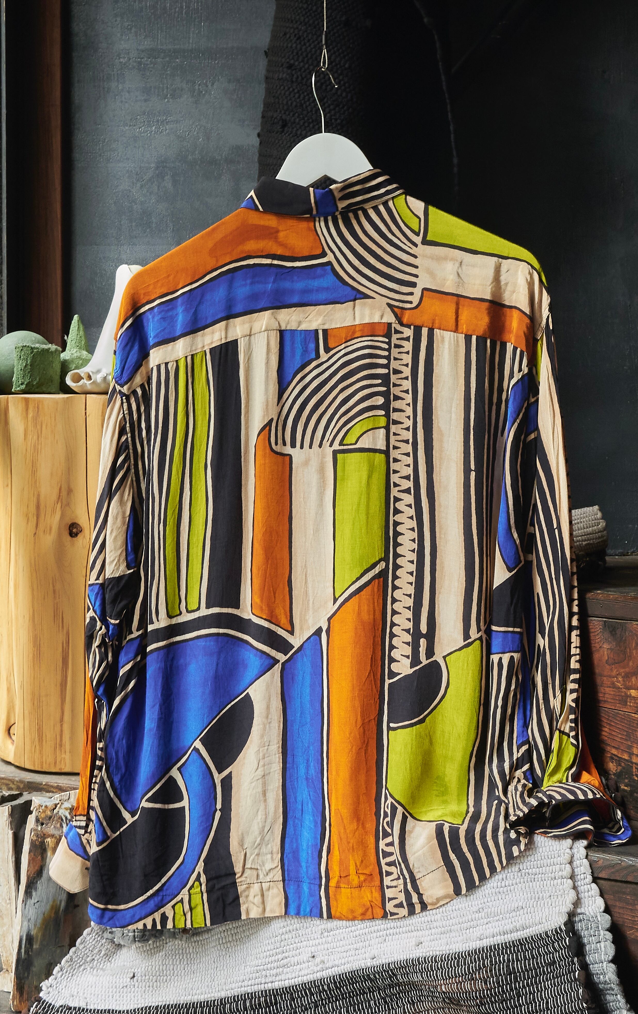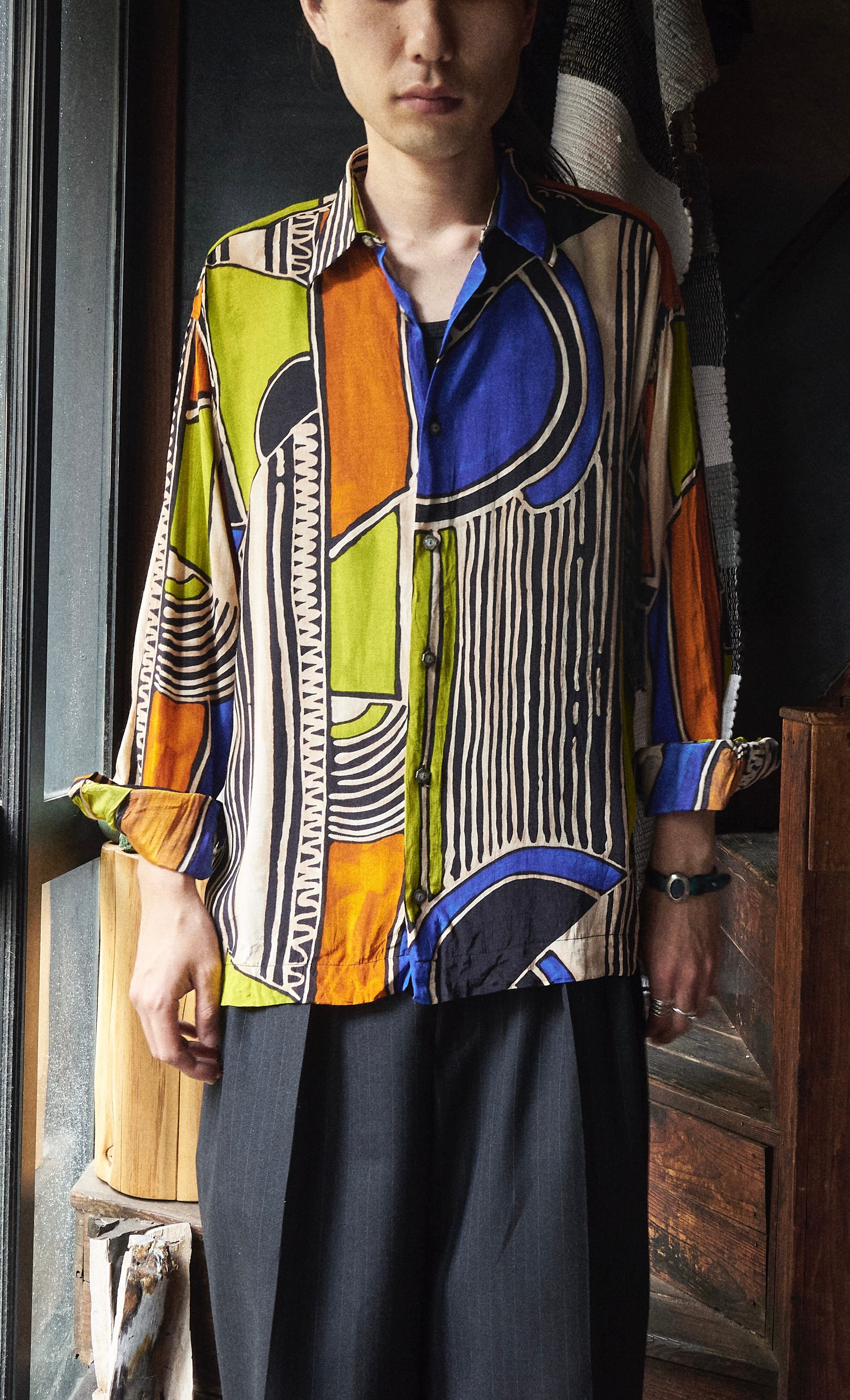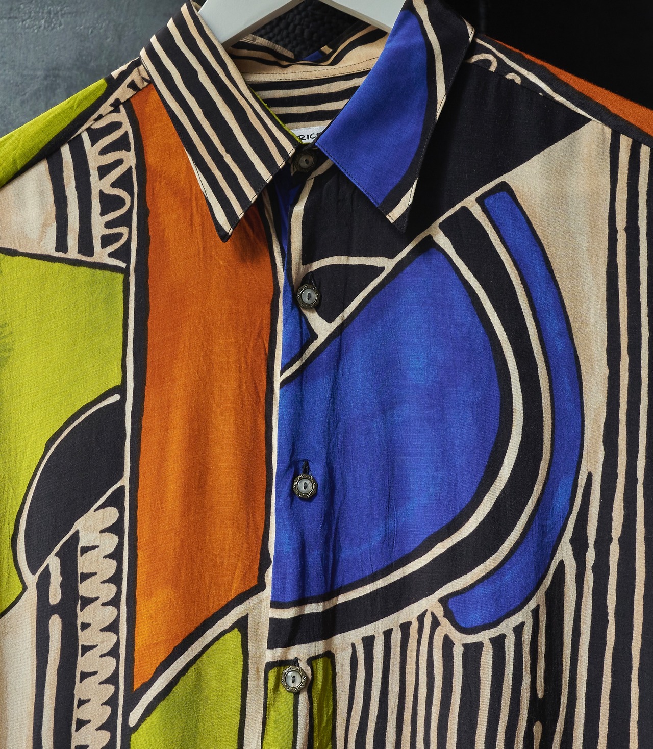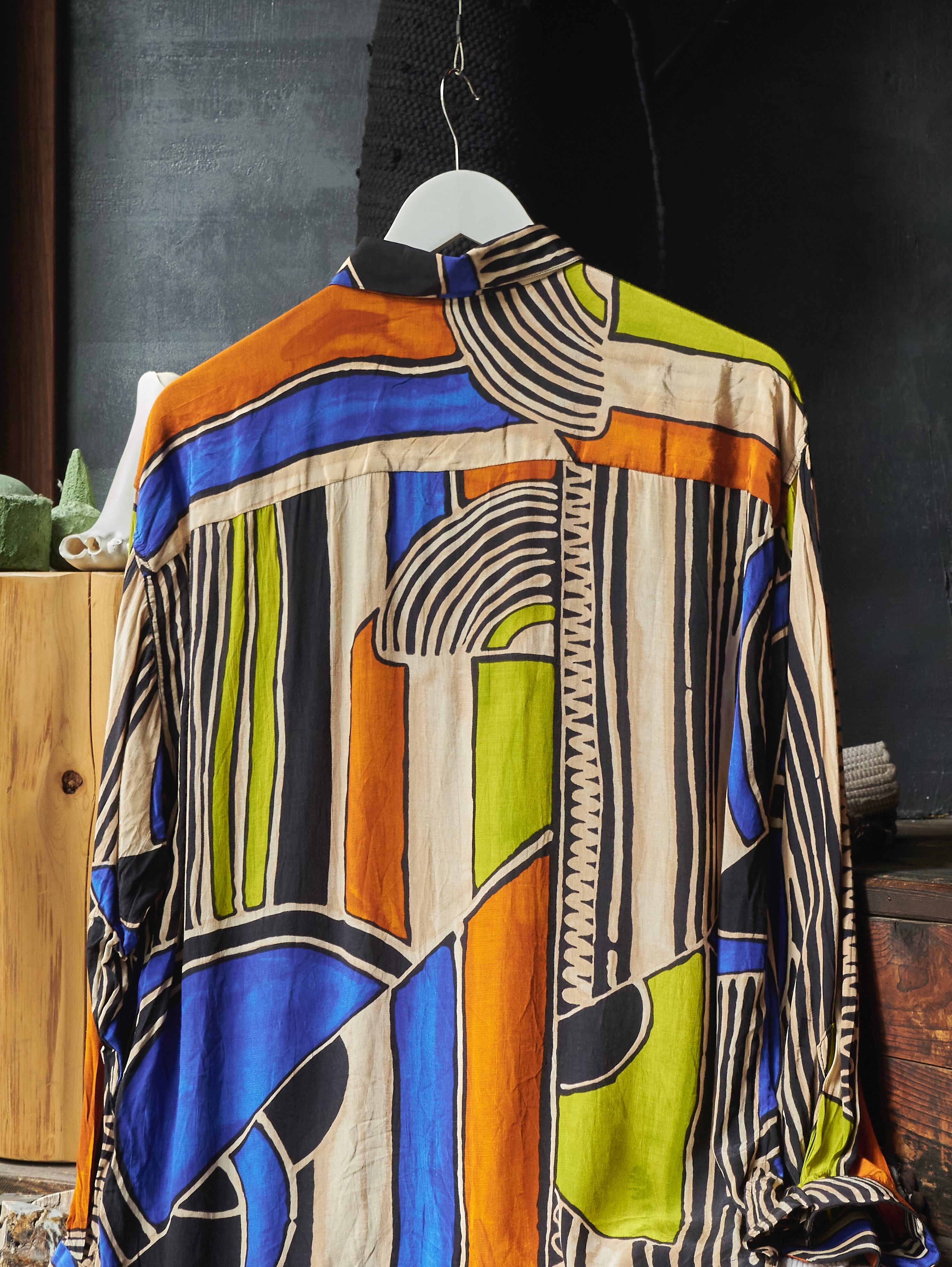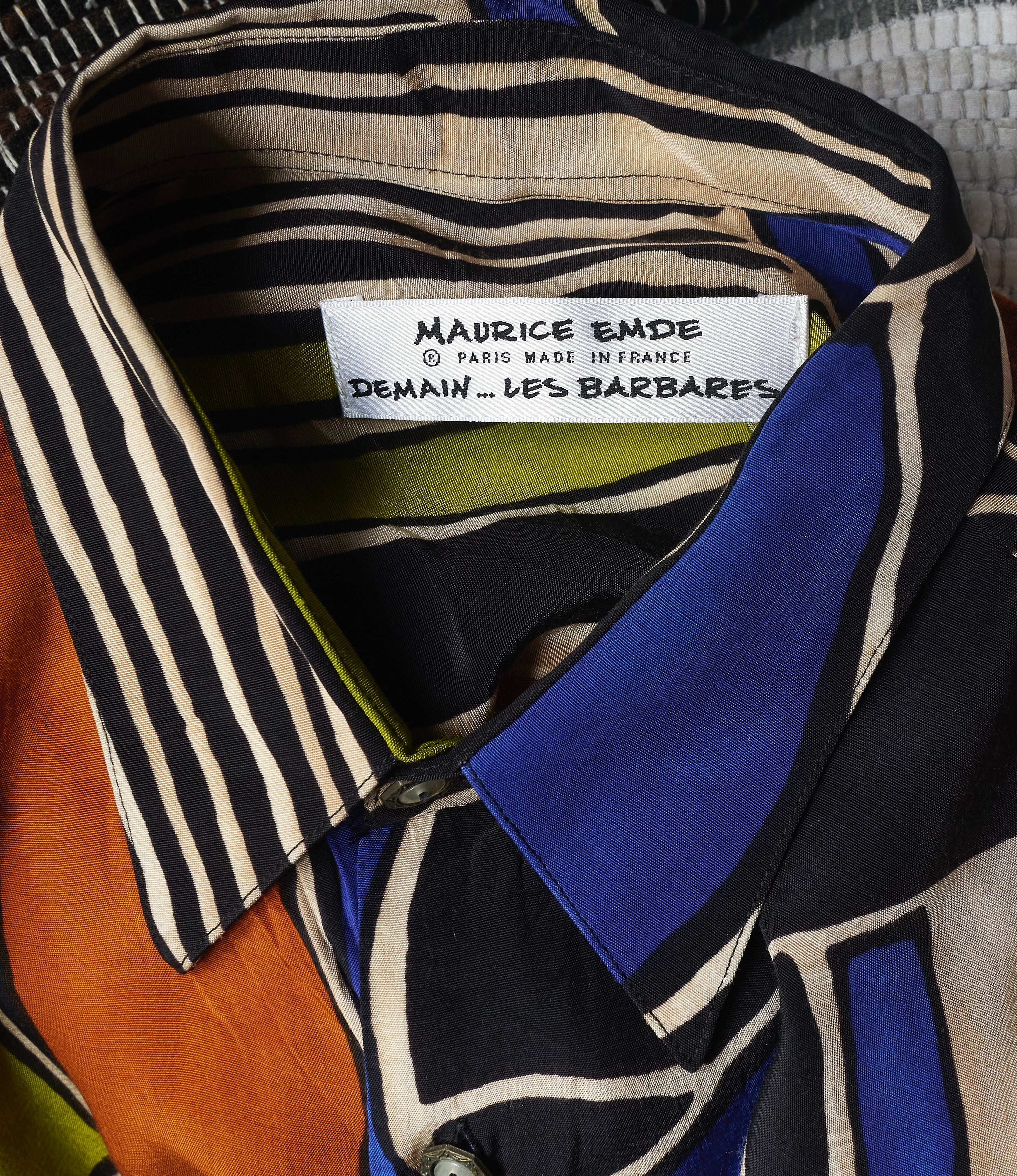 DEMAIN LES BARBARES PARIS Art pattern printed rayon shirt