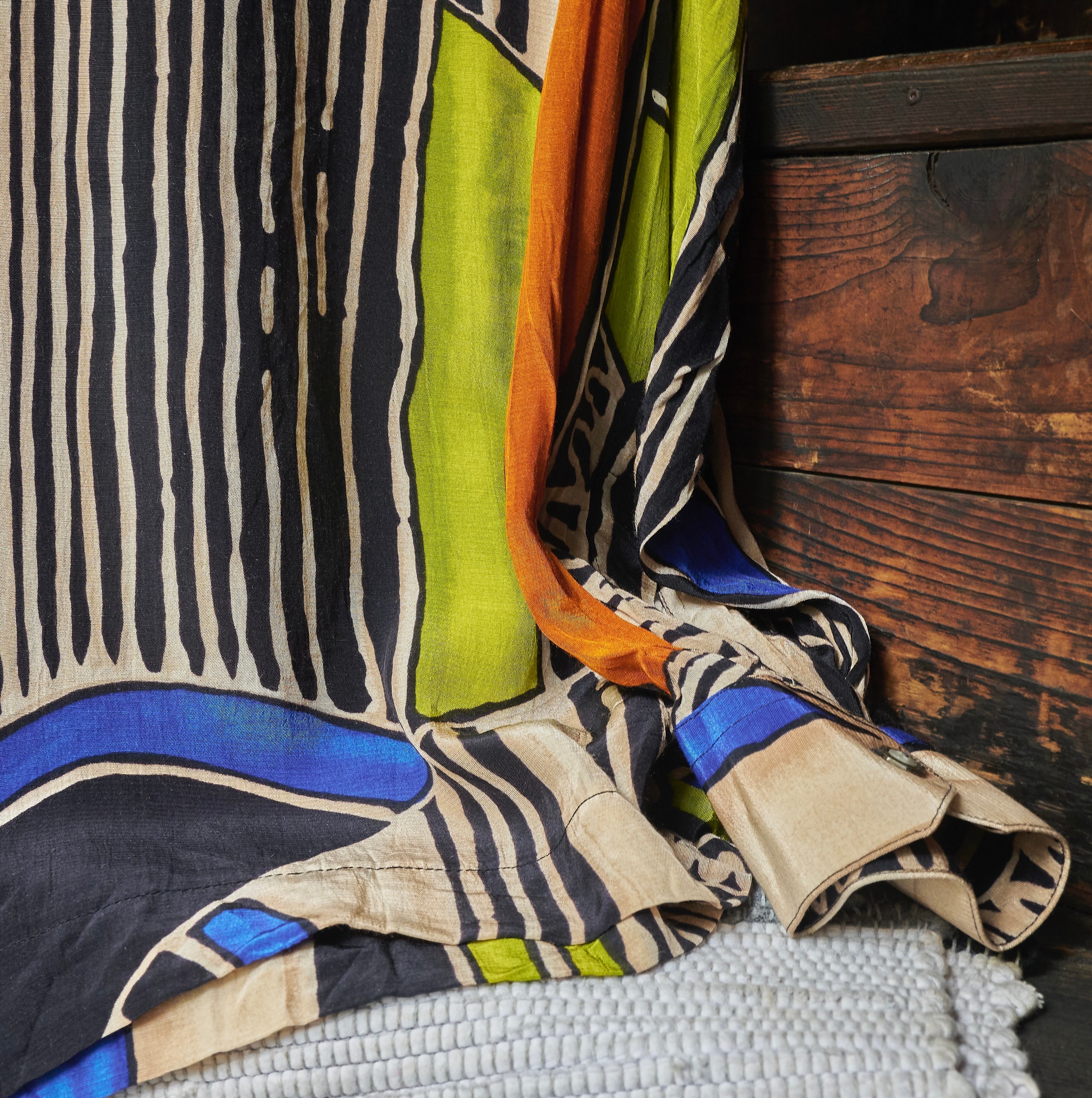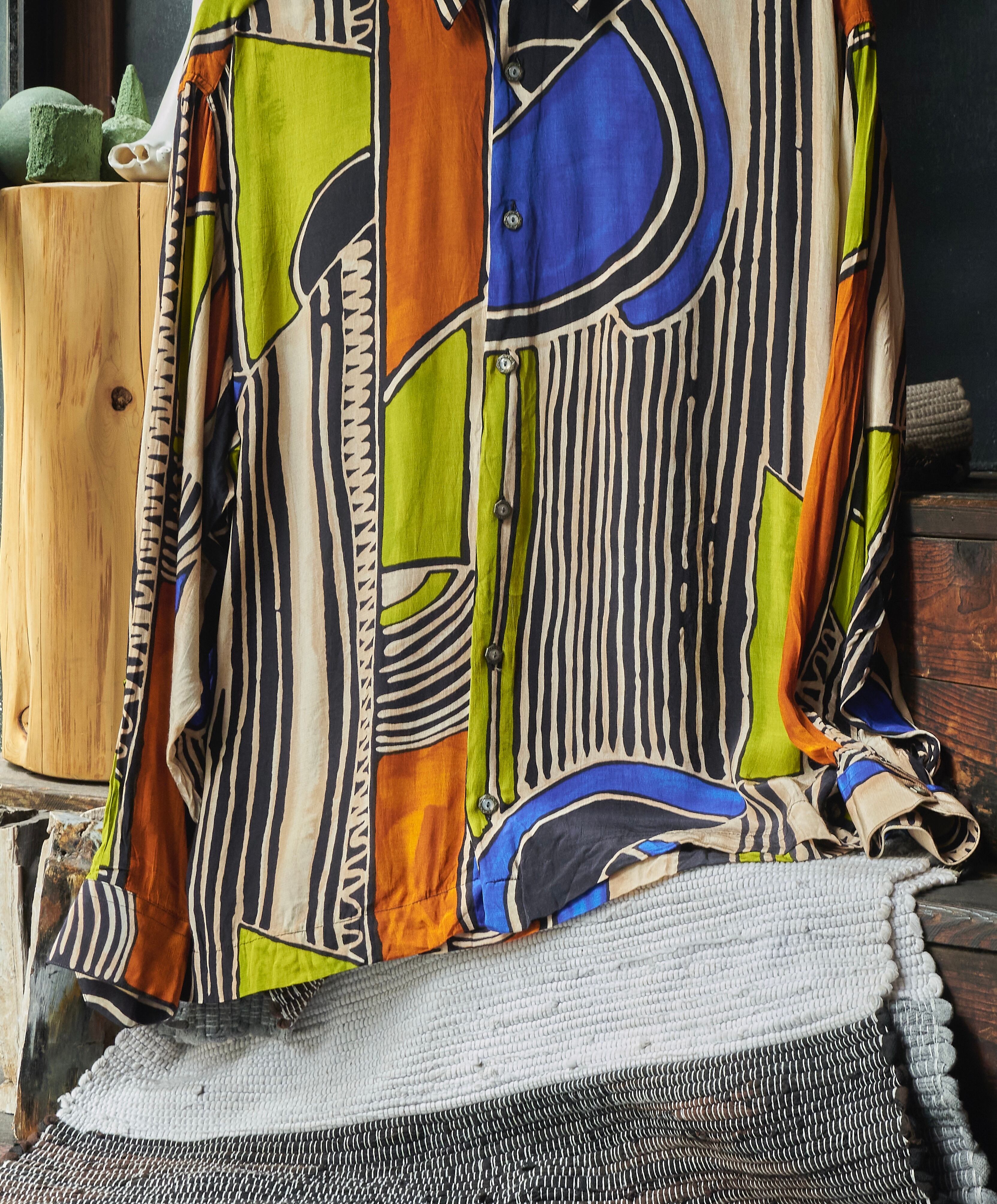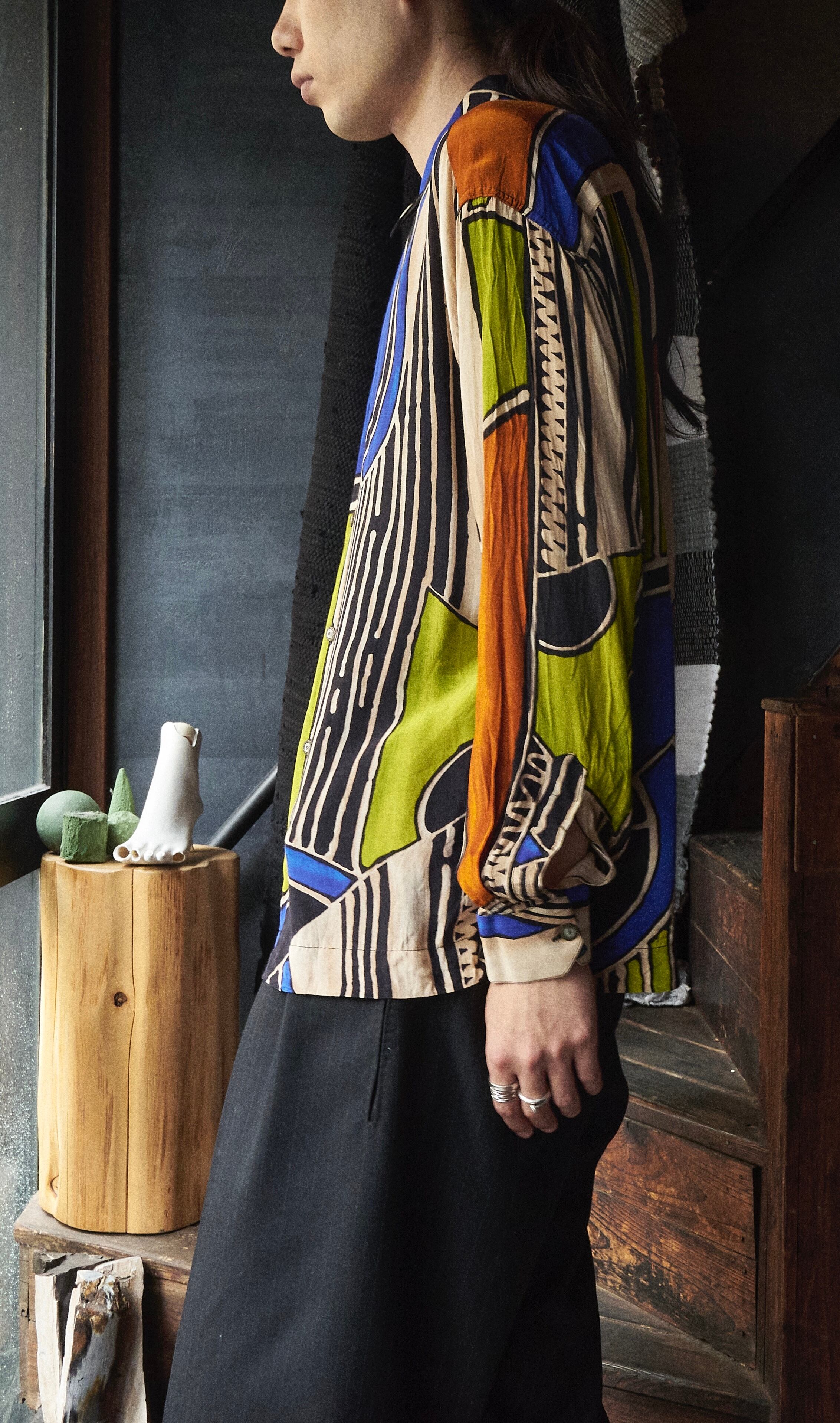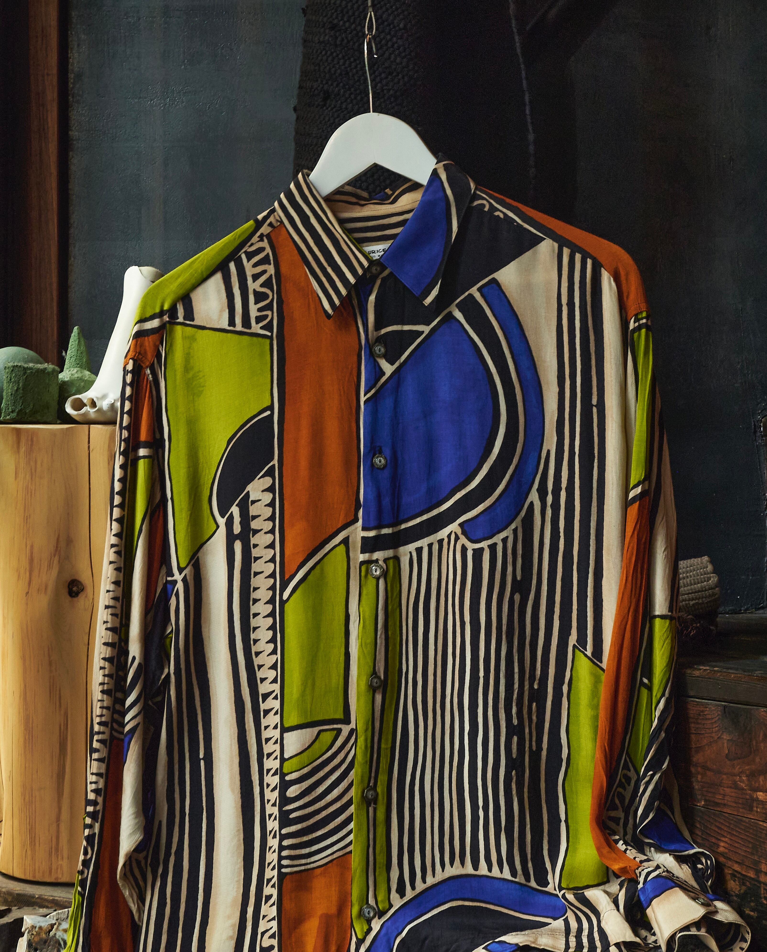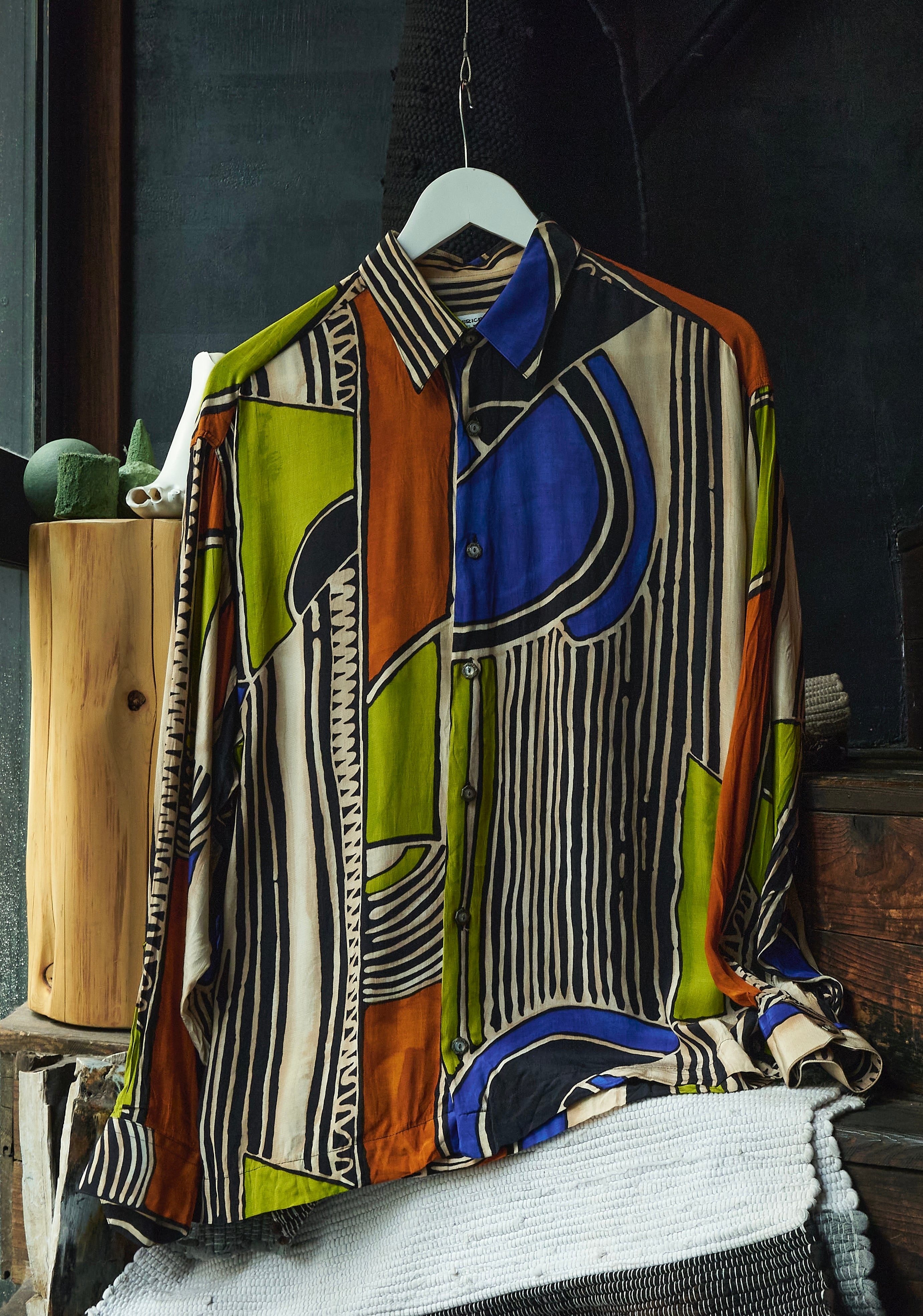 DEMAIN LES BARBARES PARIS Art pattern printed rayon shirt
