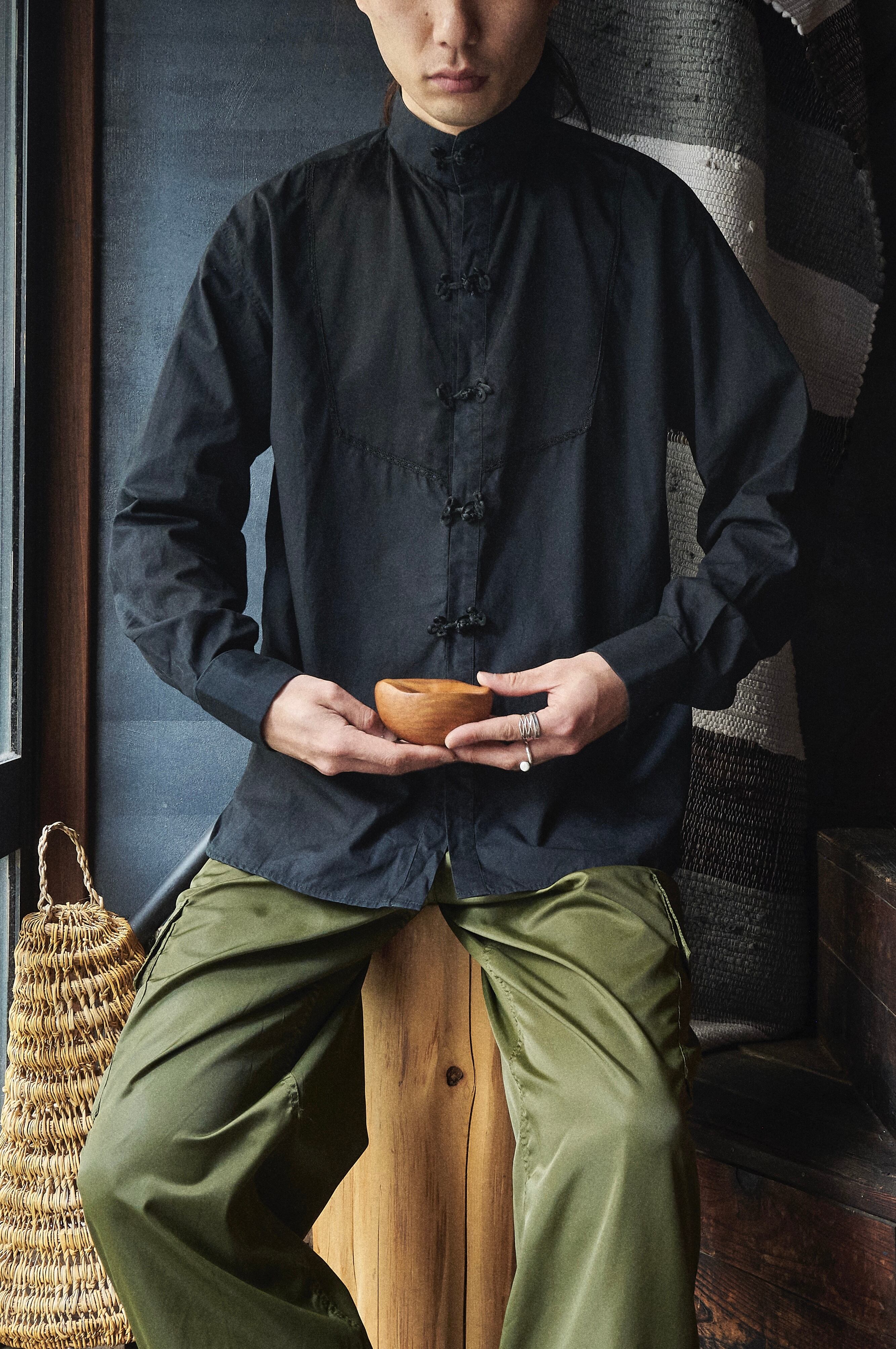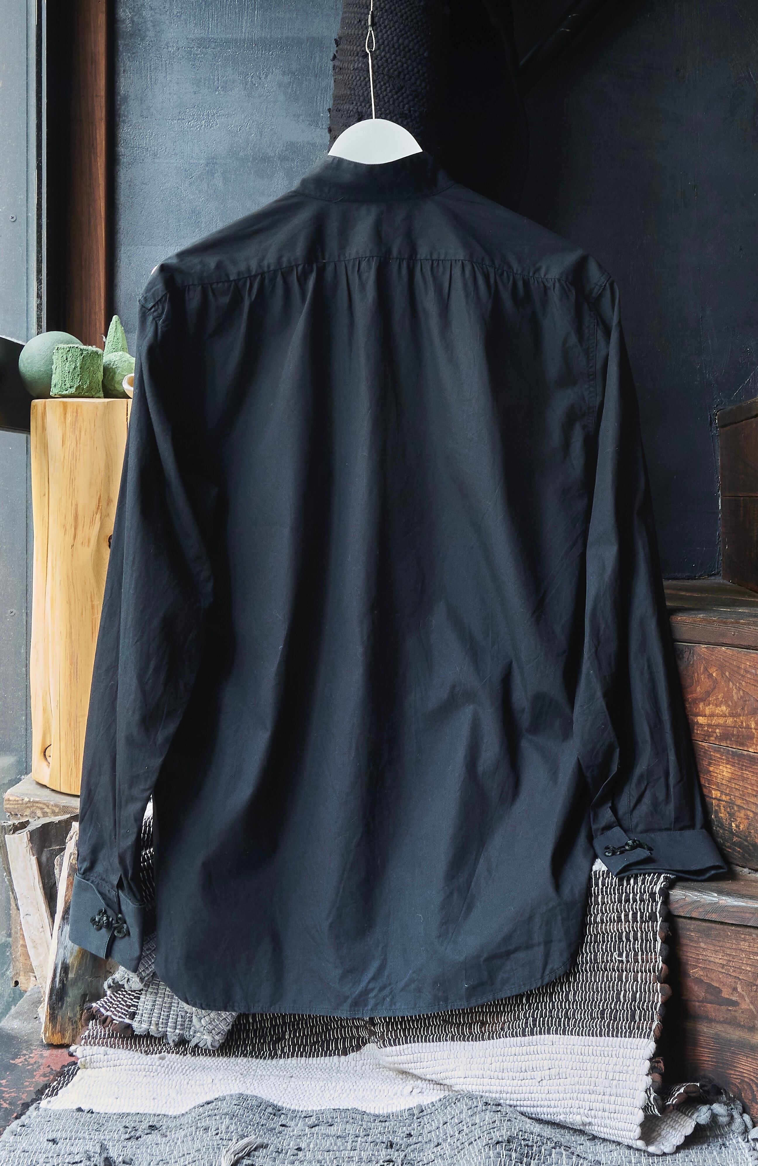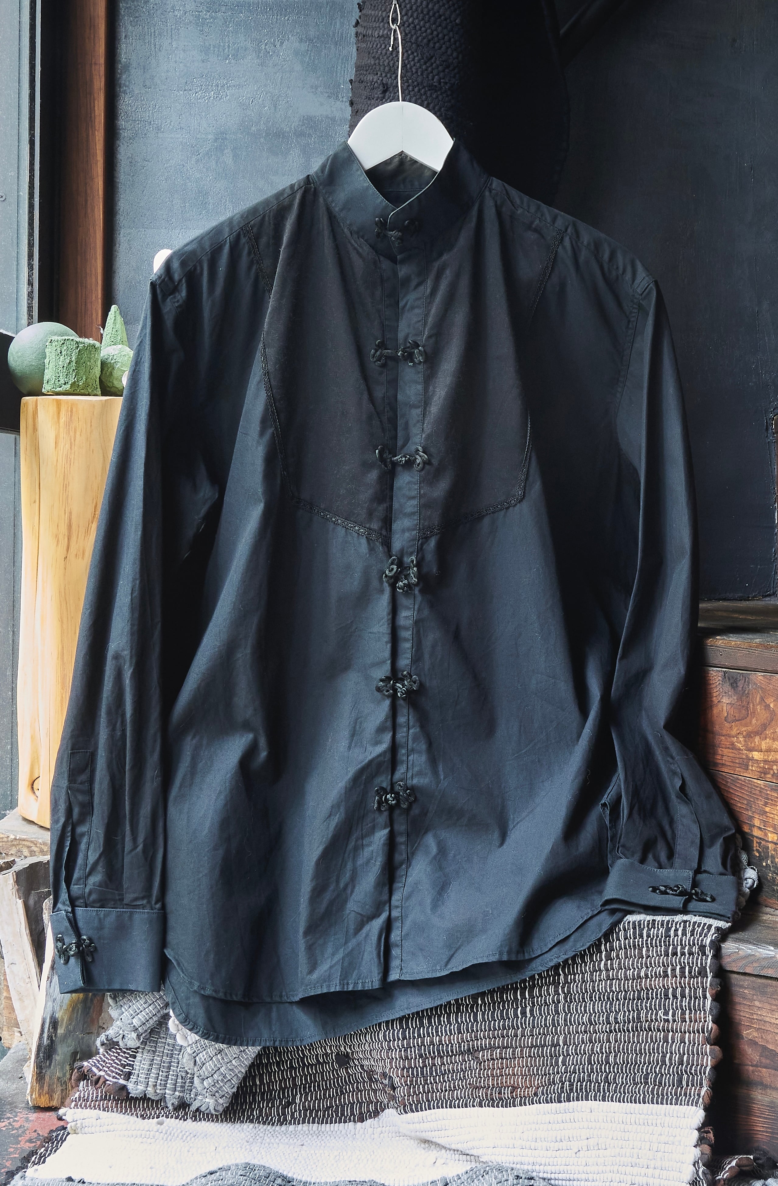 2000s ITALY Cotton x Cupra Fabric Stand Collar Chinese Button Dress Shirt