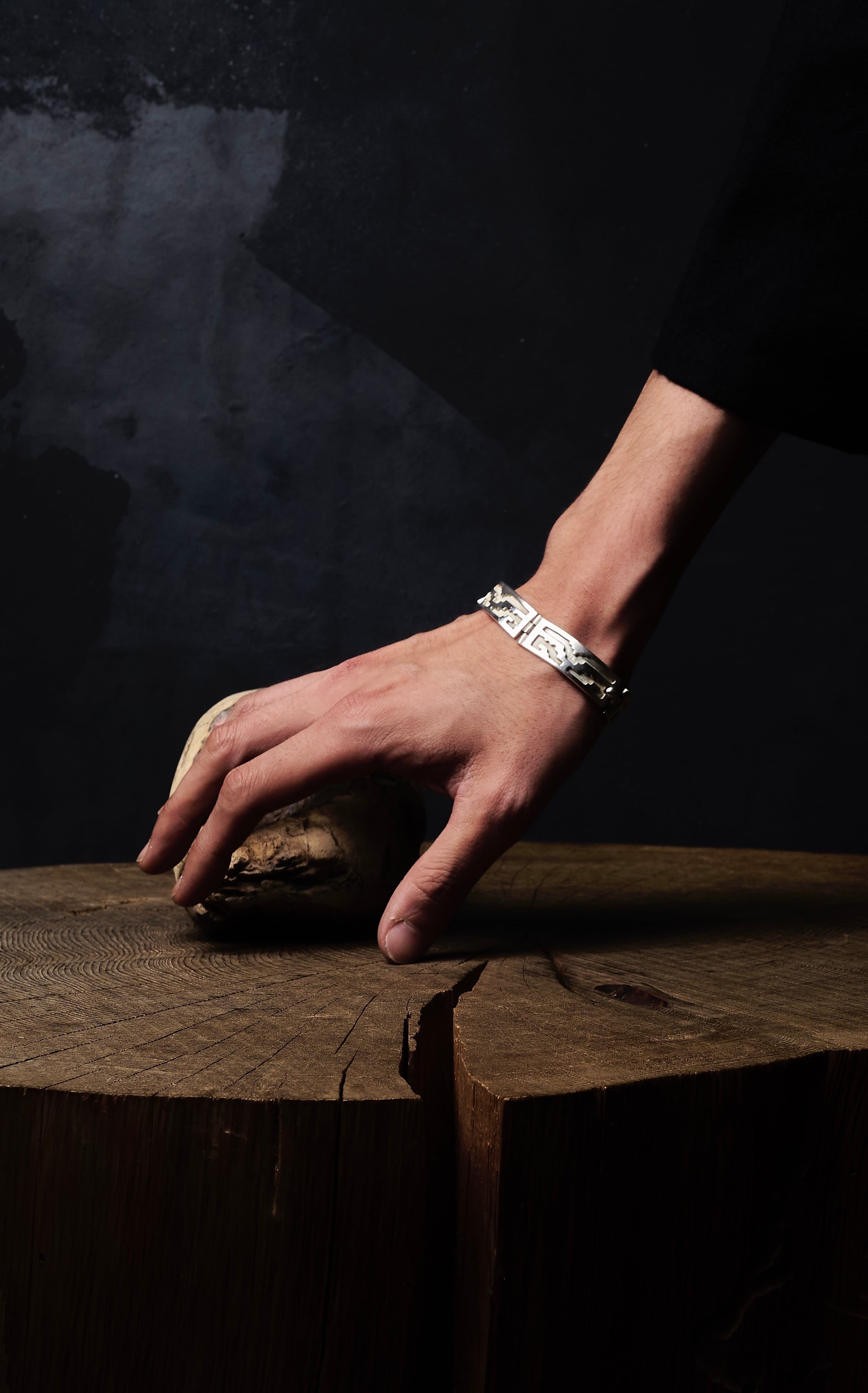 Vintage Mexico Thick sculptur 925 Silver Bangle