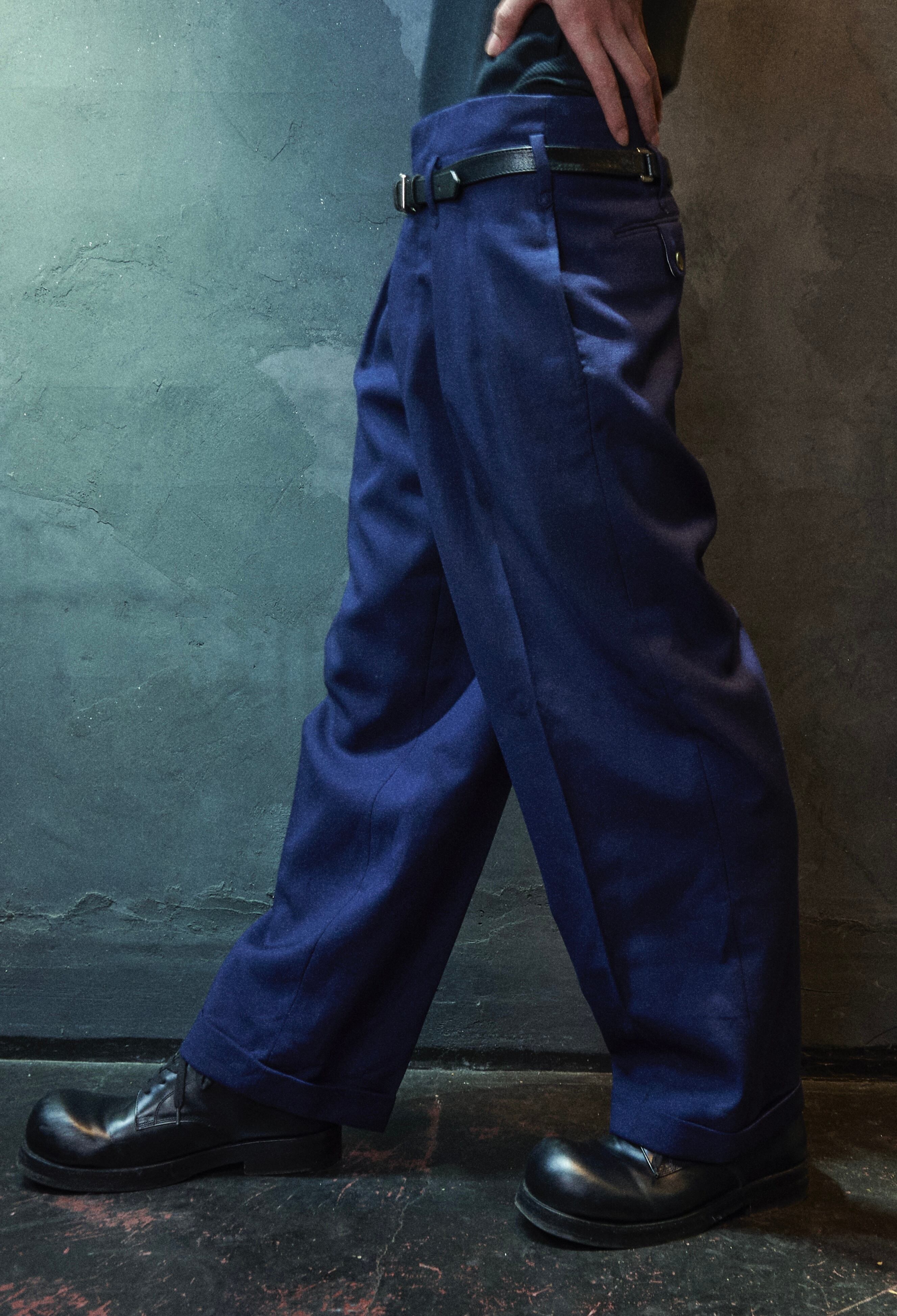 50s-60s Japan Vintage handmade Woven Wool Navy Blue Slacks