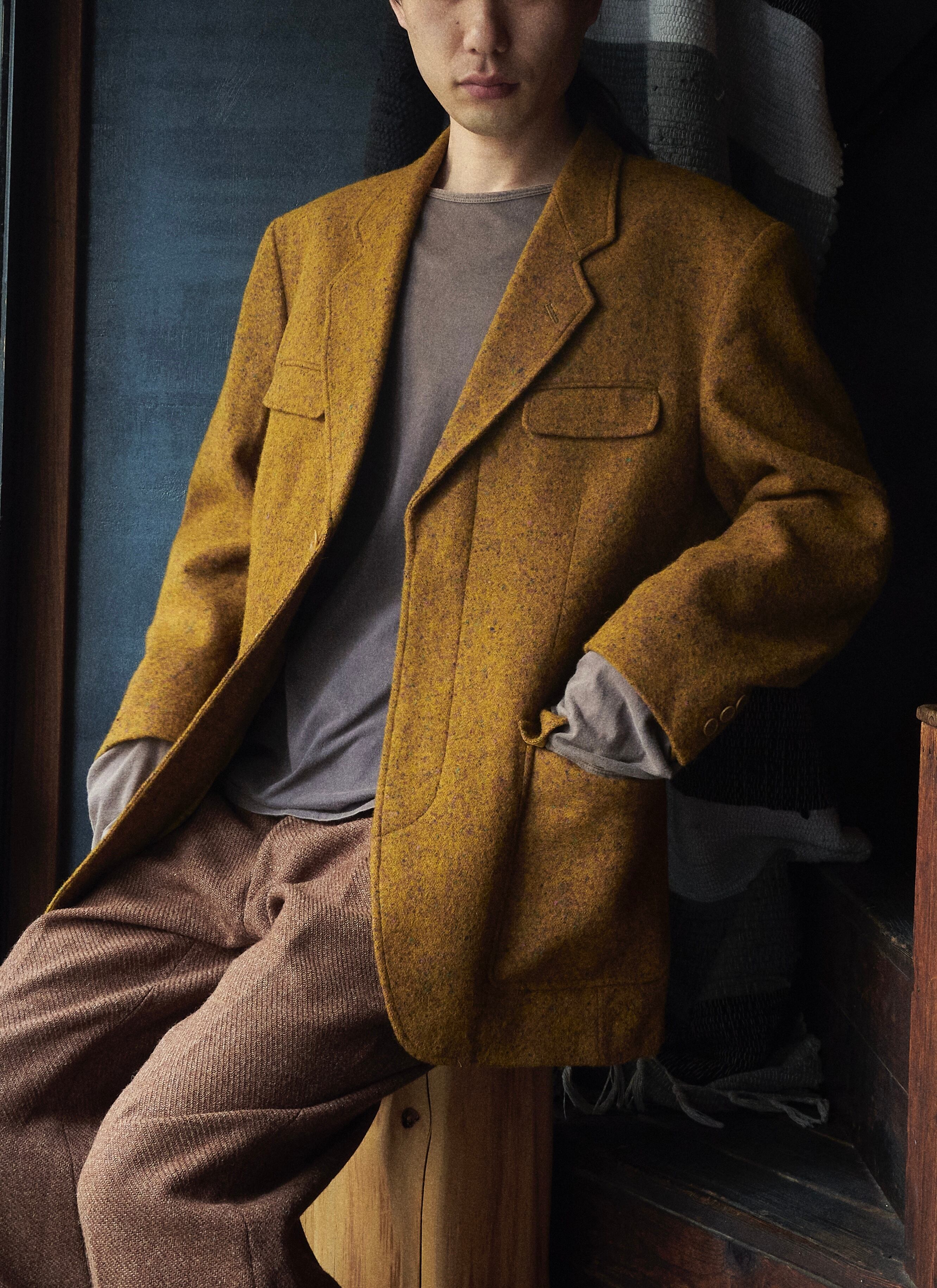 KENZO paris Mustard base colorful napped wool tailored jacket