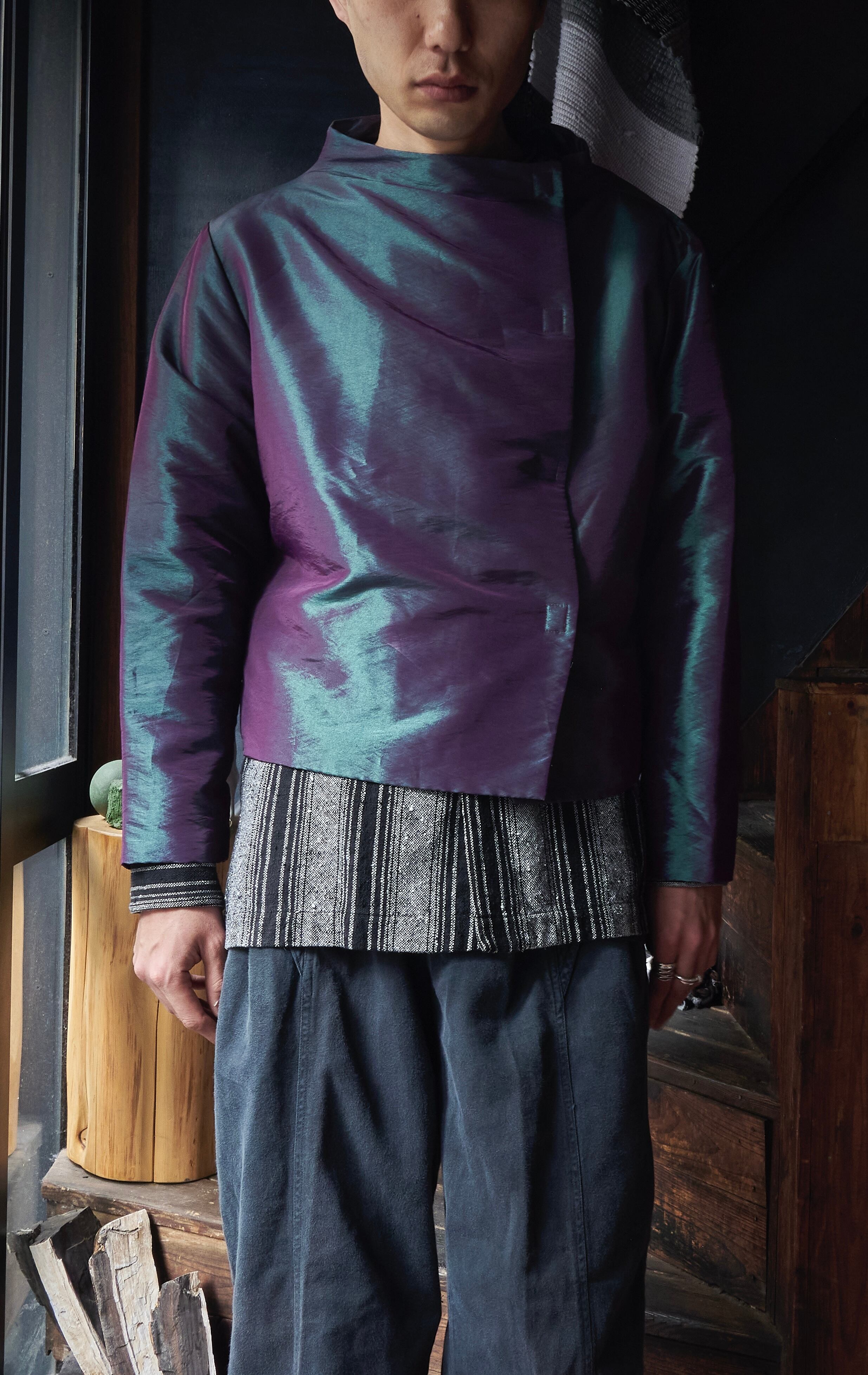 2000s euro Polyester x Nylon Fabric Bottleneck Pattern Wide Silhouette Light ounce puffer Jewel Beetle Jacket