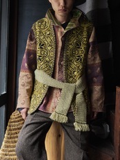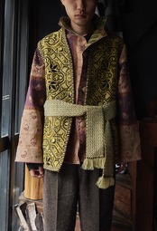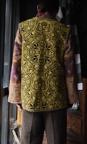 vintage euro Jute-mix wool Gobelin woven jacquard vest