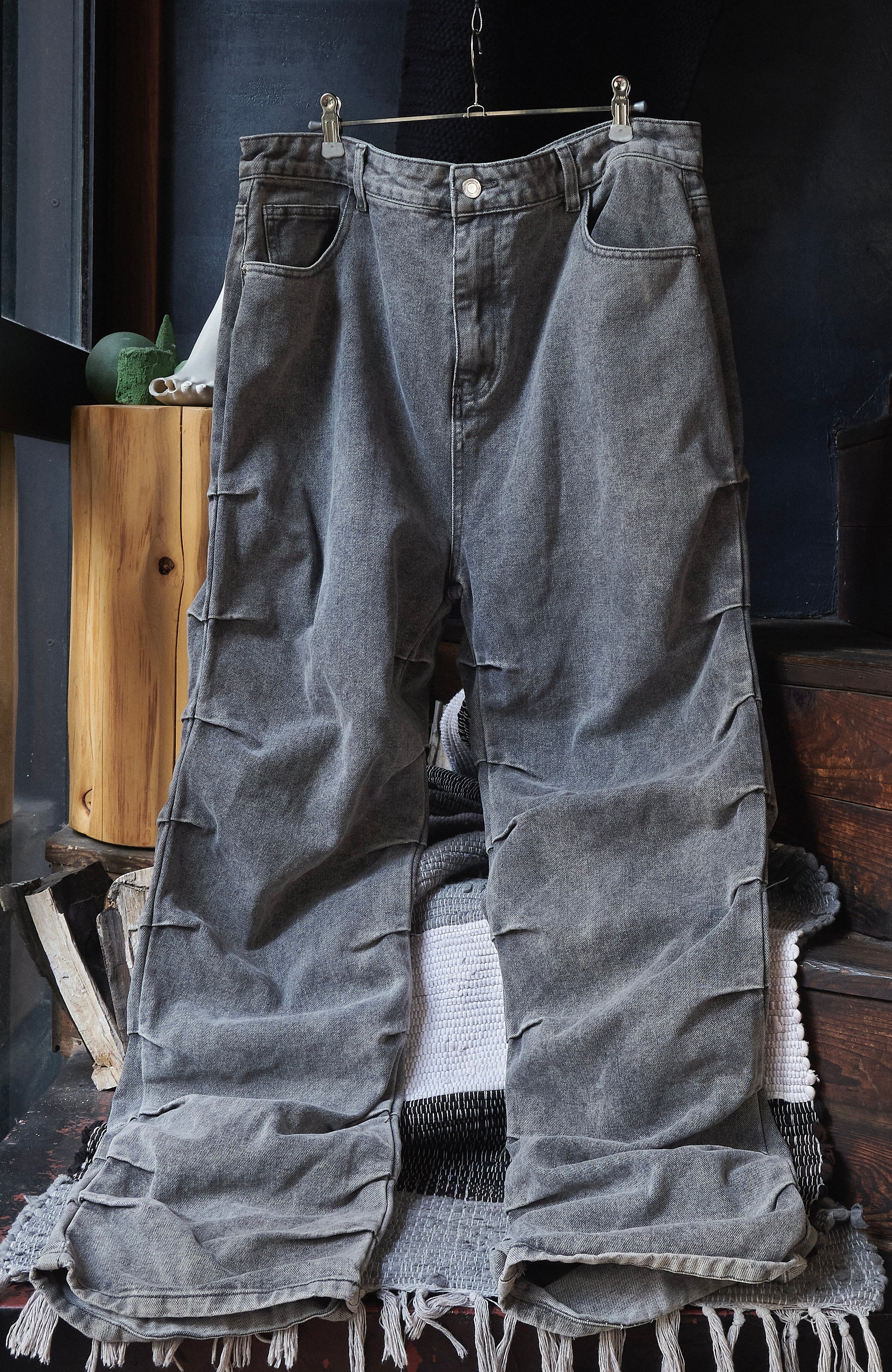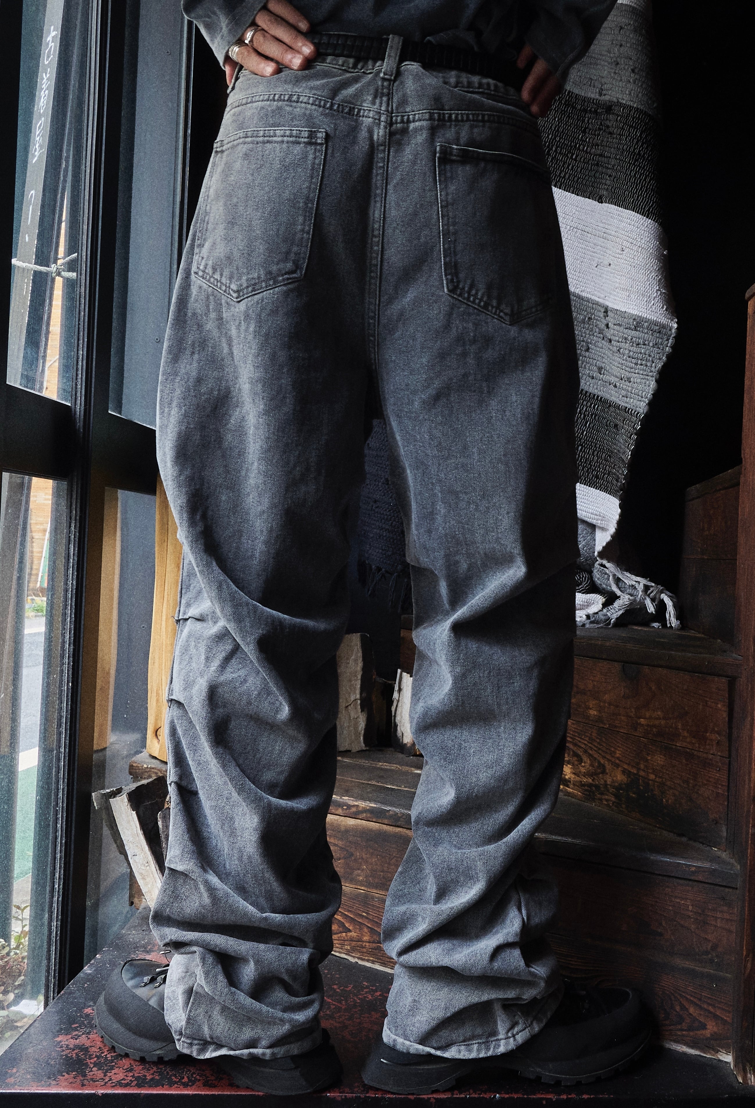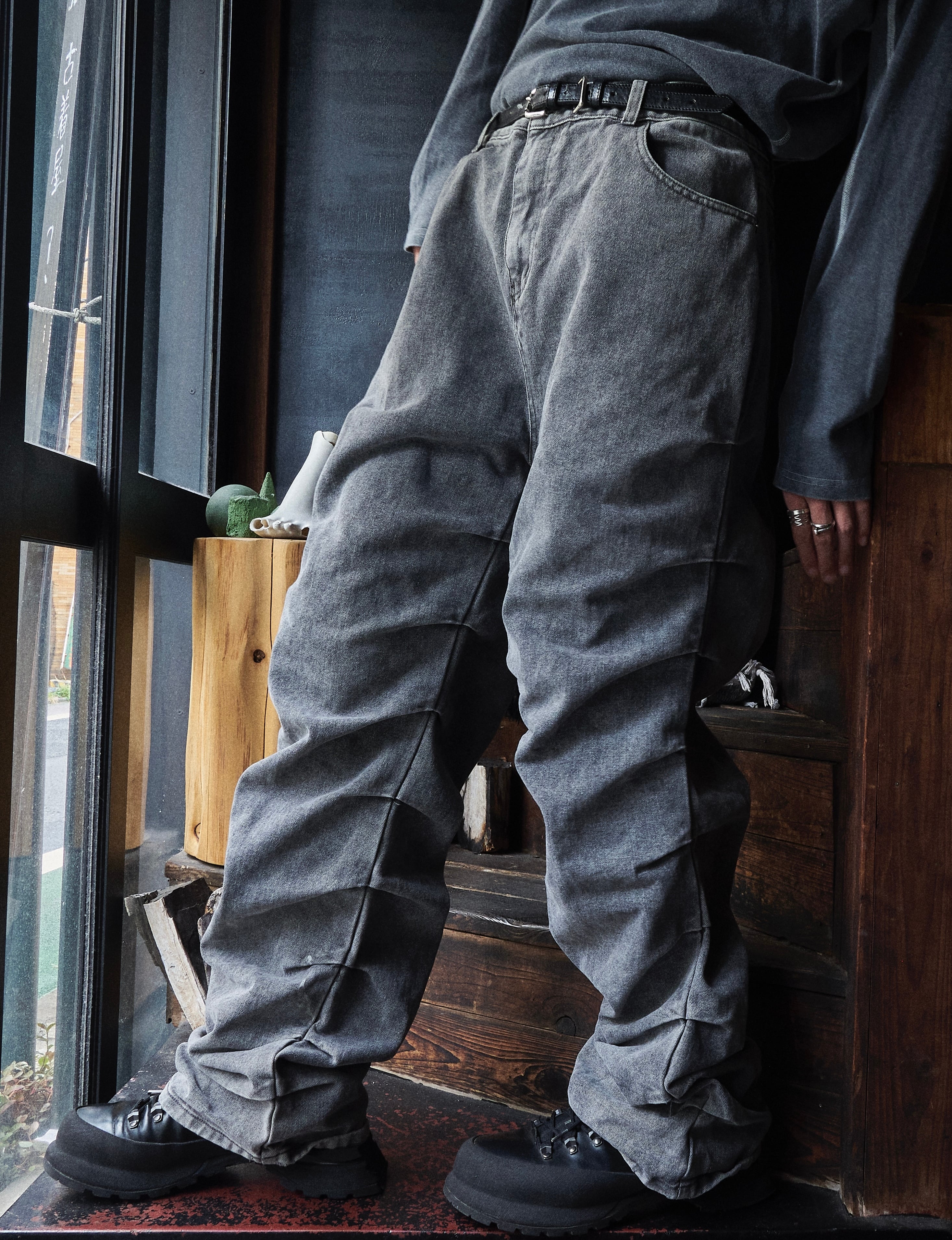 US 2010s〜 9pleated design wide black denim