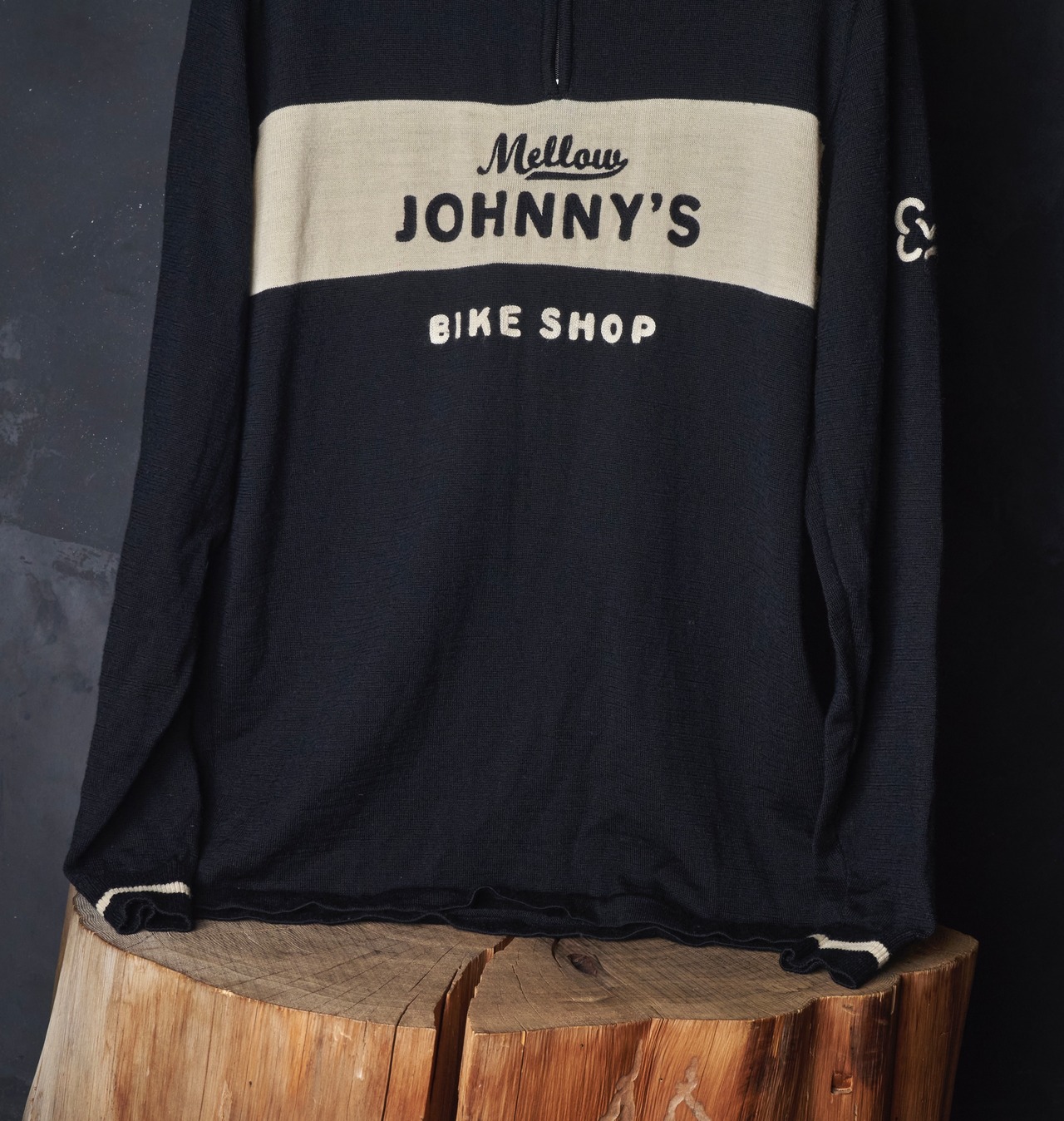 US vintage Johnny's Bike Shop black and white cycling knit