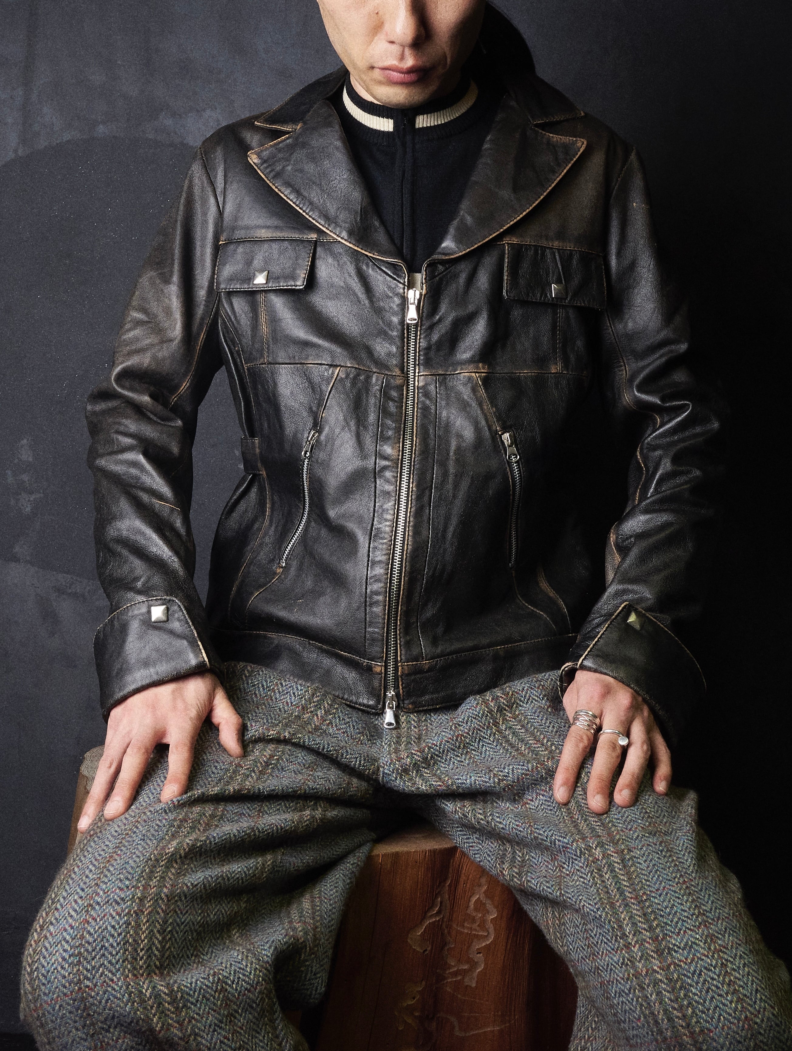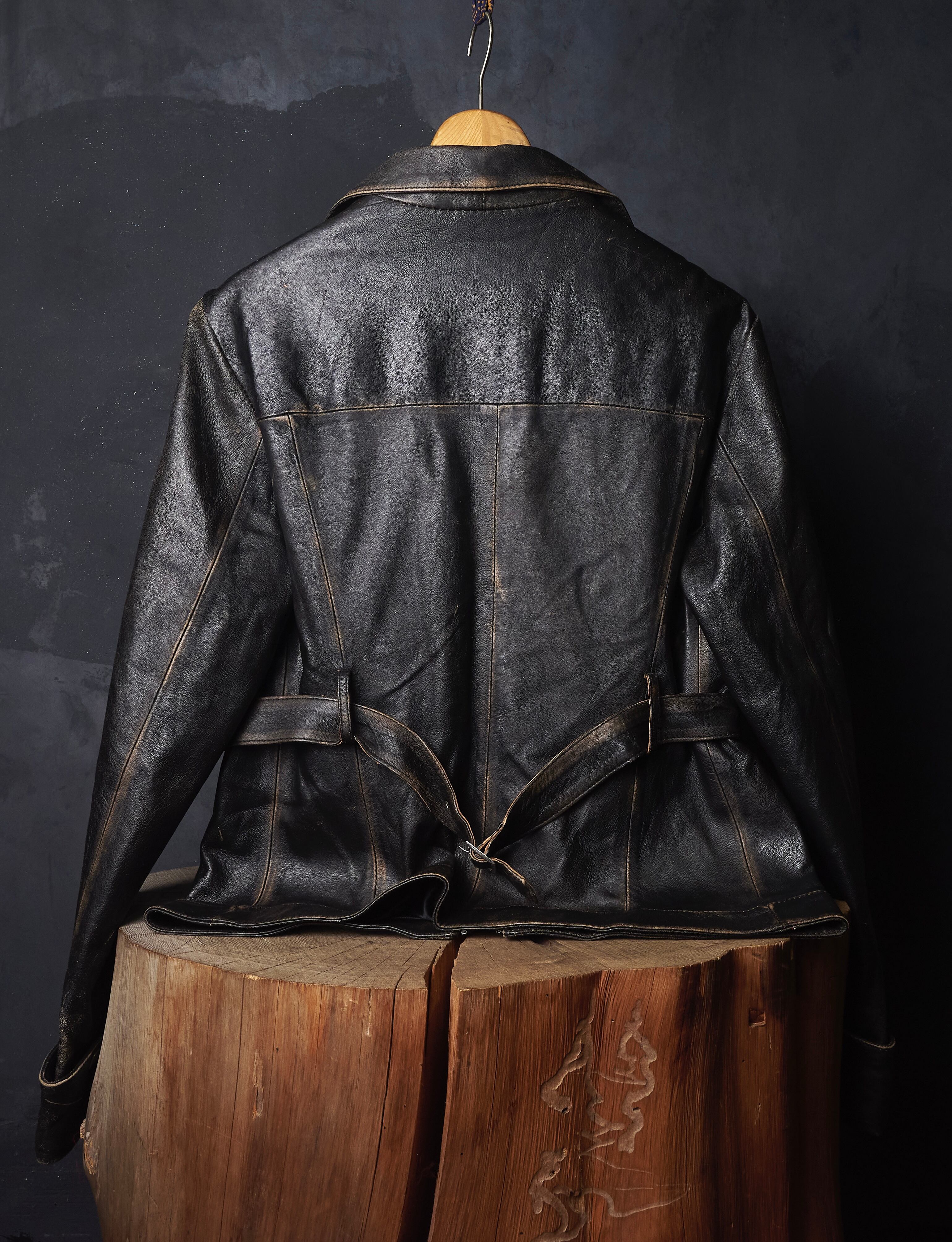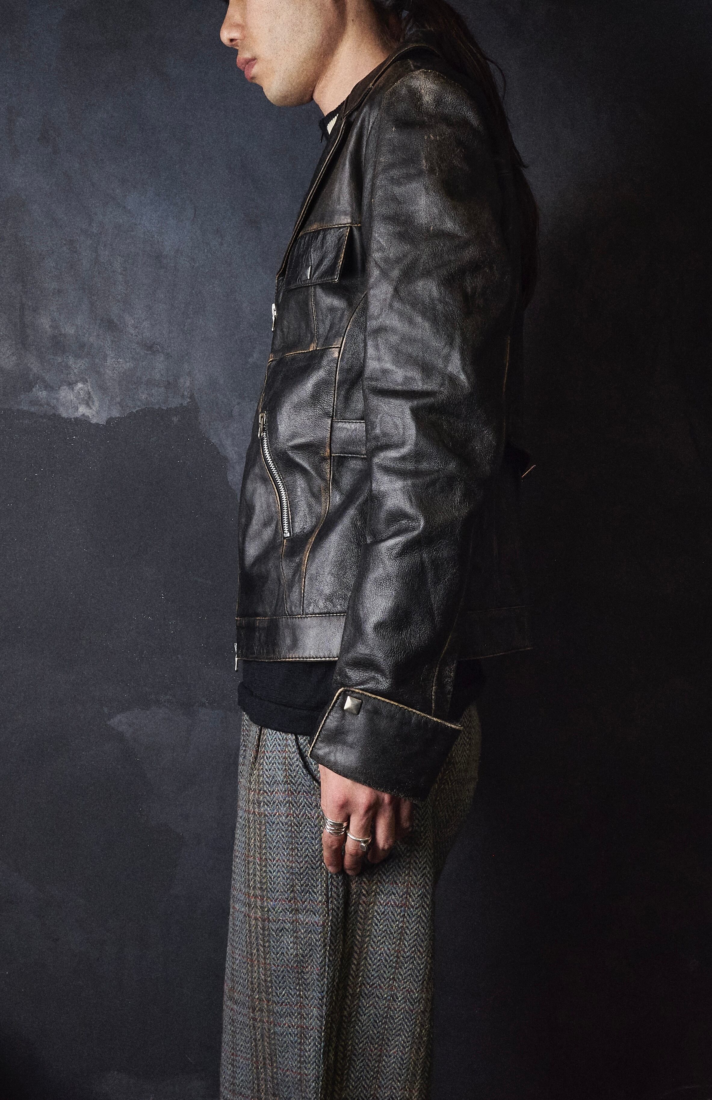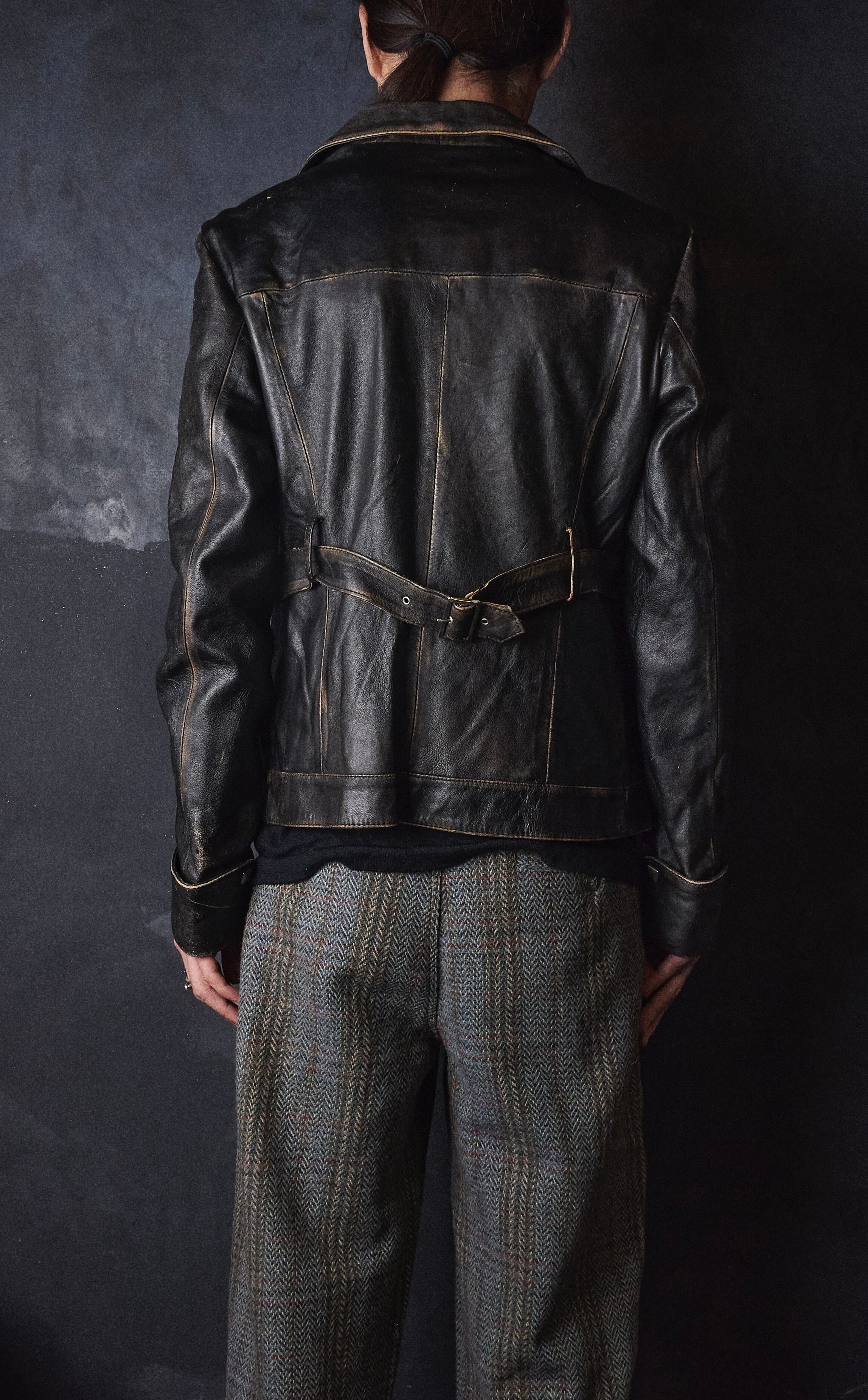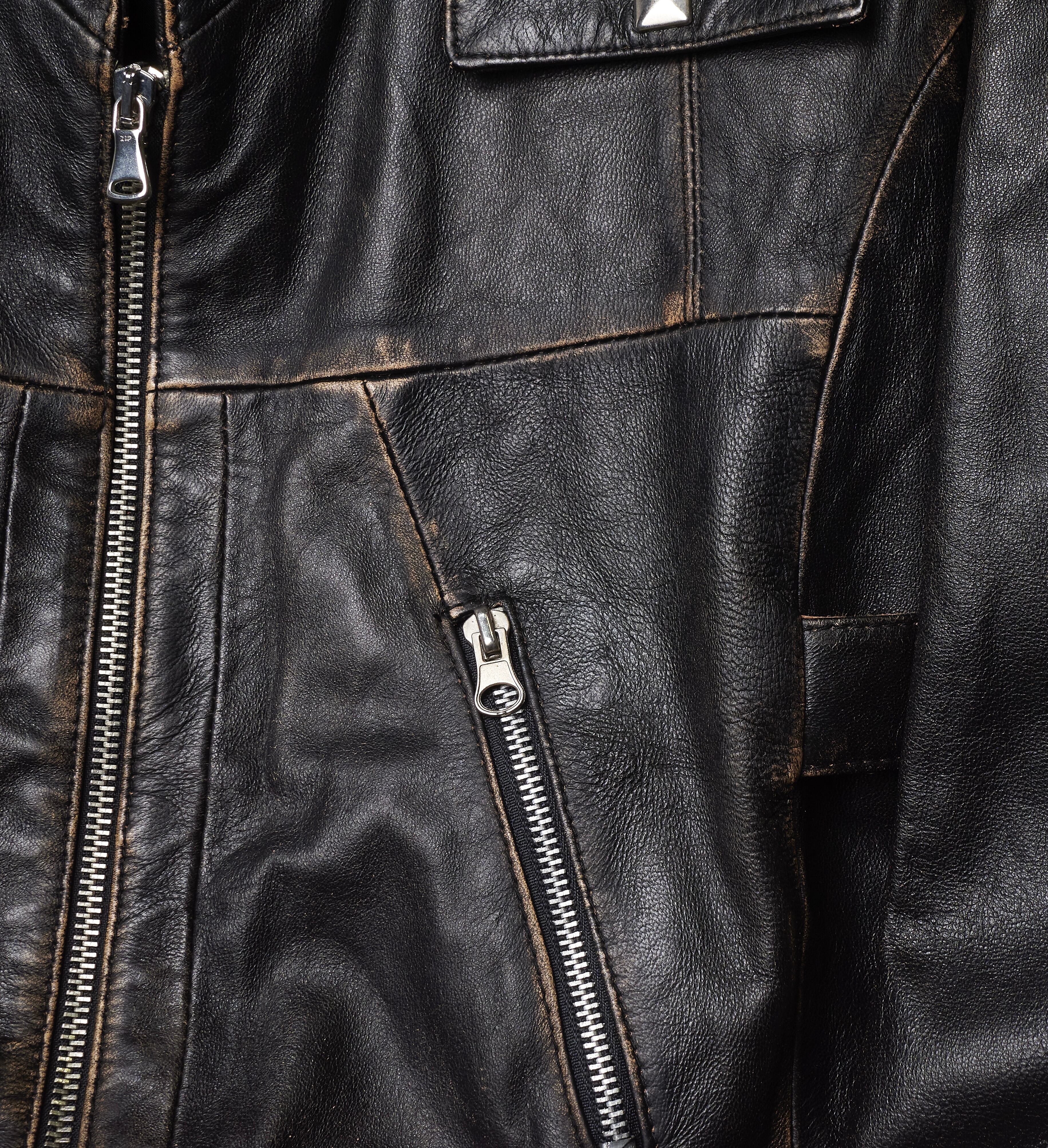 early 2000s euro faded double zipper leather jacket